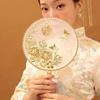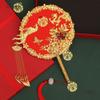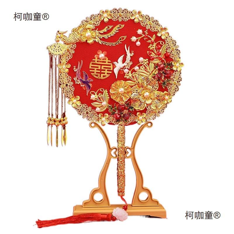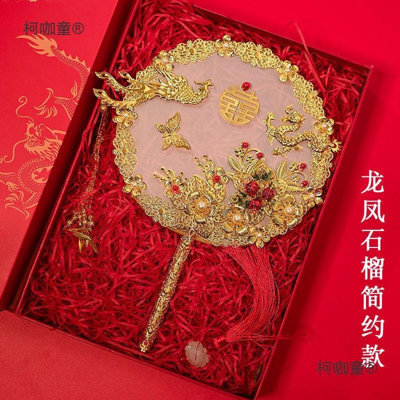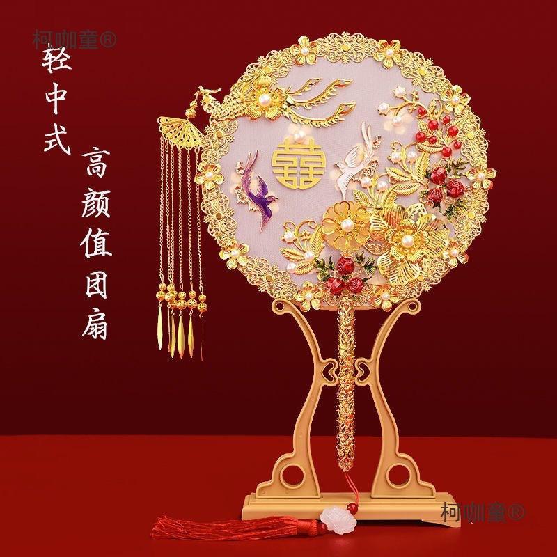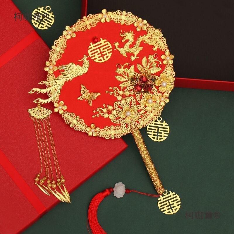 Dropshipping Abanico Nupcial Xiuhe Abanico de Boda Chino de Doble Cara Abanico Antiguo Mango Largo Abanico Terminado Nudo Metabo