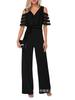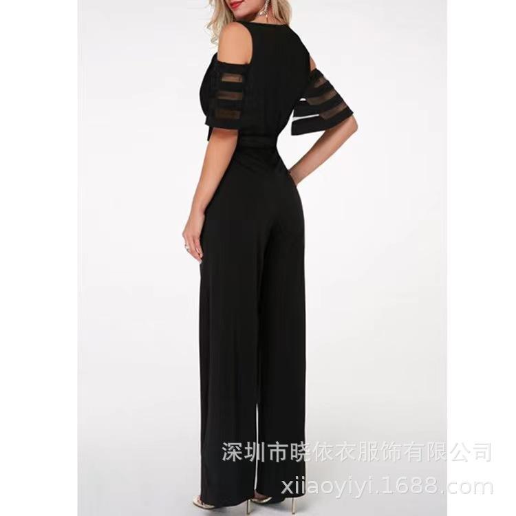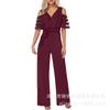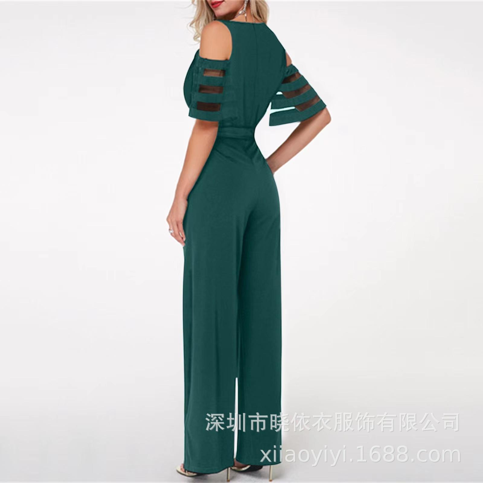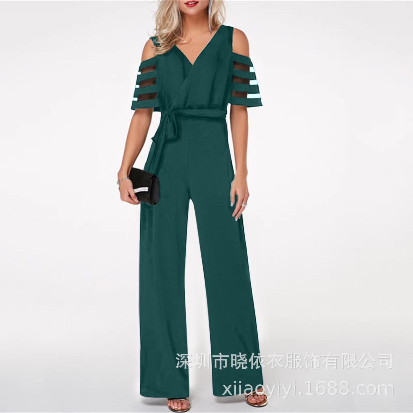 Amazon Transfronterizo Europeo y Americano Cuello en V Hombro Color Sólido Cintura Alta Pantalones de Fiesta Cinturón Pantalones de Pierna Ancha para Mujer