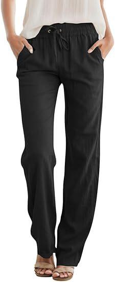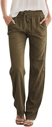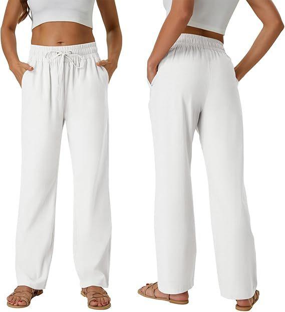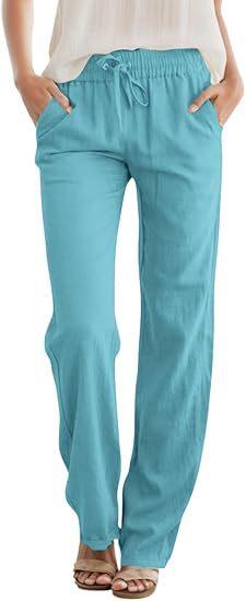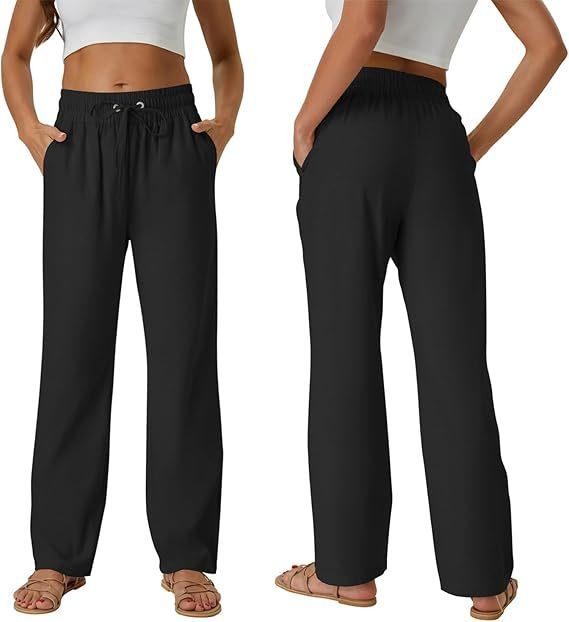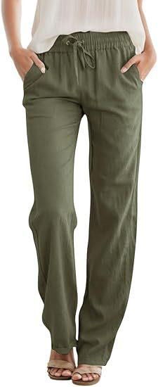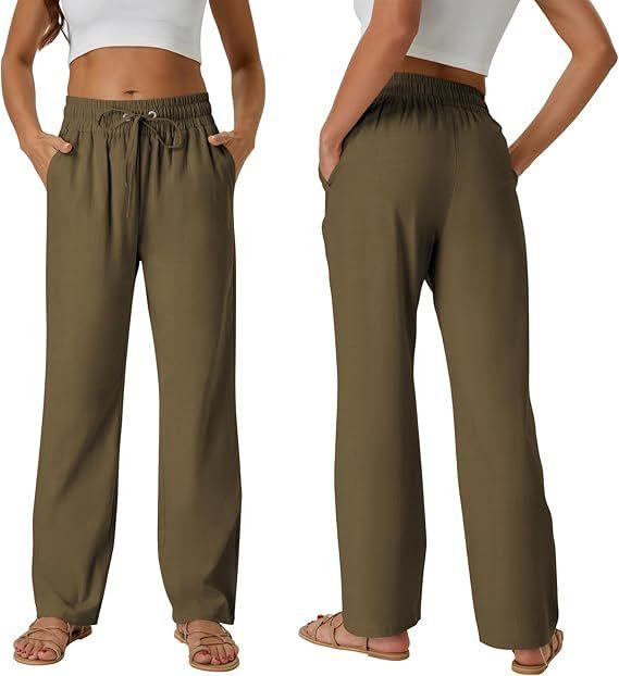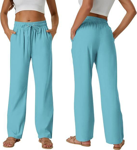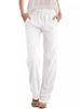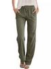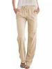 Pantalones rectos de pierna ancha con cordones de cintura alta para mujer de verano 2023 para mujer europea y americana, color sólido, algodón lino, pantalones casuales sueltos para mujer