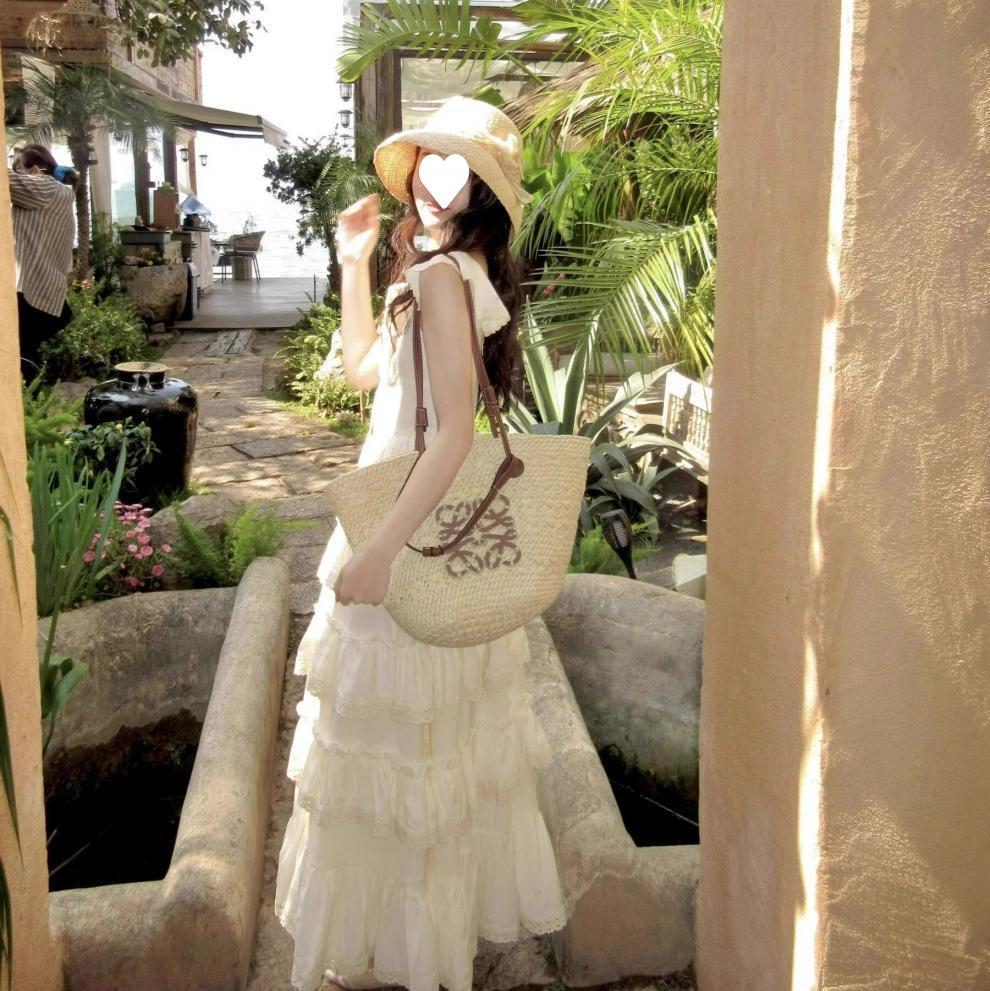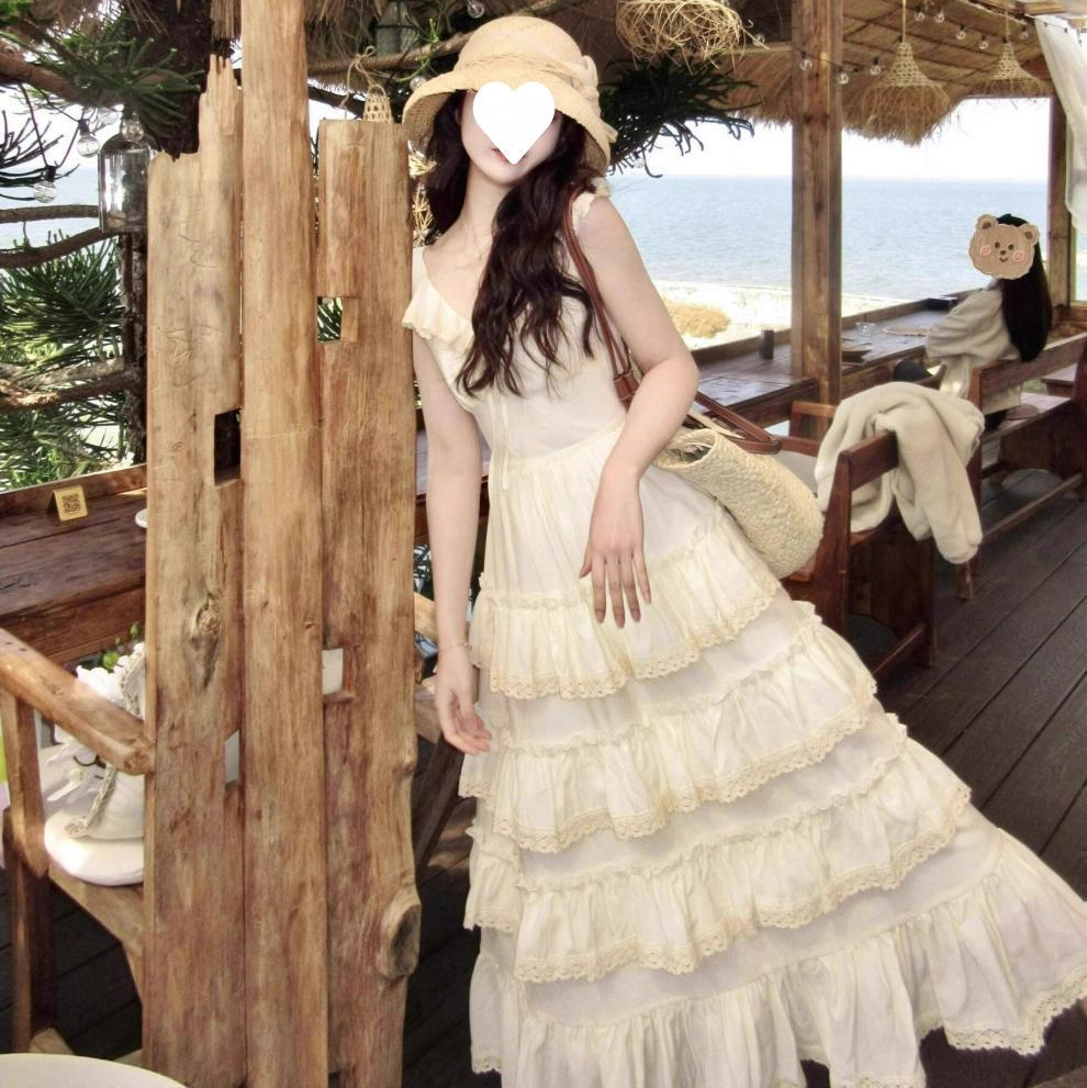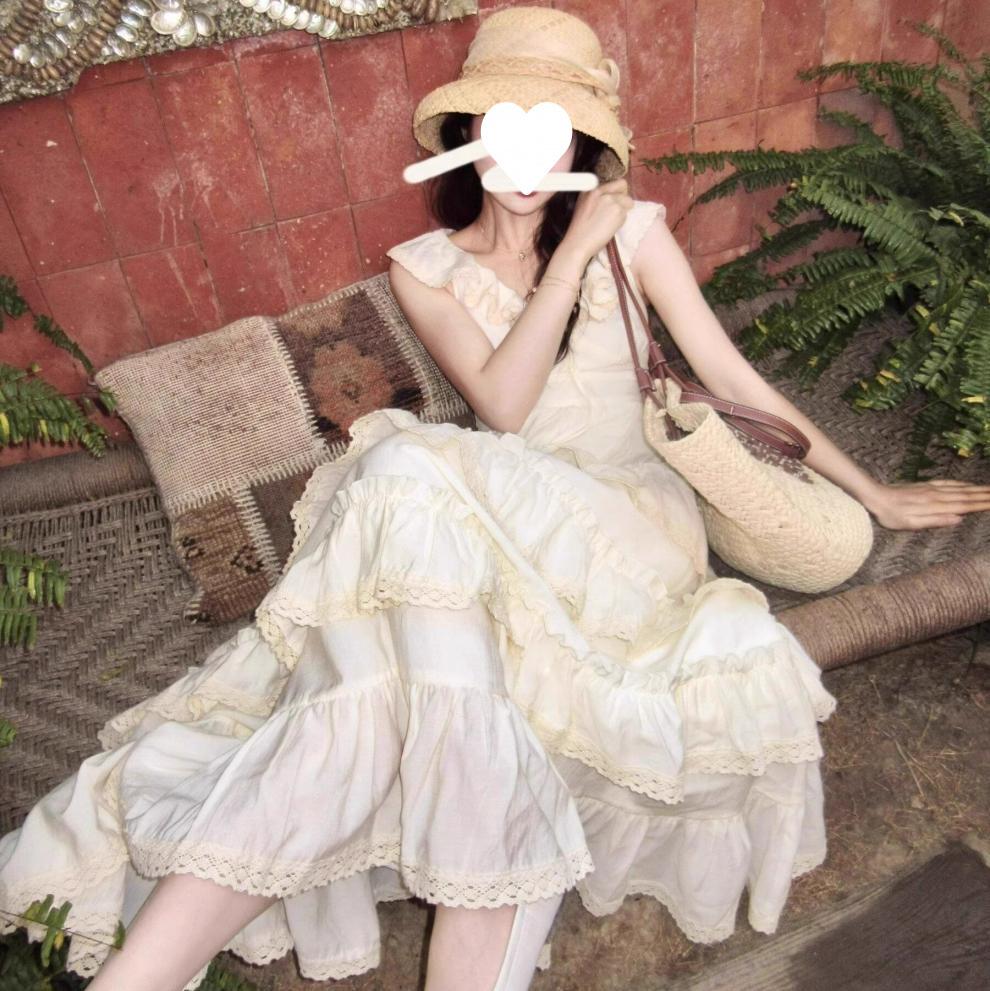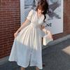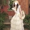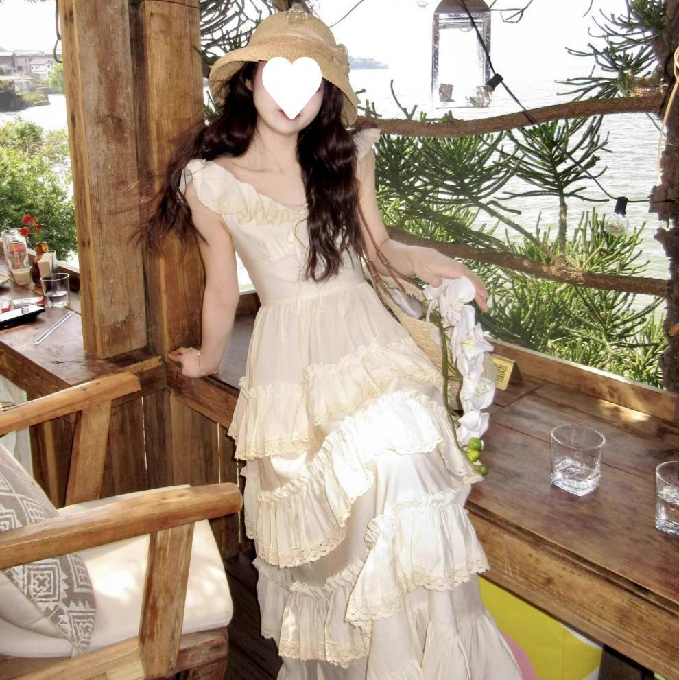 Vestido de manga francesa para mujer verano 2025 nuevo dulce como la leche suave cuello en V abullonado pastel vestido largo