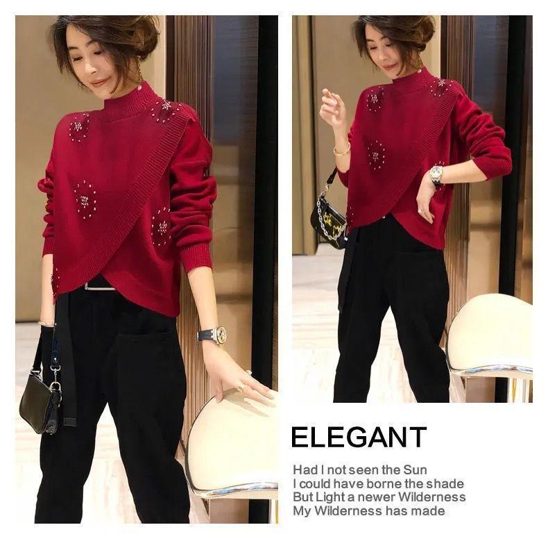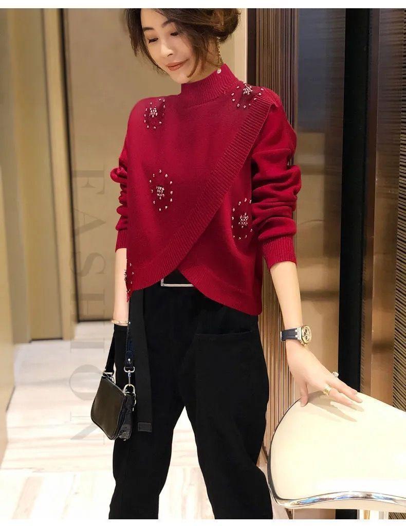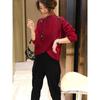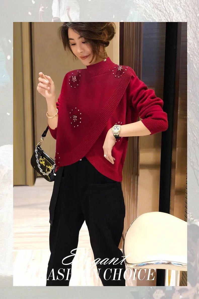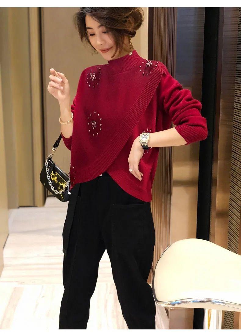 Estación Europea 2023 Nuevo Otoño y Primavera Suéter de Punto Suelto de Cuello Alto Estilo Extranjero Moda Versátil Suéter Rojo Tendencia para Mujer ins