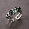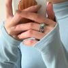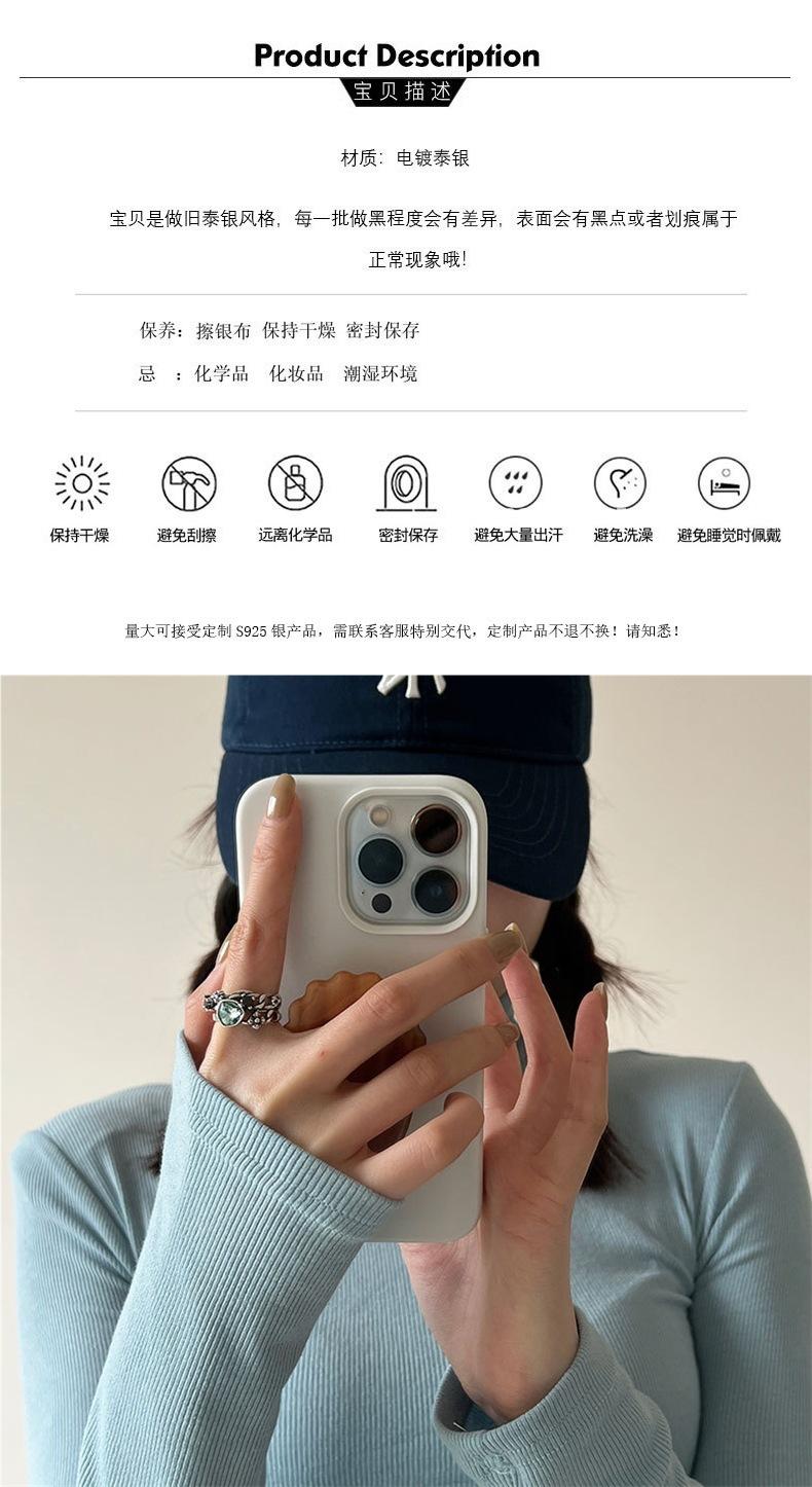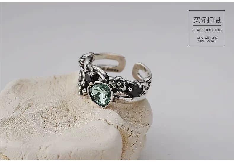 Anillo Retro de Zircón Azul Tinta para Mujer Moda Elegante Hip-Hop Plata S925 Chapado Anillo Abierto Ins Nicho Anillo de Dedo Índice