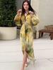 Amazon 2025 Verano Nuevo Transfronterizo Europeo y Americano Moda Estampada Slim Cuello en V Cintura Vestido de Manga Larga para Mujer