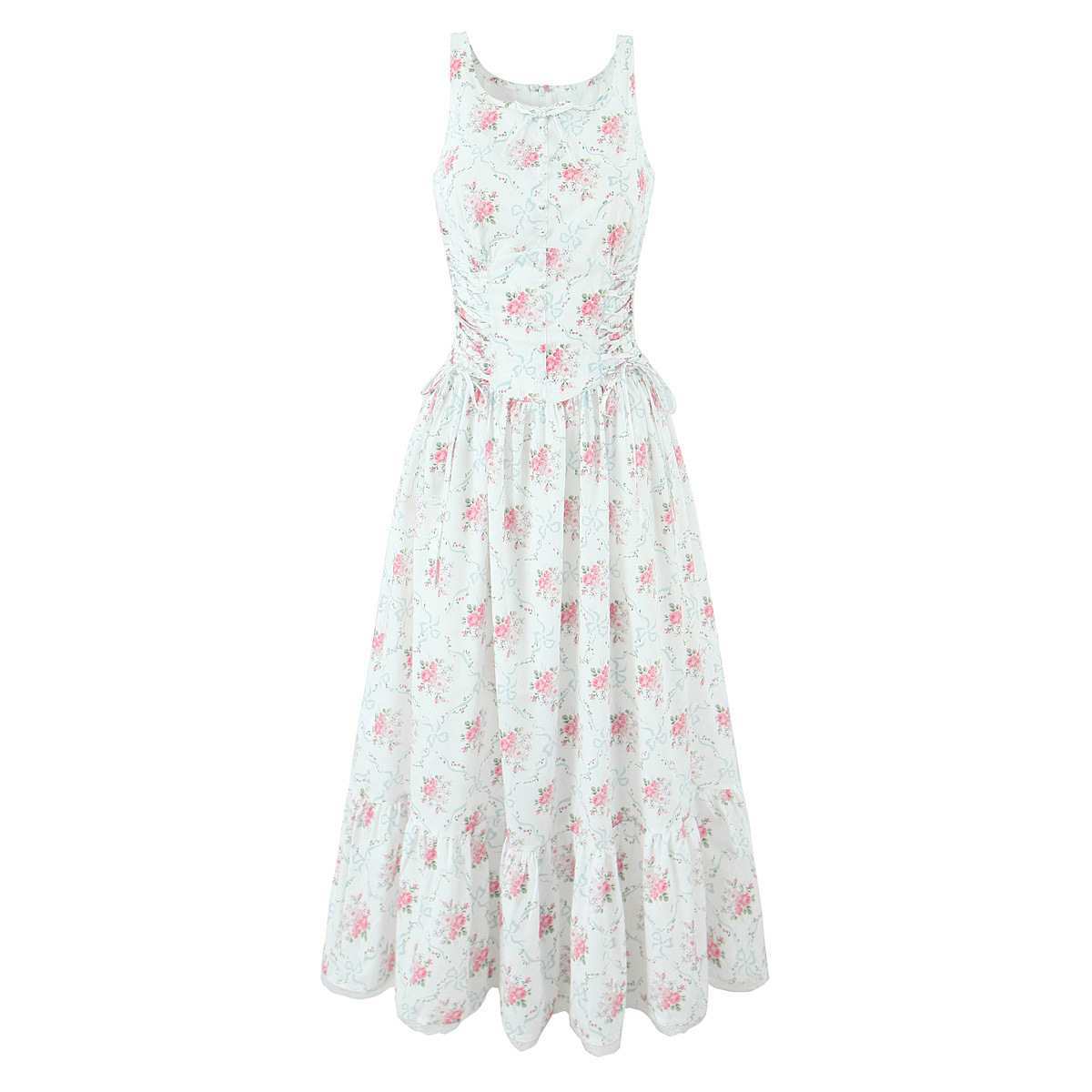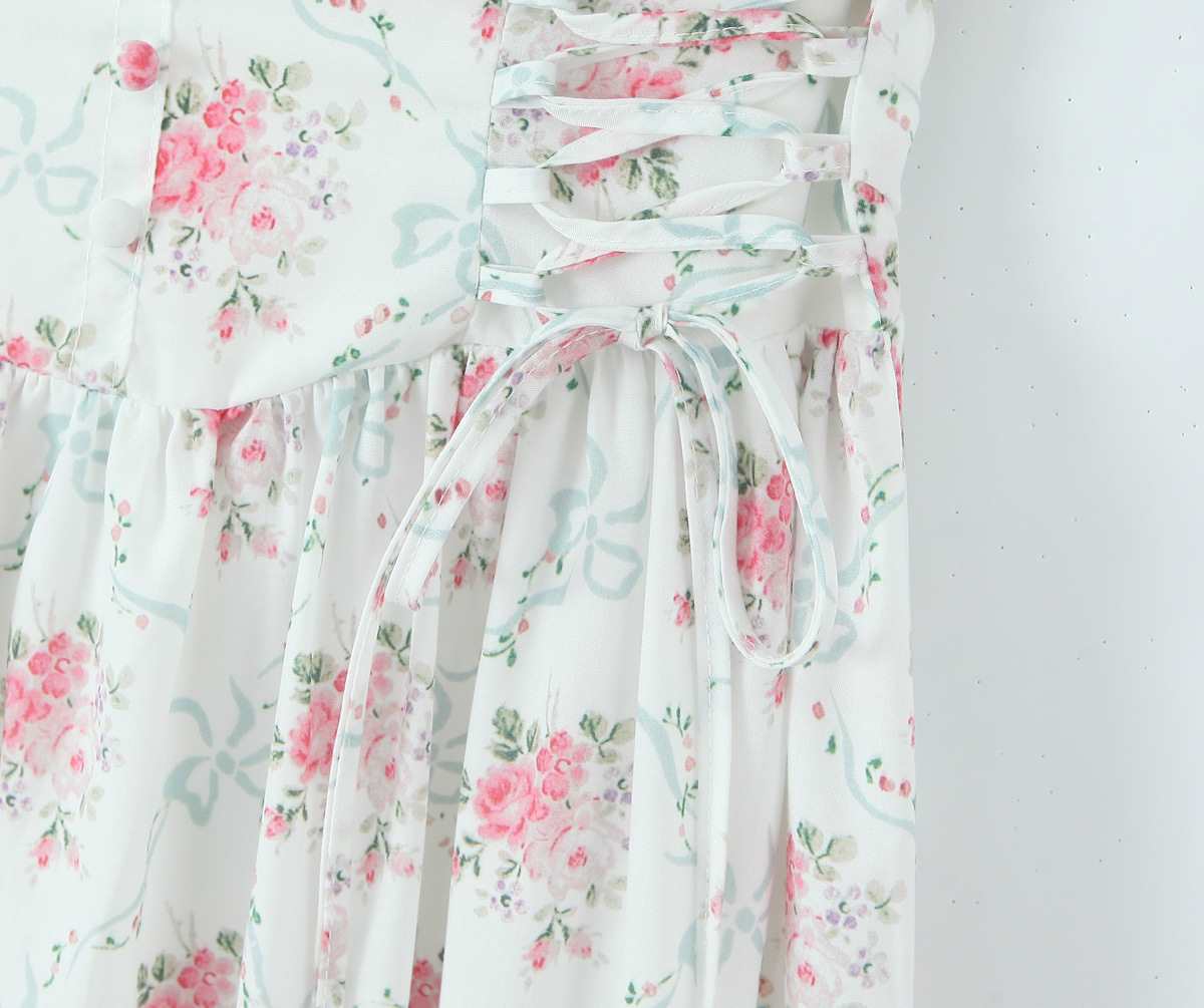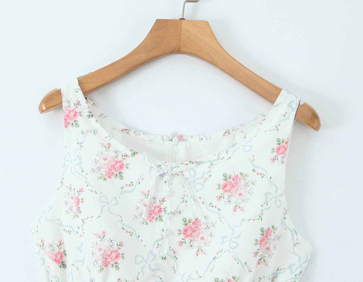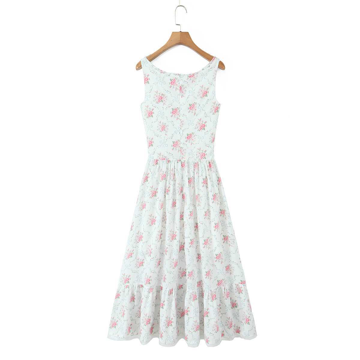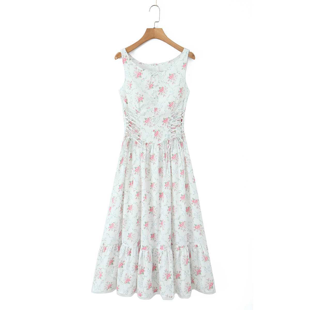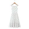 Vestido Amplio Nuevo de Verano para Mujer Dulce Floral Tirantes Transfronterizo Rosa Cintura Alta Ajustado Europeo y Americano
