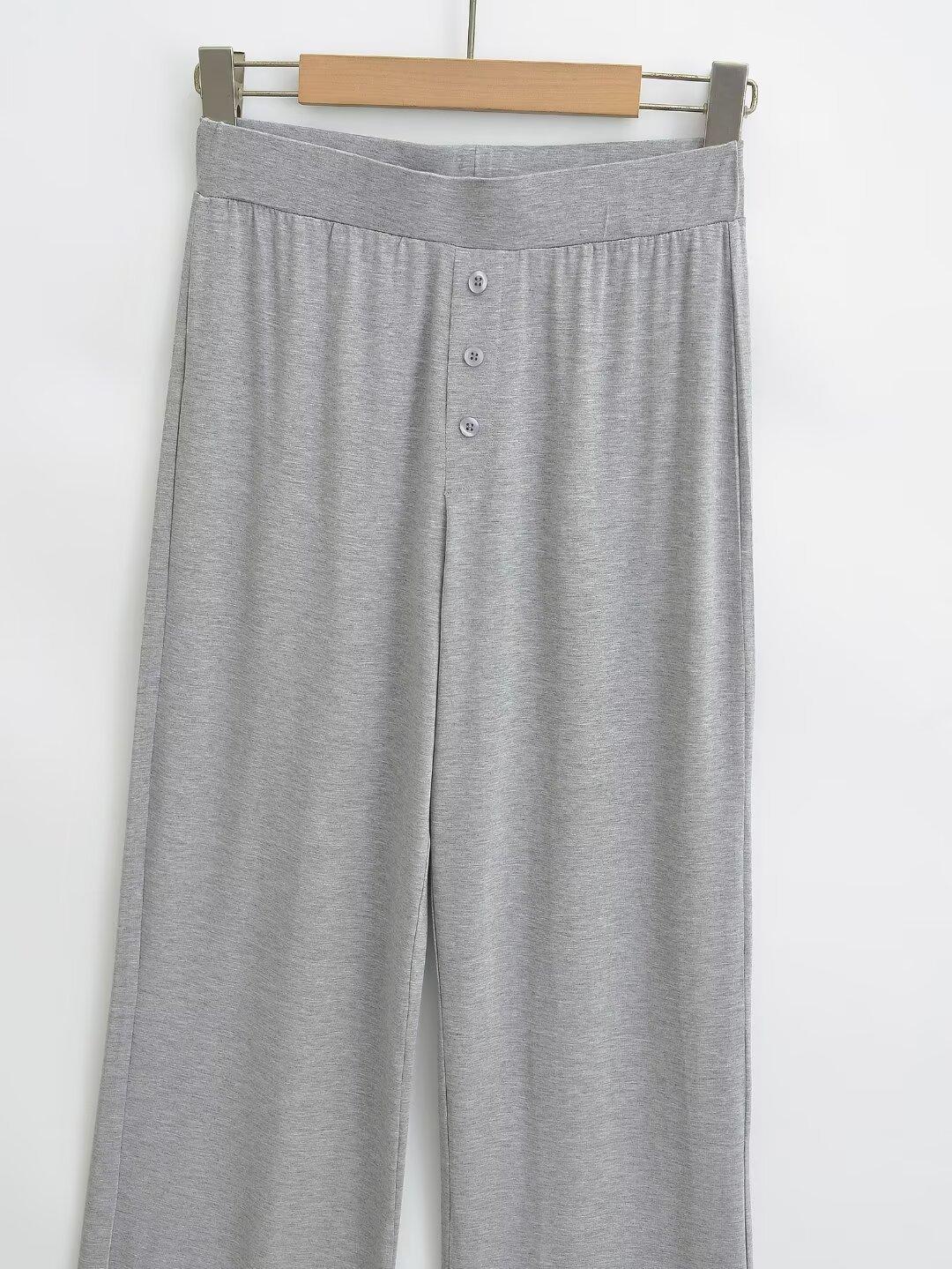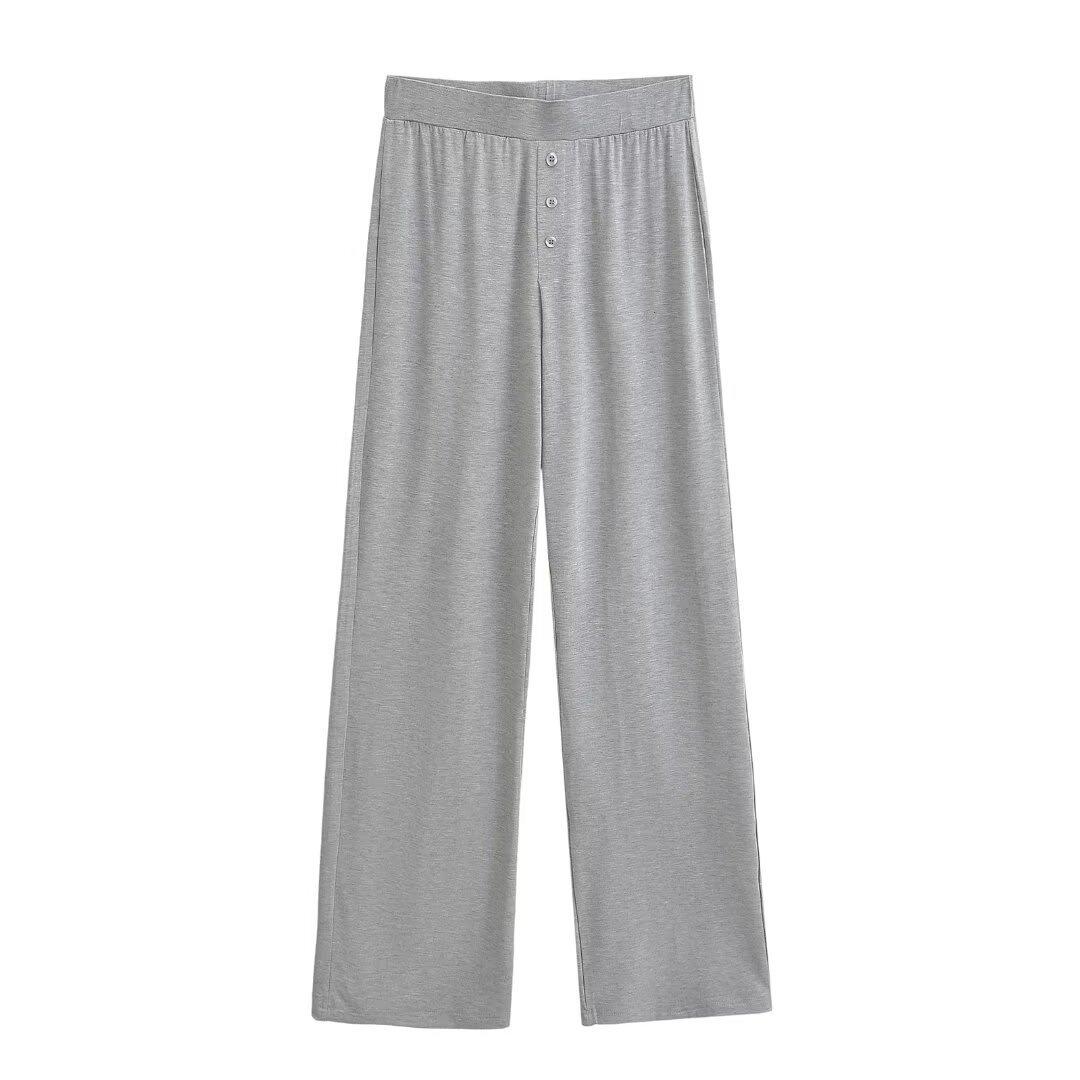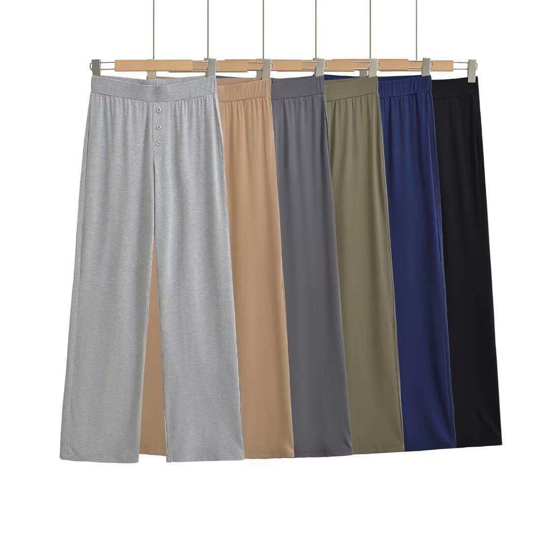 Pantalones casuales americanos holgados estilo hogar con botón elástico para mujer otoño 2024 nuevos color sólido deportivos rectos al por mayor