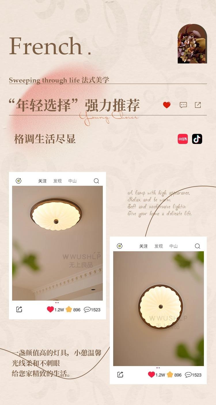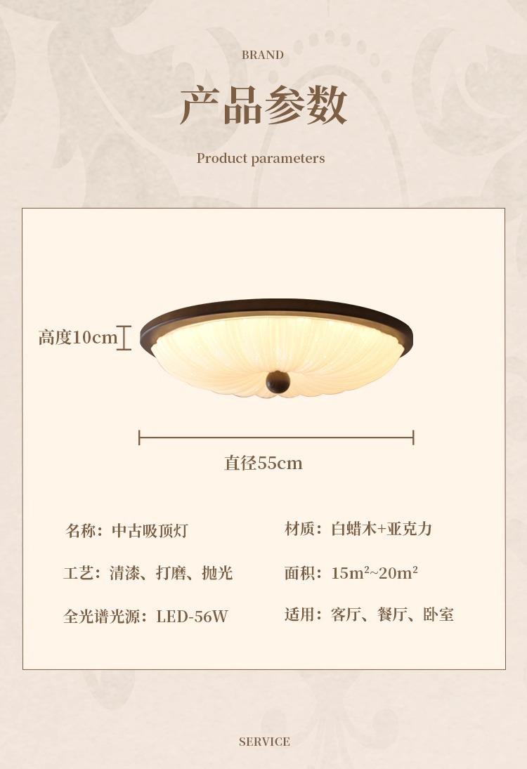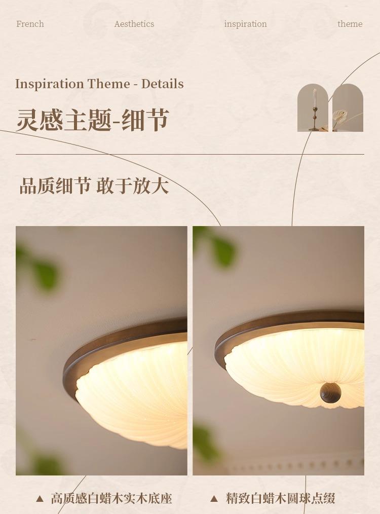 2025 Nuevo Diseño de Lámpara de Techo de Madera Maciza Lámpara de Habitación Dormitorio Redonda Estilo Crema Lámpara de Estudio Lámpara de Espectro Completo Protección Ocular