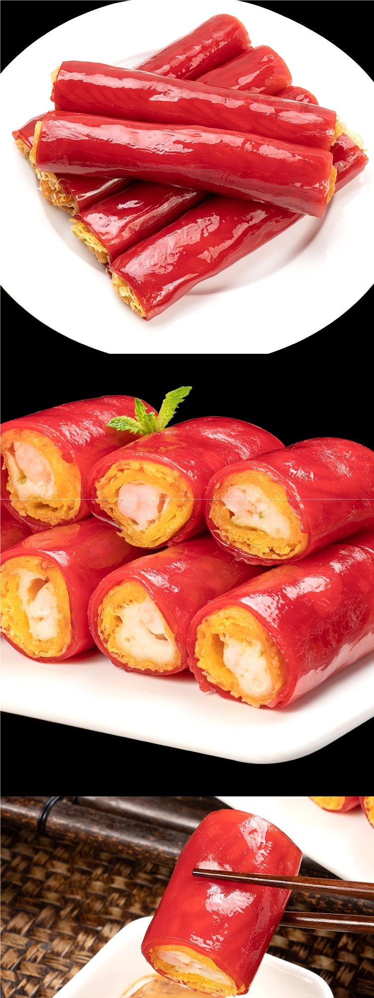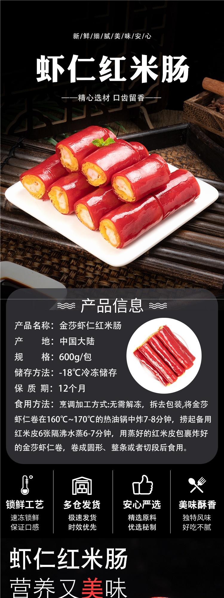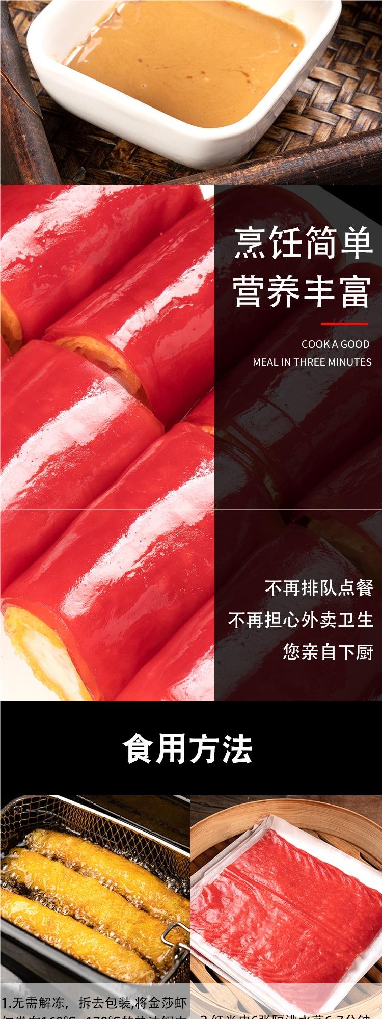 Salchicha de Arroz Rojo Arena Dorada 600g Dim Sum Cantonés Rollo Crujiente de Camarón Estilo Hong Kong Restaurante de Té Producto Semielaborado Ultracongelado para Uso Comercial