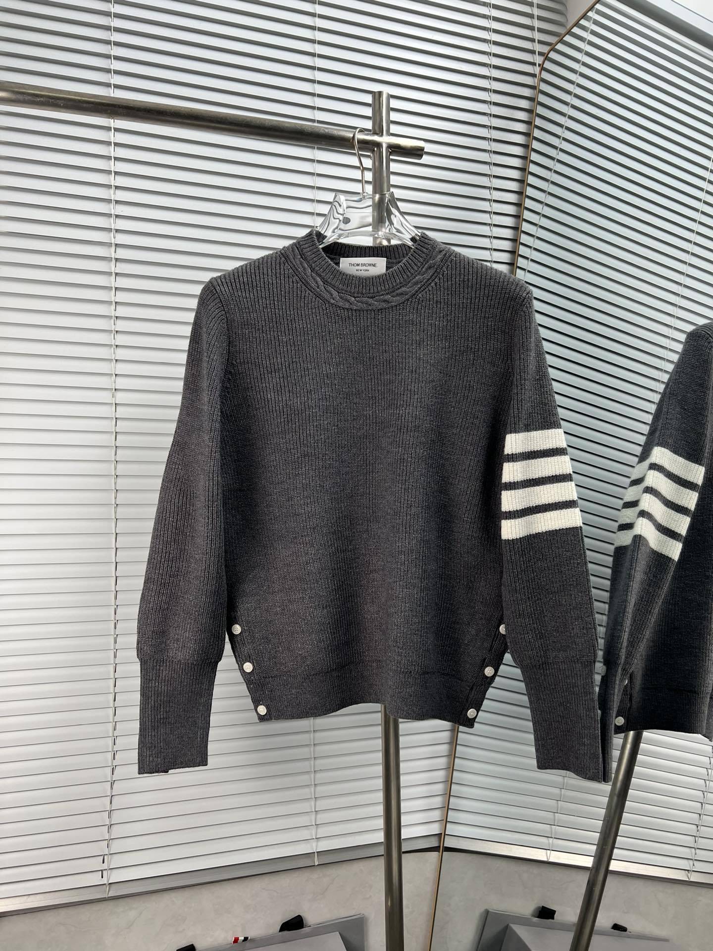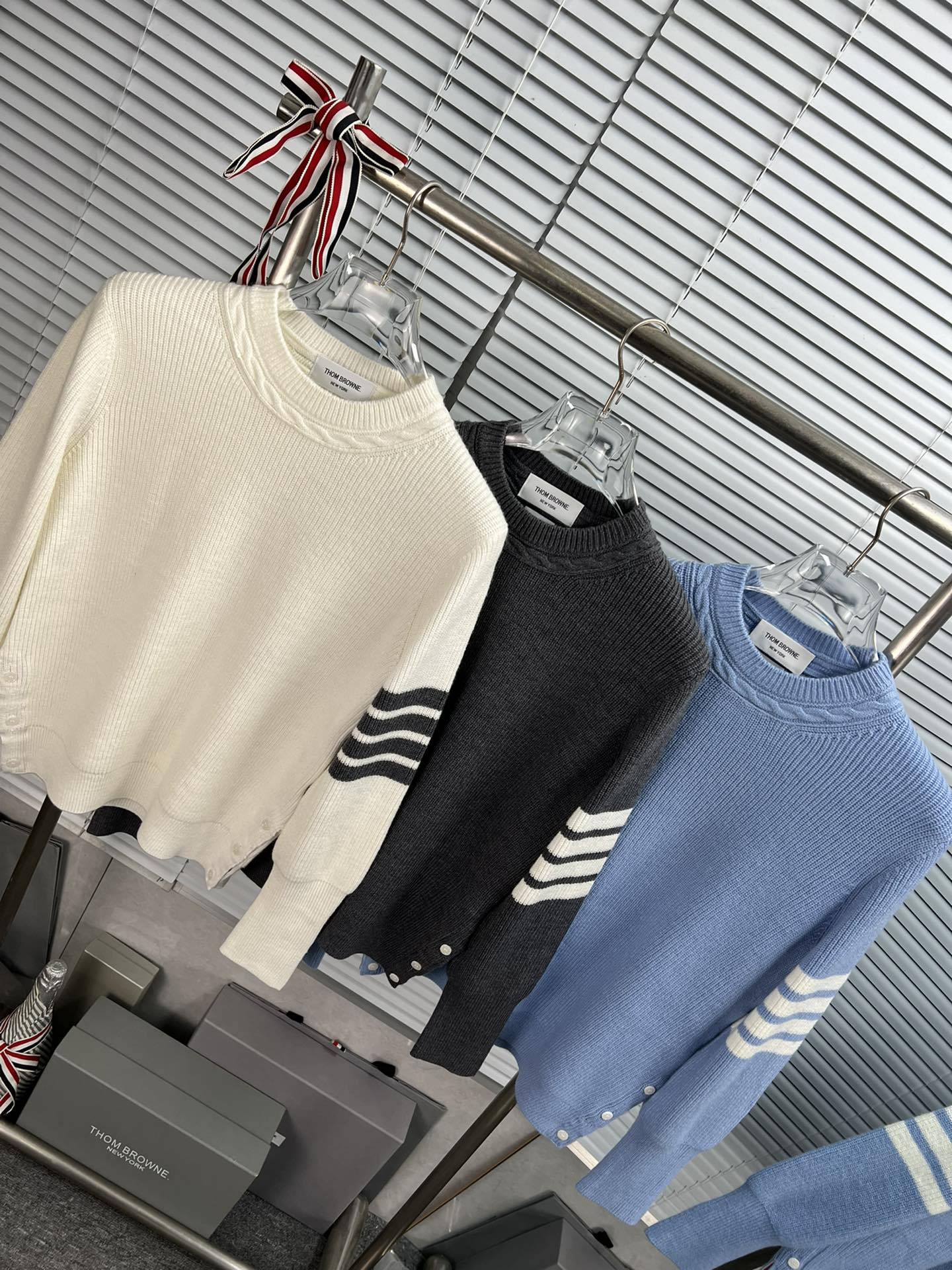 Suéter de Mujer de Cuello Torcido Rayado de Cuatro Barras de Alta Calidad para Otoño e Invierno