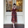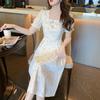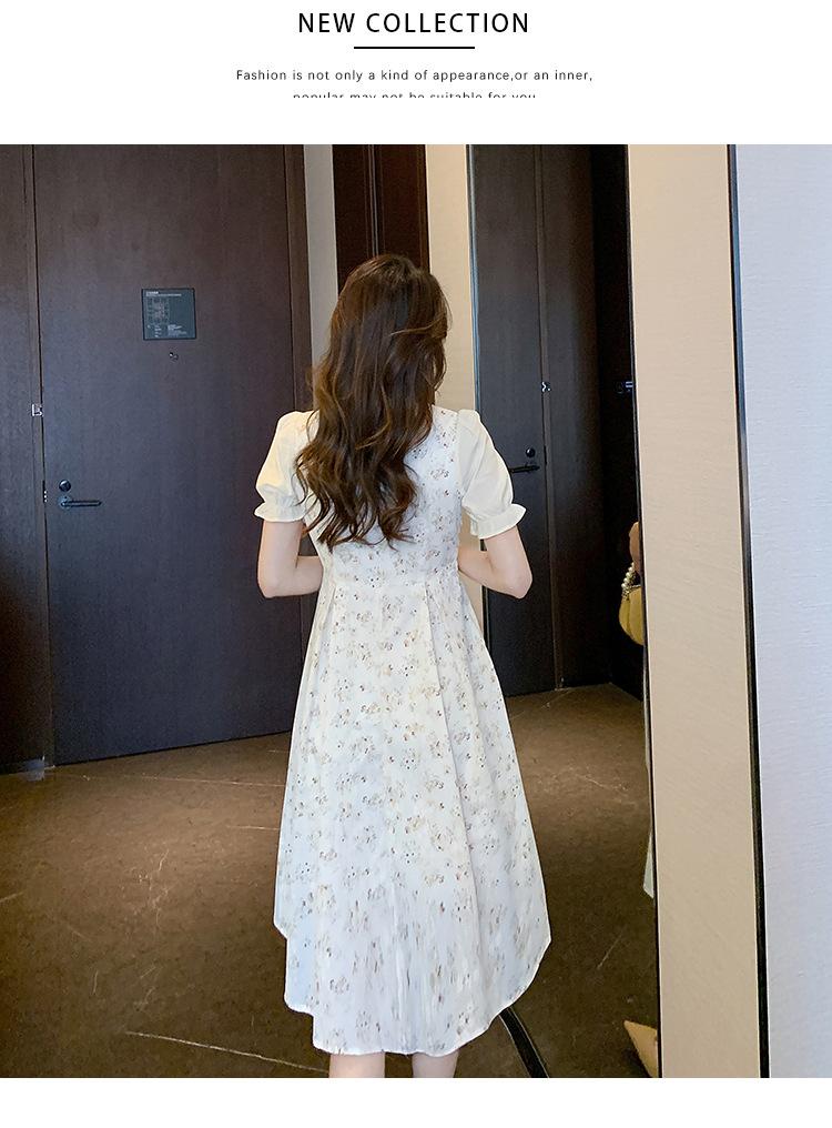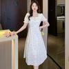 Foto Real de Verano Nuevo Estilo Adelgazante de Cintura Estilo Francés Jacquard de Relieve Tridimensional Vestido Floral Largo de Manga Corta para Mujer