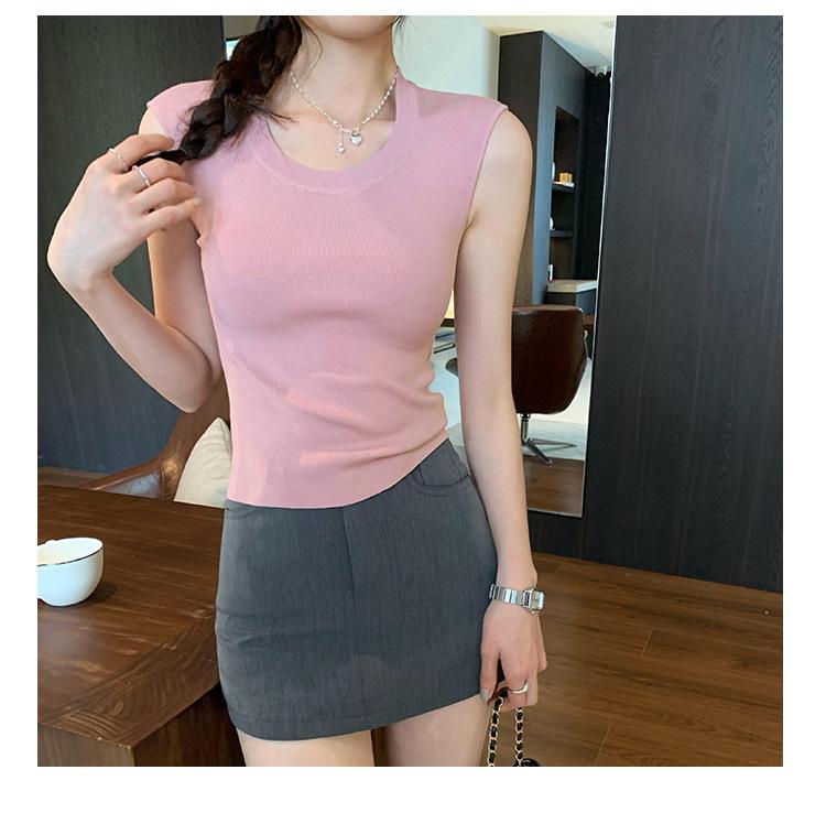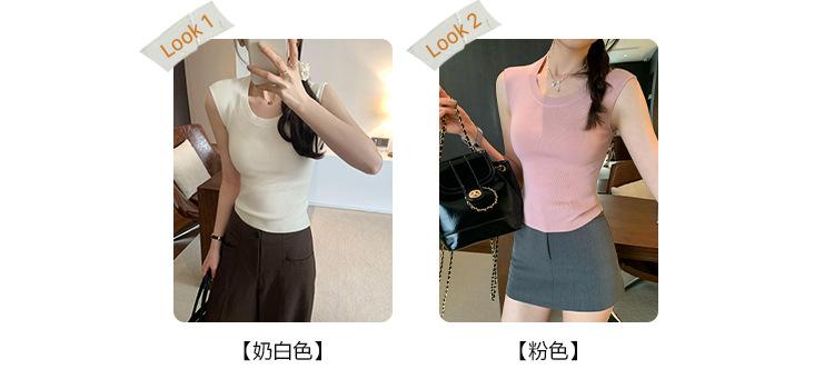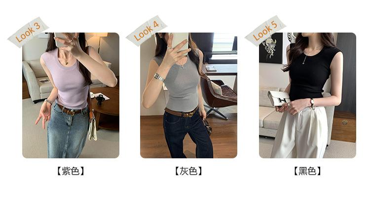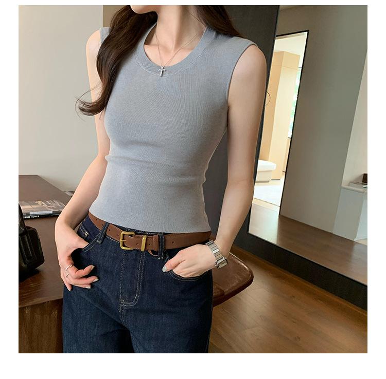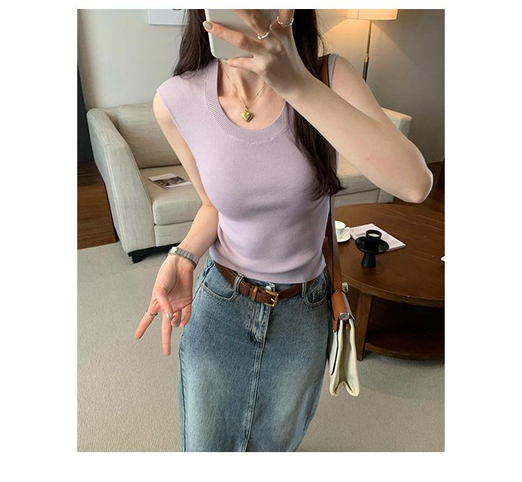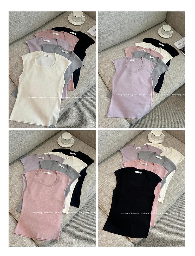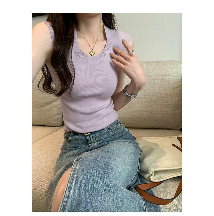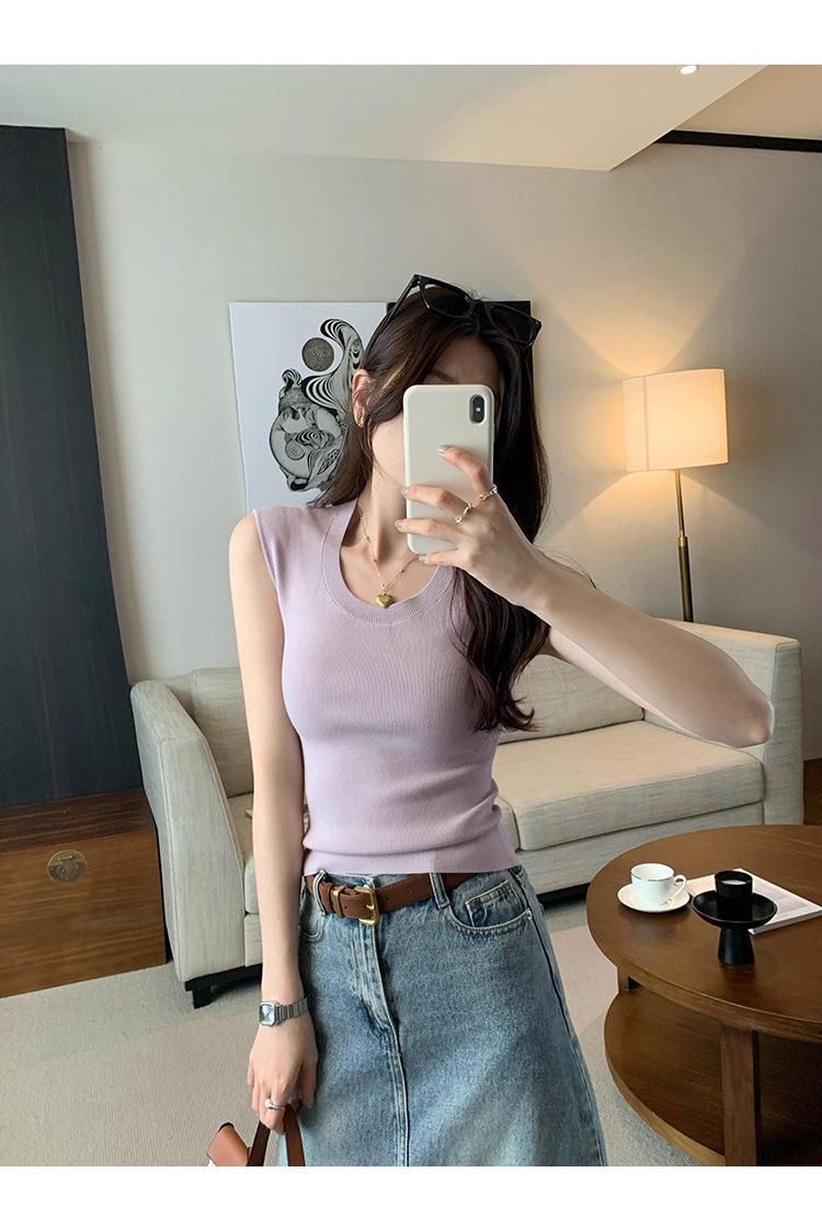 Foto Real de Chaleco sin Mangas para Chica Delgada y Sexy para Mujer Verano 2025 Nuevo Top de Suéter Tejido Interior Ajustado