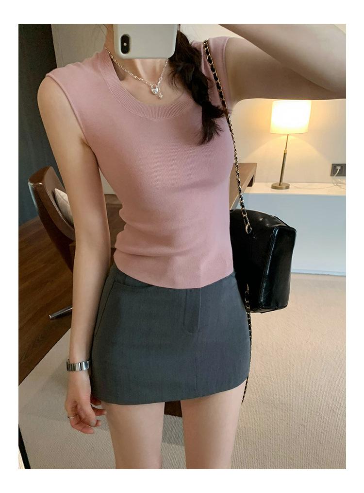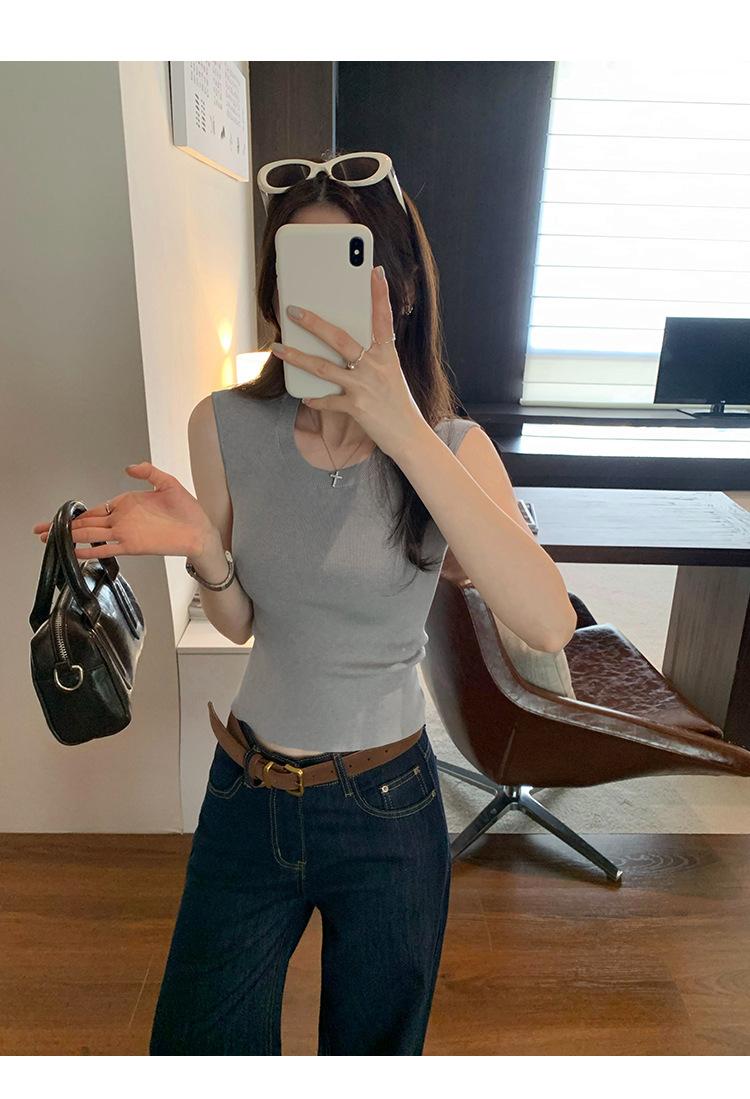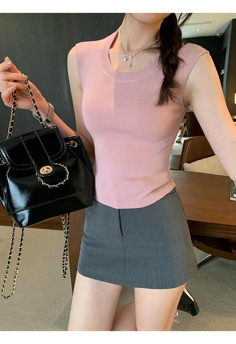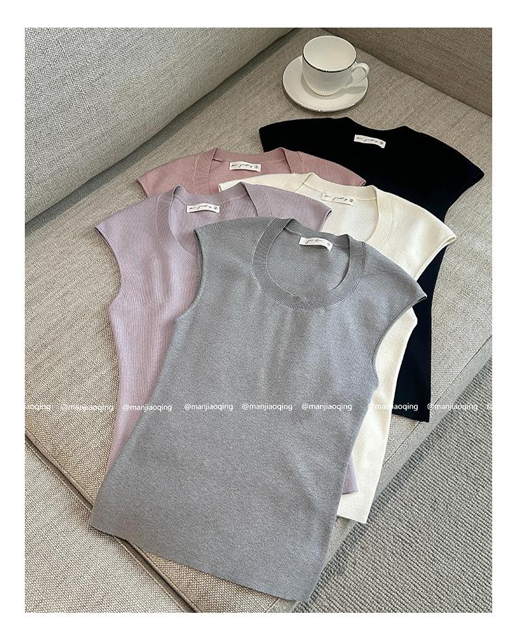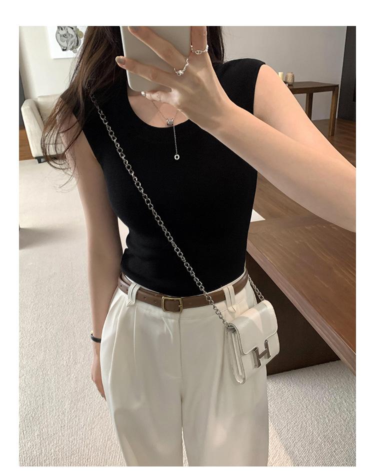 Foto Real de Chaleco sin Mangas para Chica Delgada y Sexy para Mujer Verano 2025 Nuevo Top de Suéter Tejido Interior Ajustado