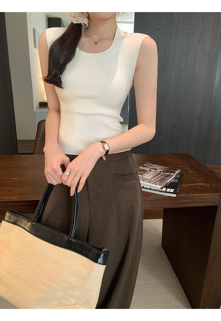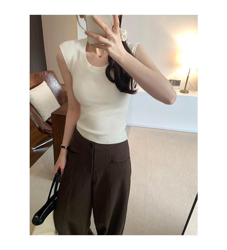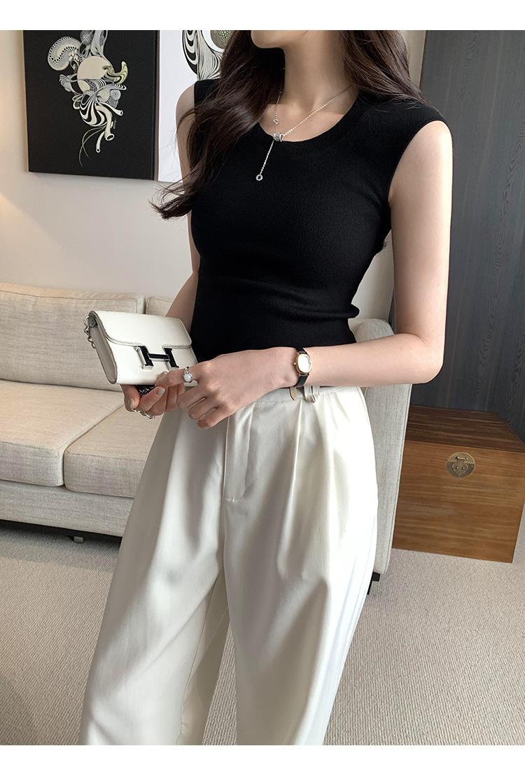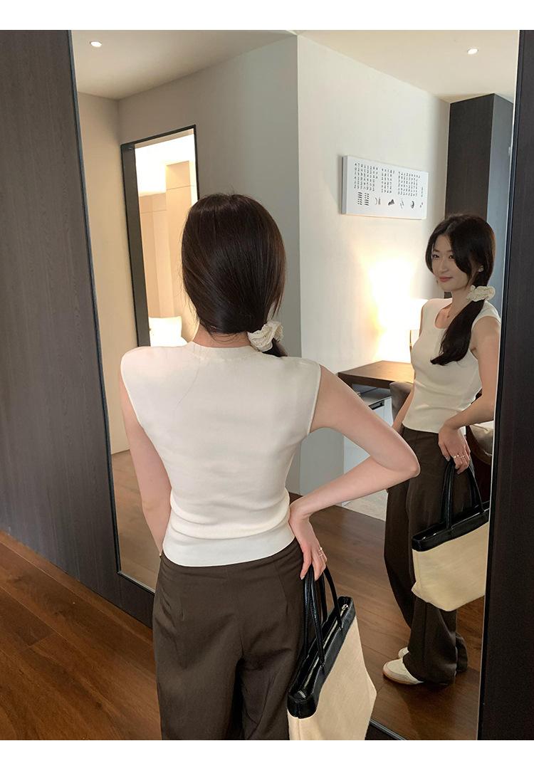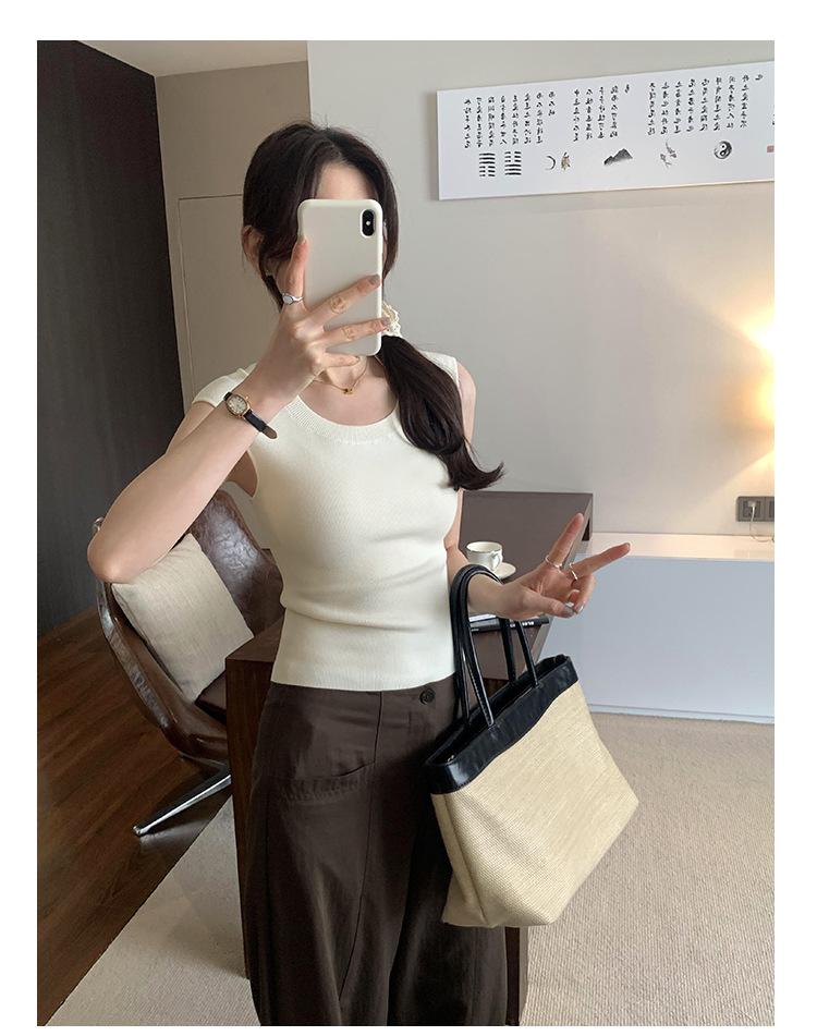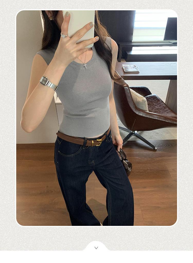 Foto Real de Chaleco sin Mangas para Chica Delgada y Sexy para Mujer Verano 2025 Nuevo Top de Suéter Tejido Interior Ajustado
