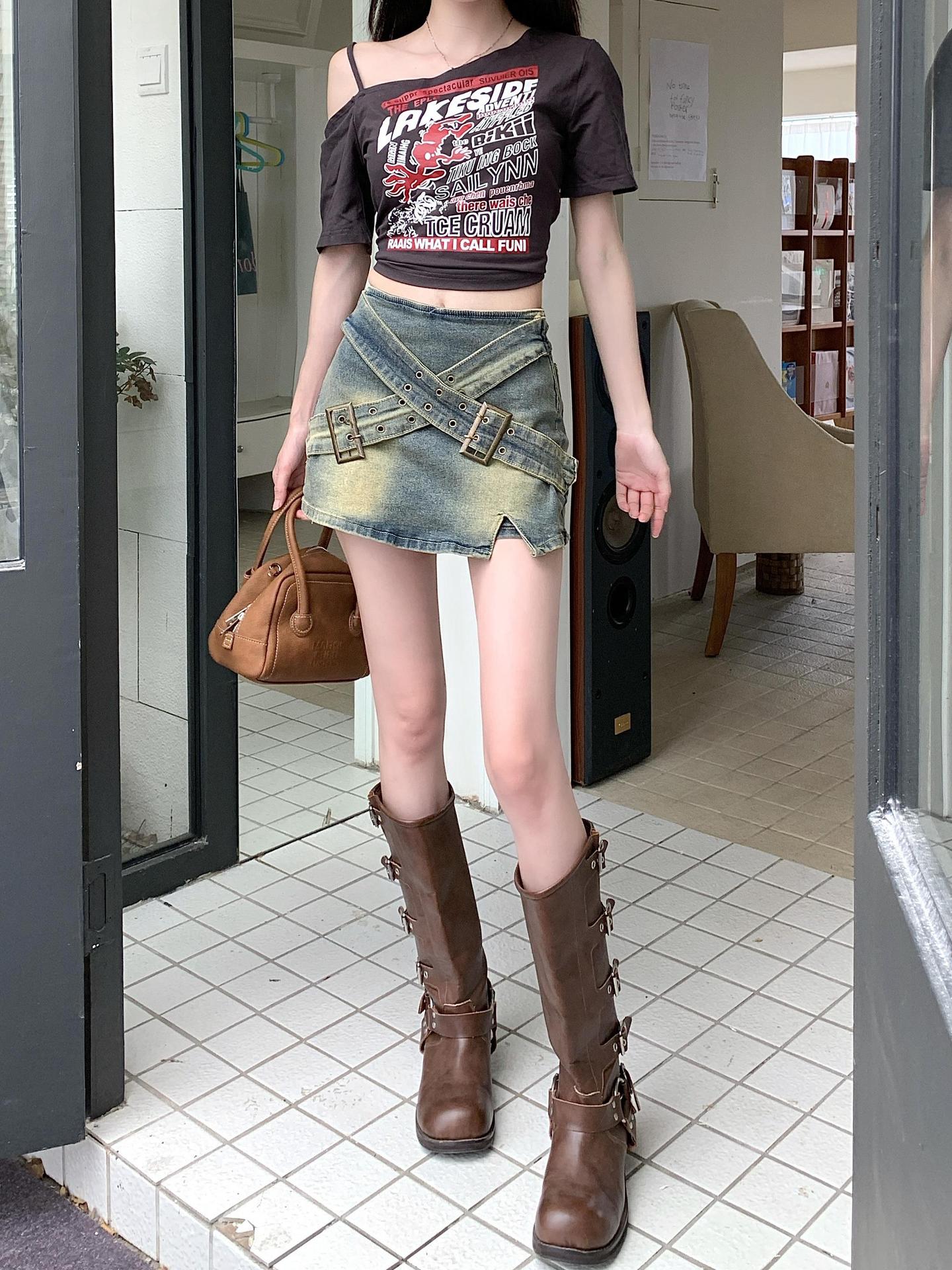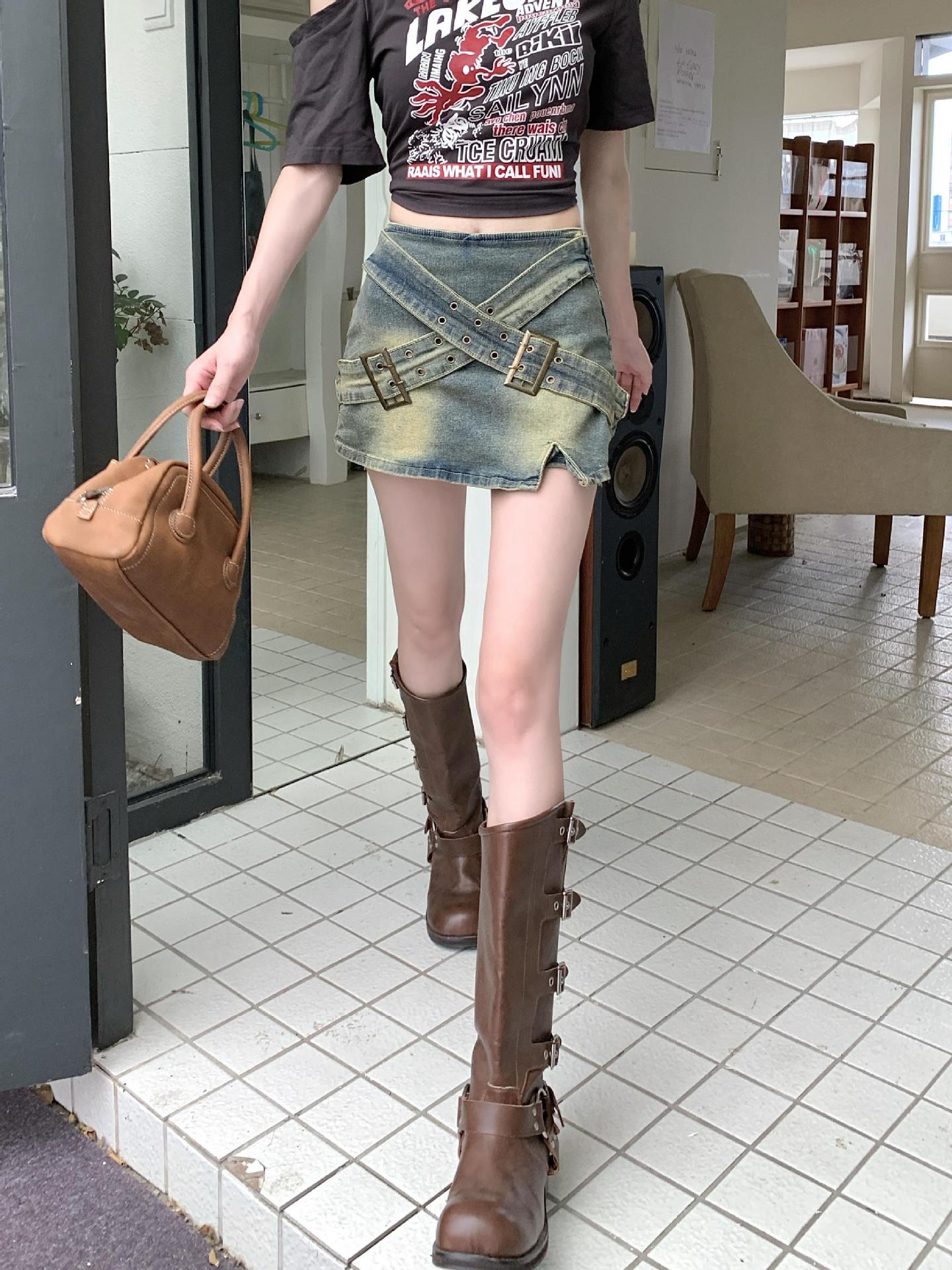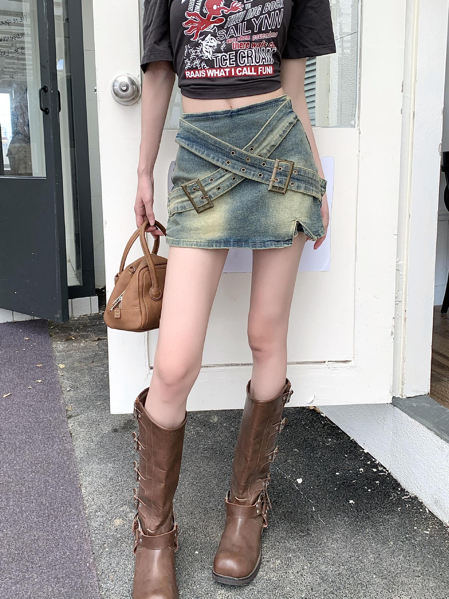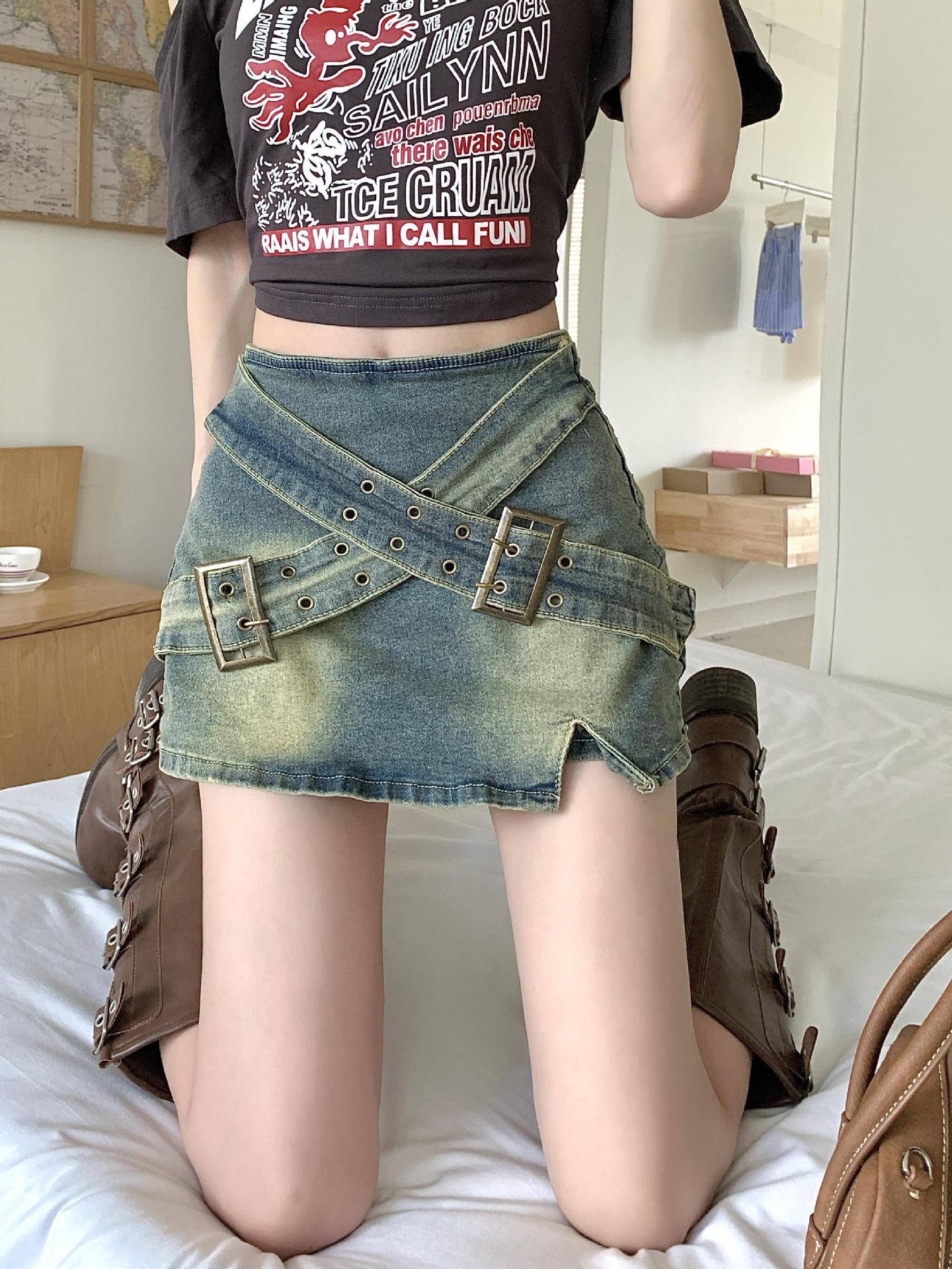 Falda de Mezclilla para Chica Sexy Mujer 2025 Verano Nuevo Estilo Línea A Cintura Alta Corta Falda Corta Ajustada a la Cadera