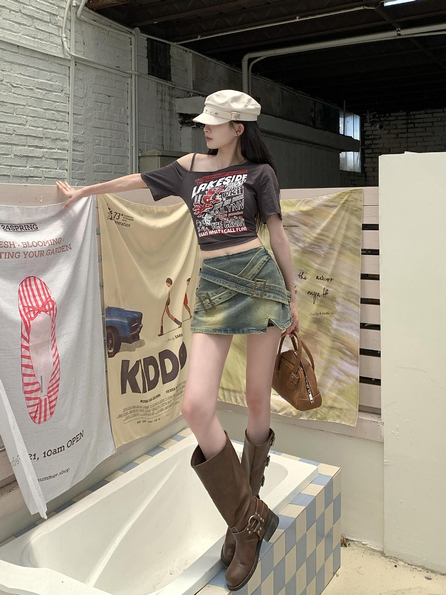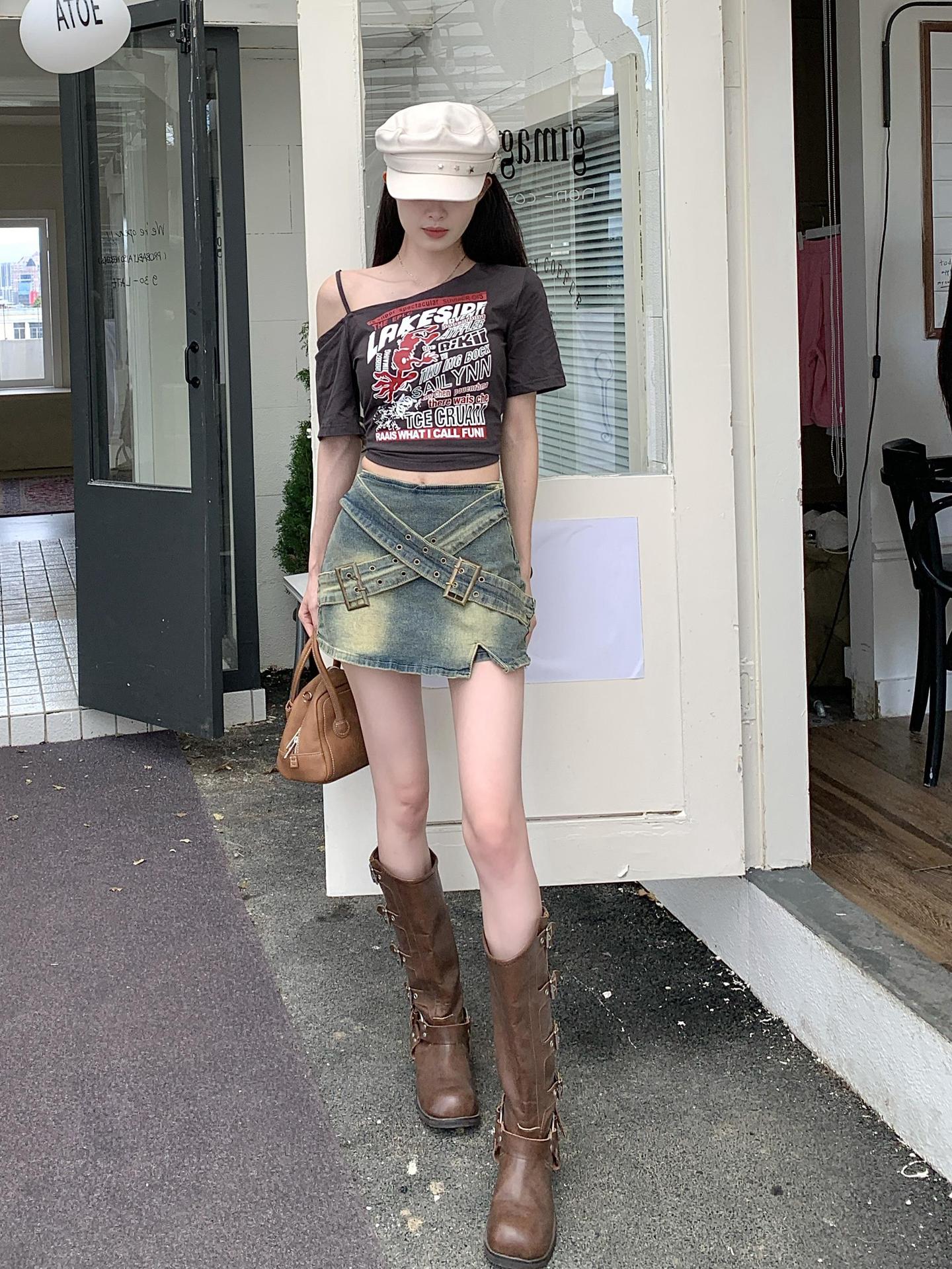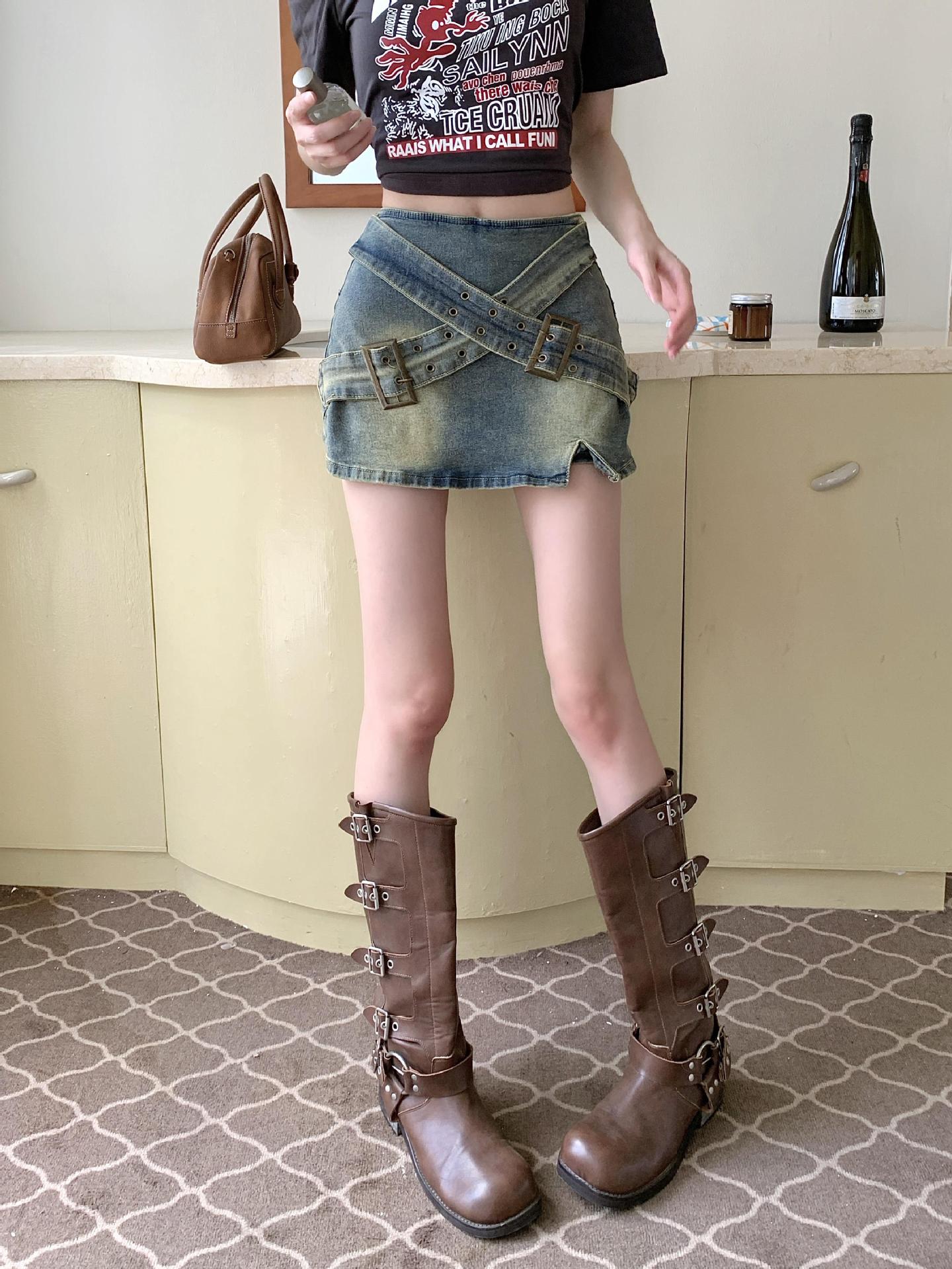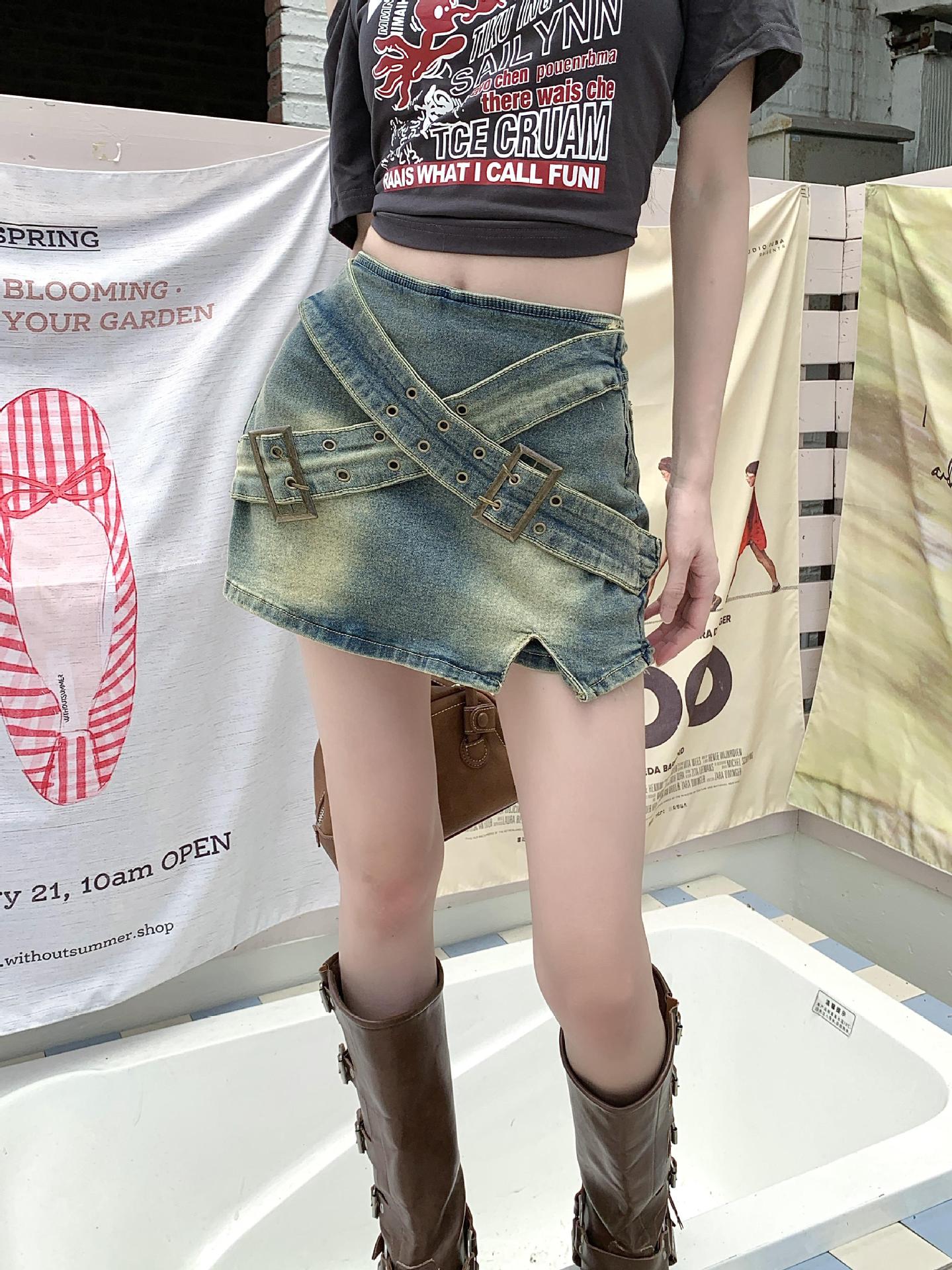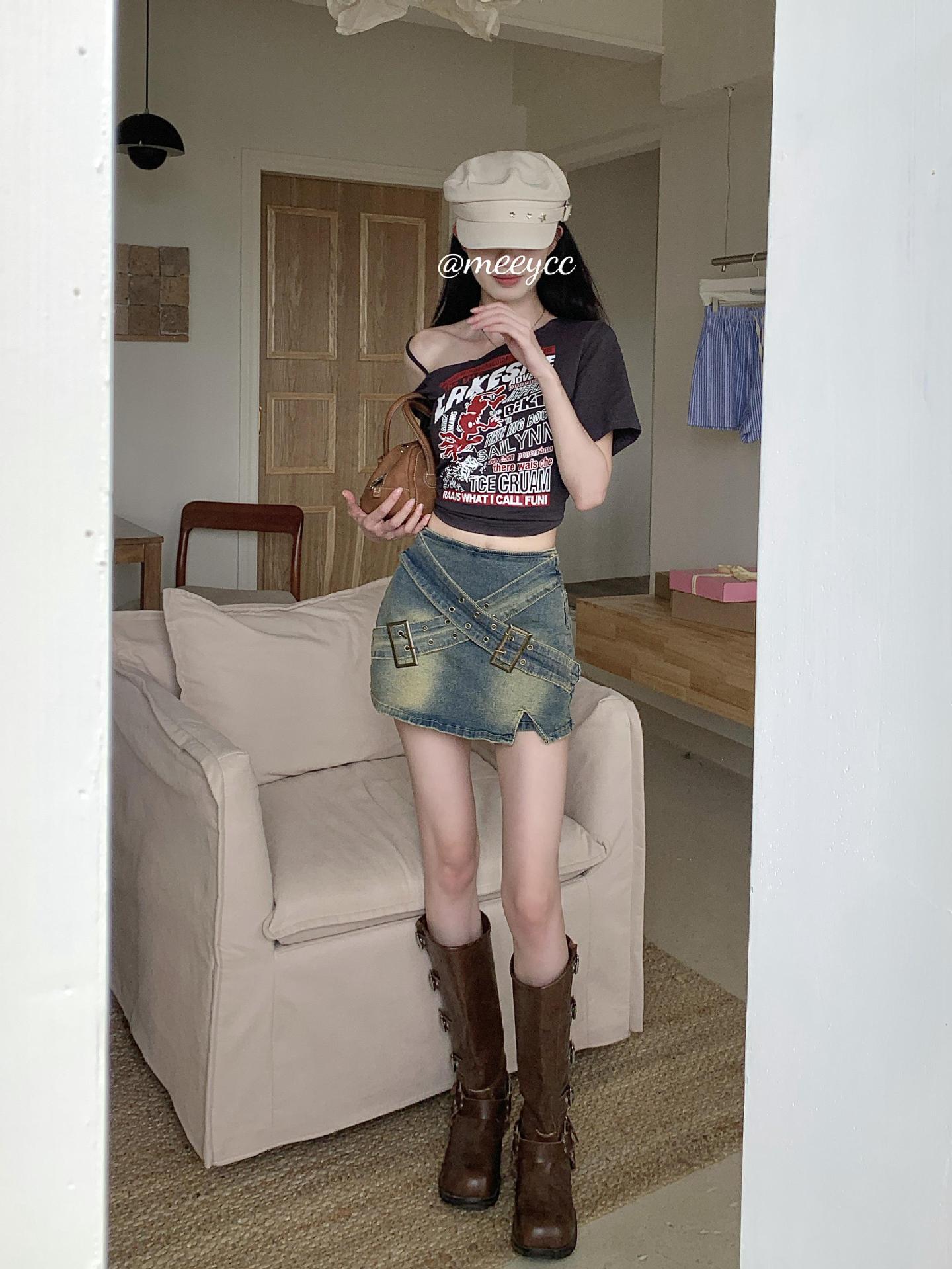 Falda de Mezclilla para Chica Sexy Mujer 2025 Verano Nuevo Estilo Línea A Cintura Alta Corta Falda Corta Ajustada a la Cadera