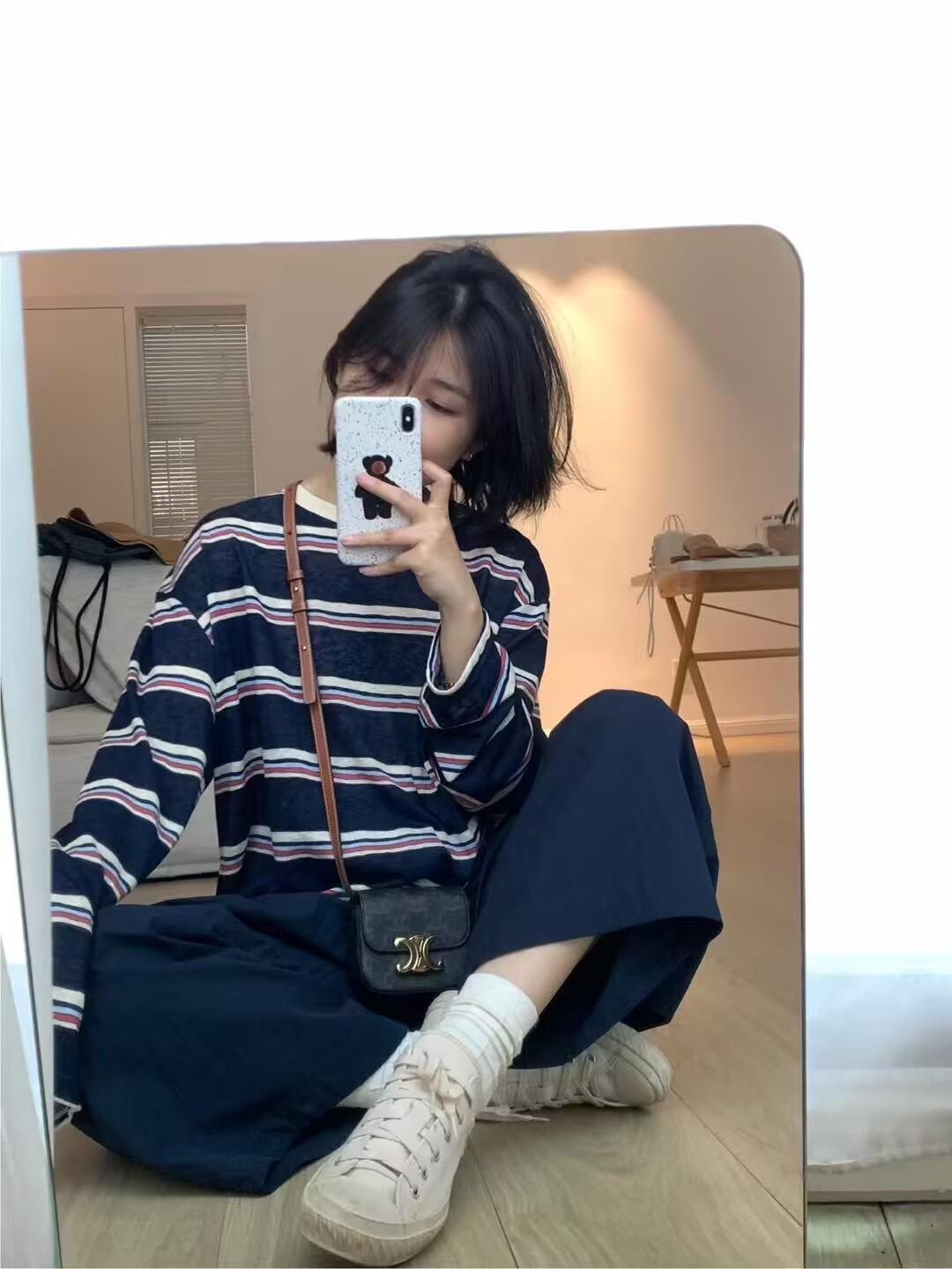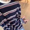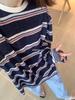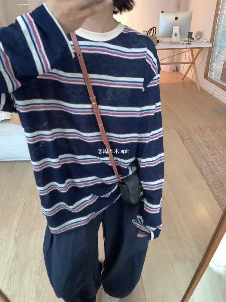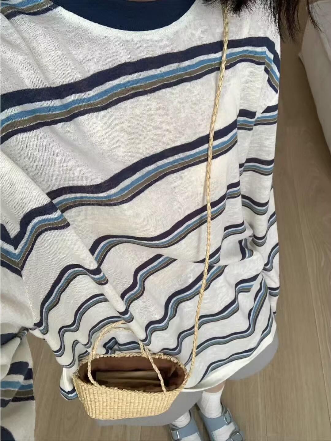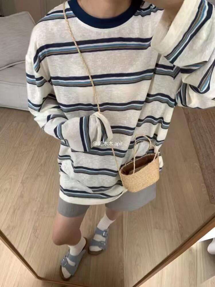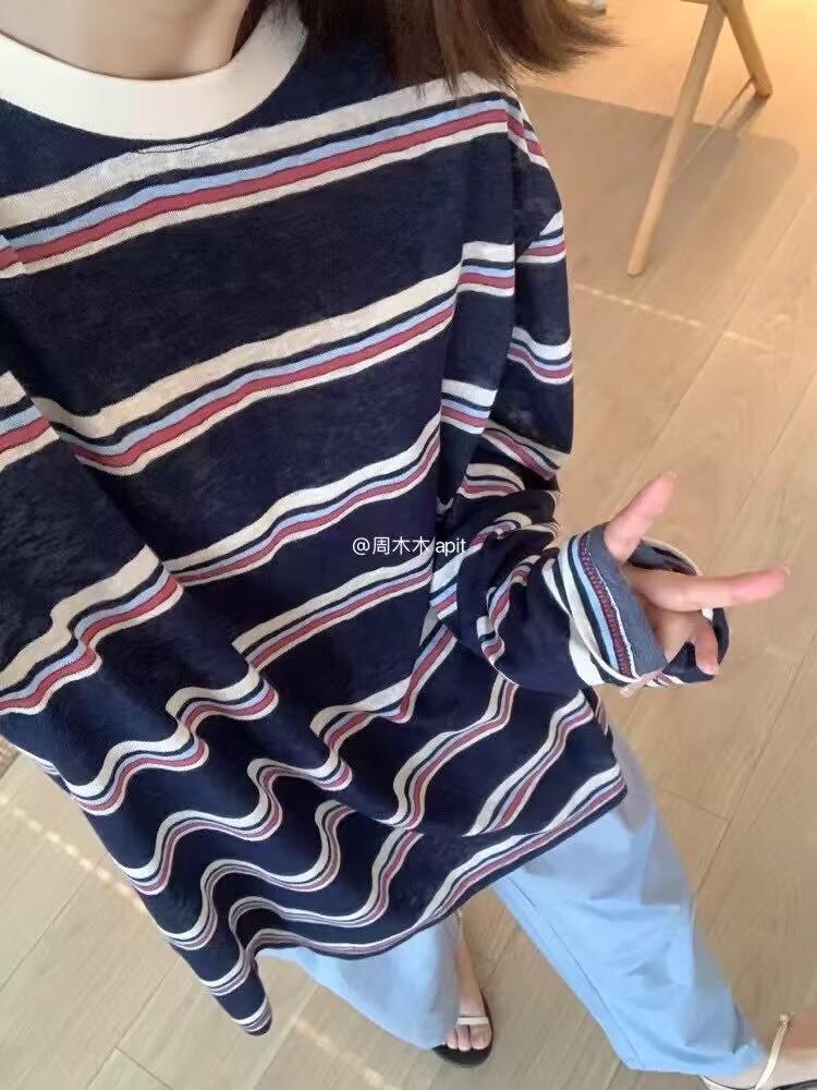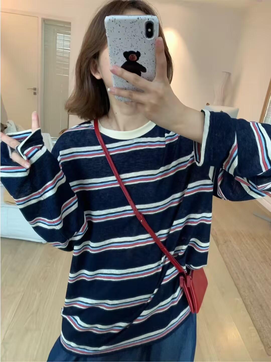 Camiseta Vintage Estilo Desgastado Color Block Rayada de Manga Larga con Protección Solar para Mujer Camiseta de Viaje Top Estilo Lazy