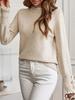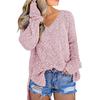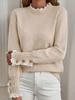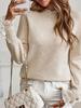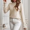 Otoño e Invierno Exportación Europea y Americana Transfronteriza Tejido de Punto para Mujer con Encaje Empalmado Cuello Redondo Manga Larga Jersey de Punto con Hebilla para Mujer