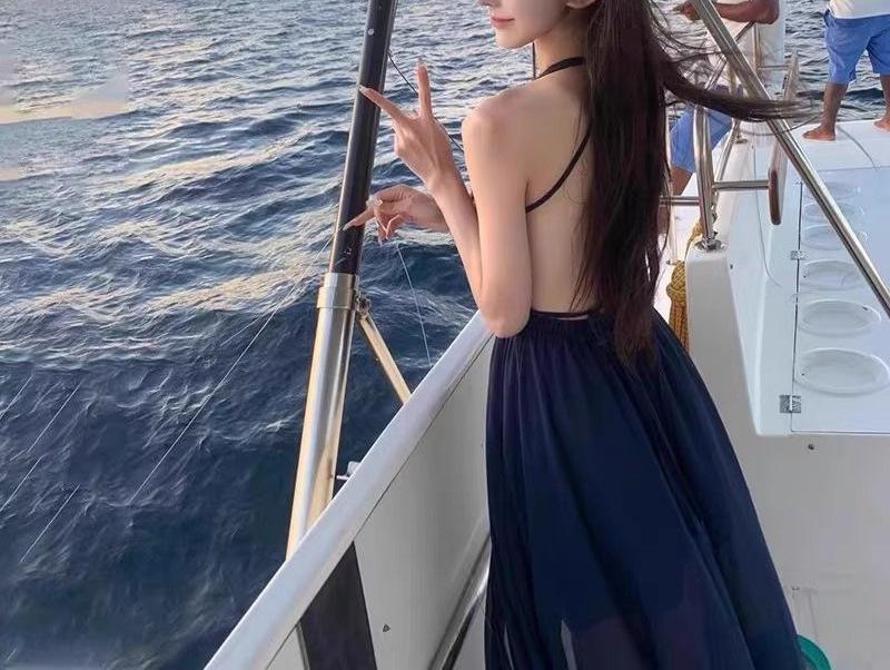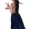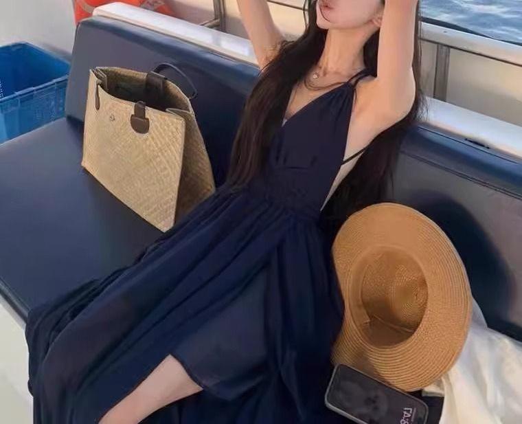 Vestido Sexy de Espalda Descubierta con Escote en V Profundo Vacaciones Junto al Mar Vestido de Playa Verano Nuevo Ropa de Viaje Cuello Vestido Largo Hada