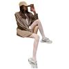 Medias de seda con flores blancas para mujer, ultrafinas, con base hueca, de red, de encaje, sexys, de malla de seda negra, color rojo JK