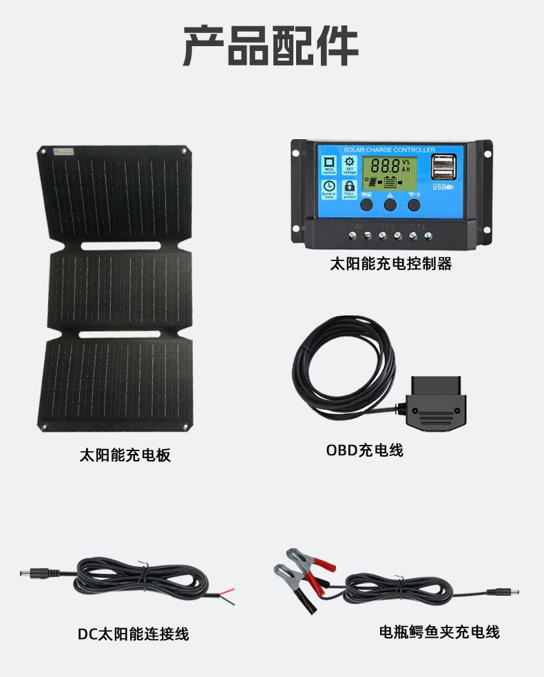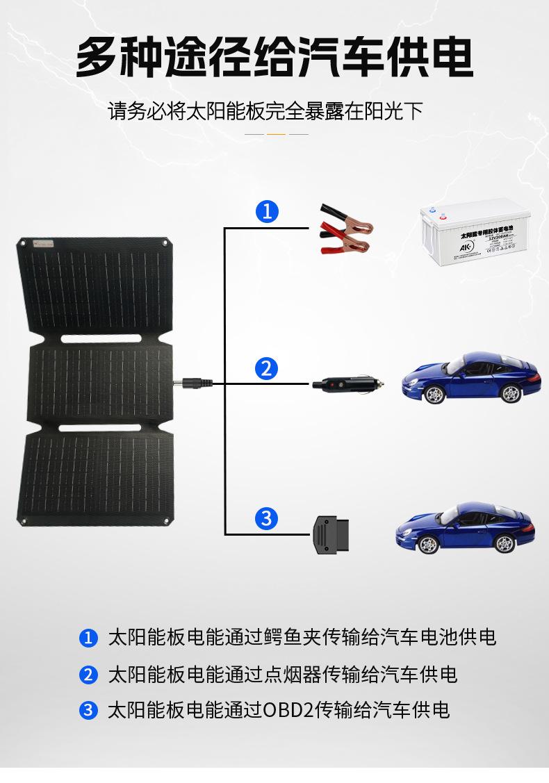 Etfe 40w solar folding bag, Package 1: etfe 40w+obd line+controller+dc line+clip line, Package 2: etfe 40w + c...