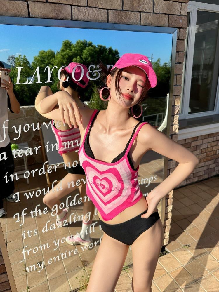 Traje de Baño Dividido de Color Sólido Estilo Coreano Nuevo 2024 Bikini Sexy con Tirantes Descubiertos para Vacaciones en Aguas Termales