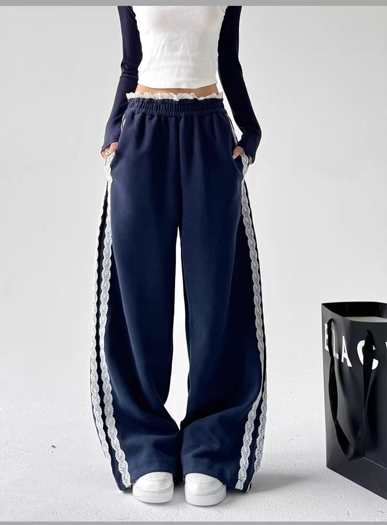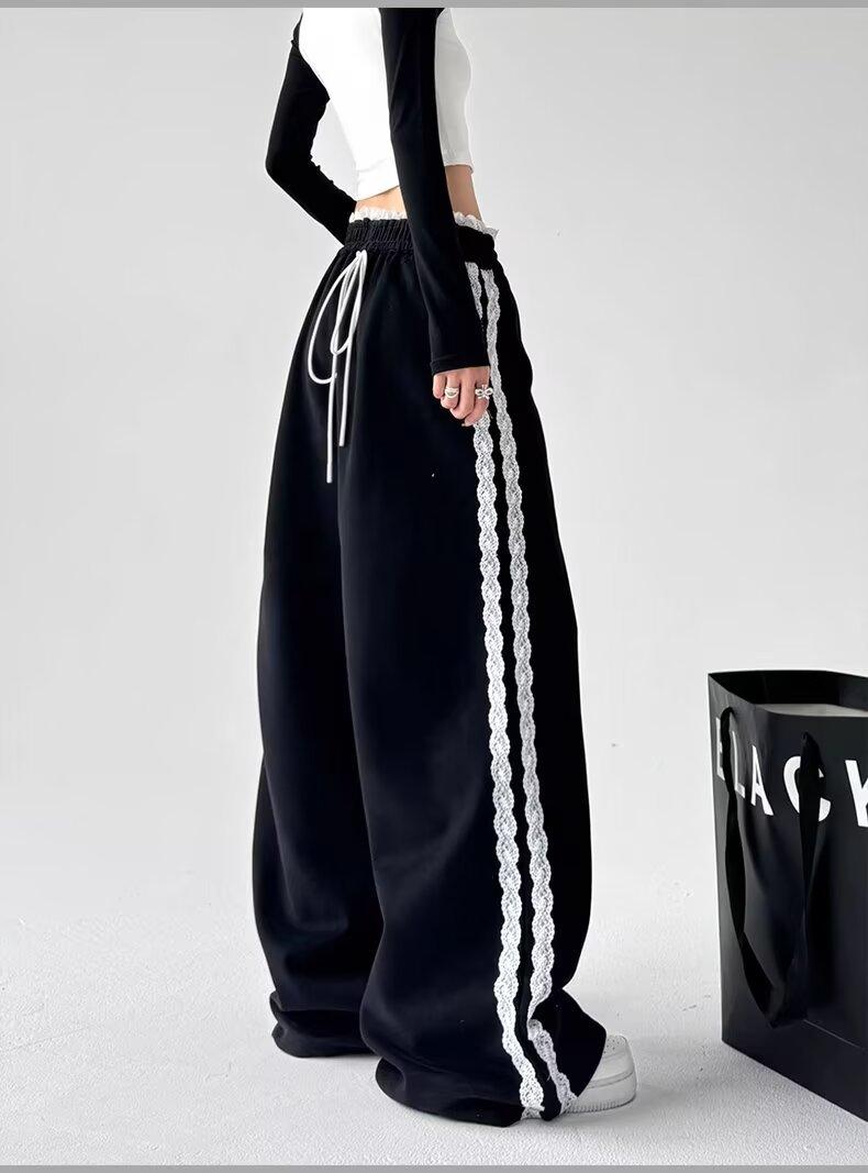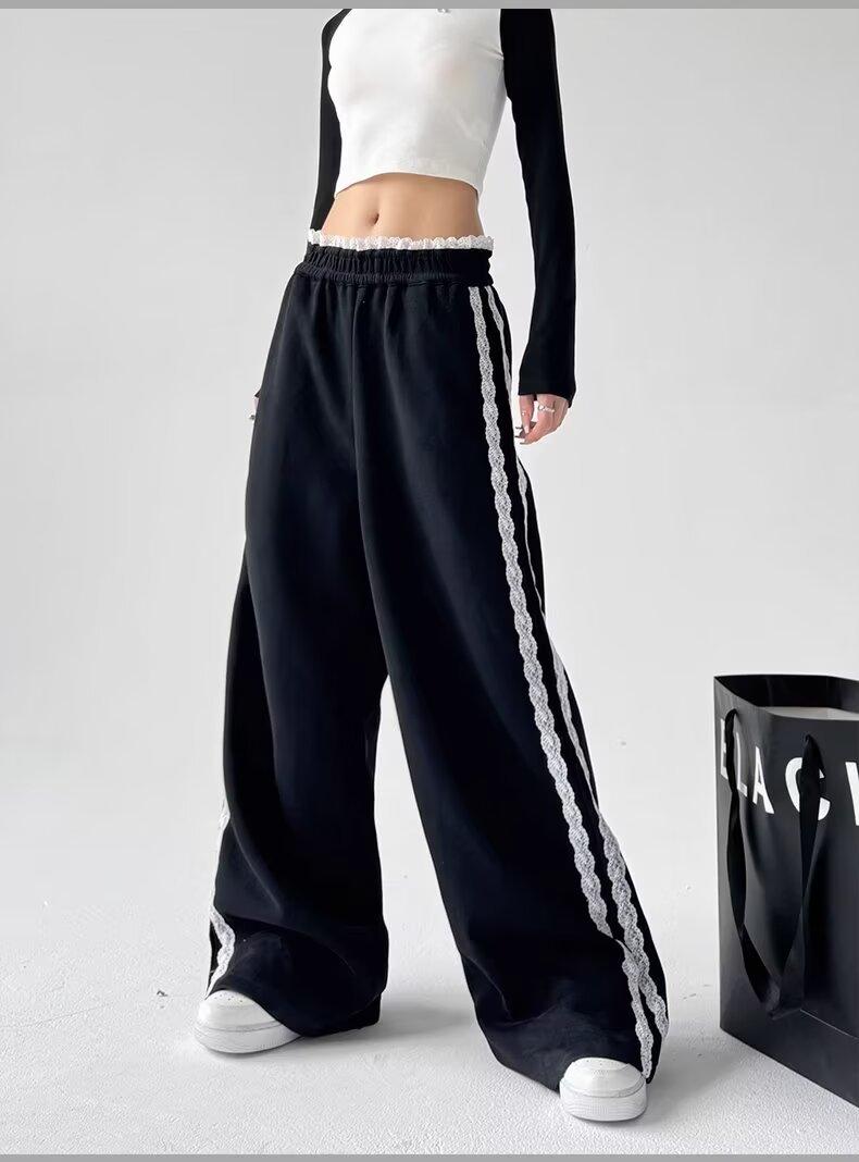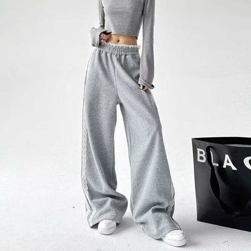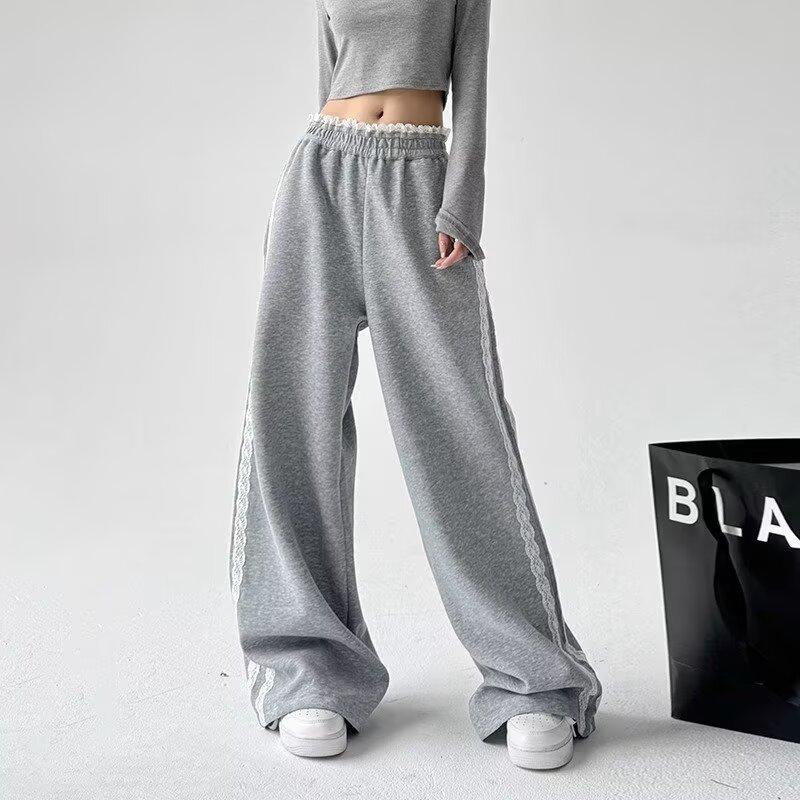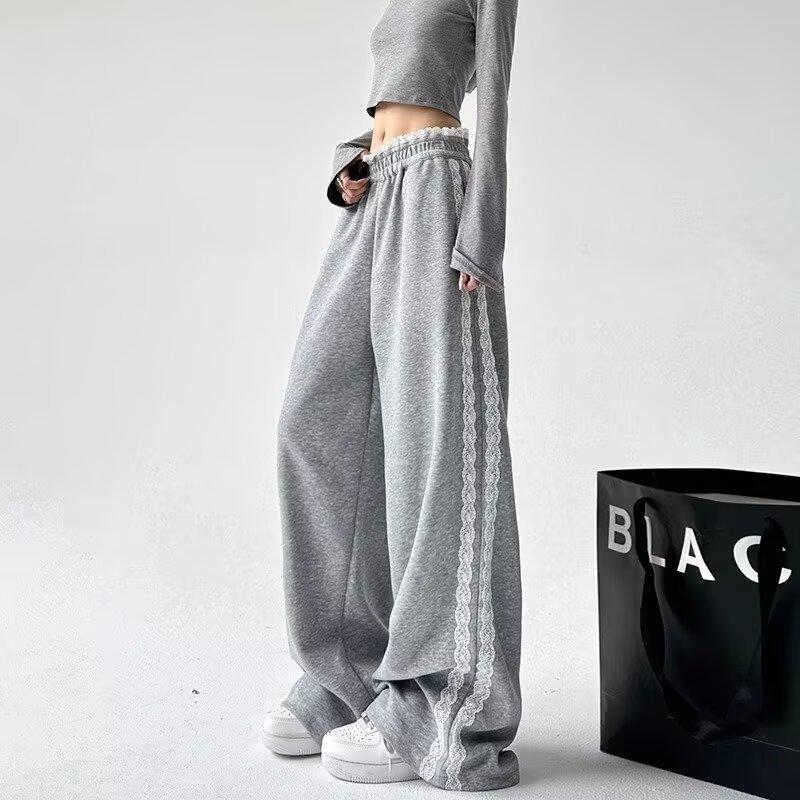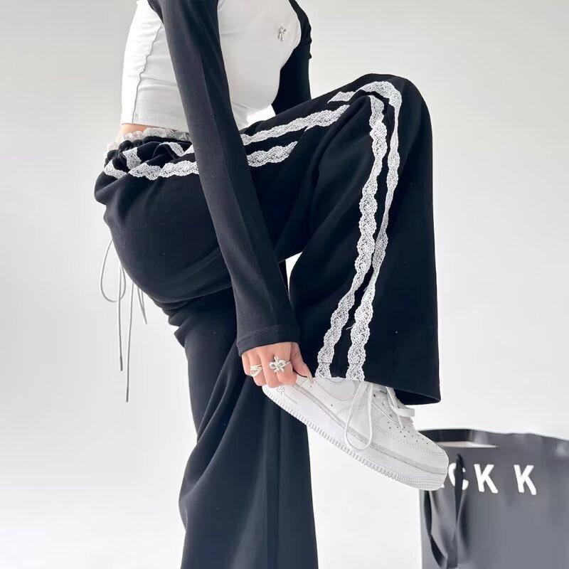 Pantalones deportivos de cintura alta con costuras de encaje, ajustados y pierna ancha, para mujer, otoño e invierno 2024