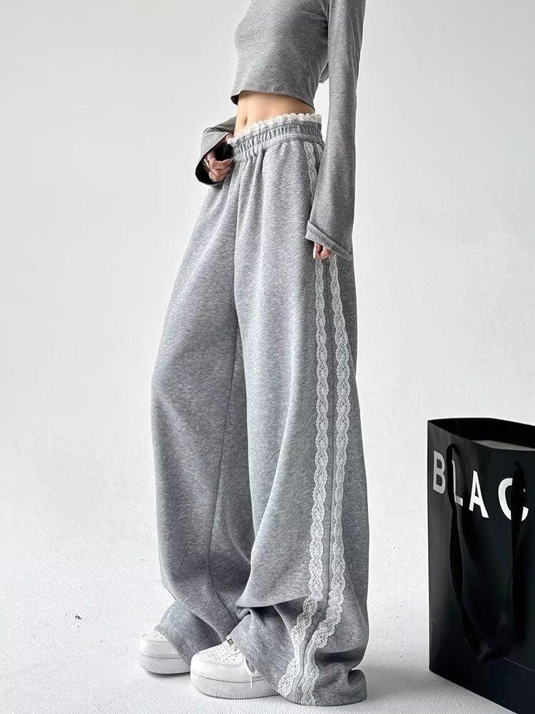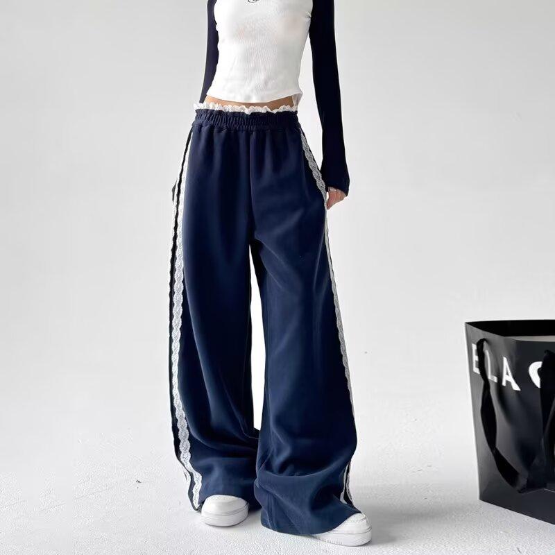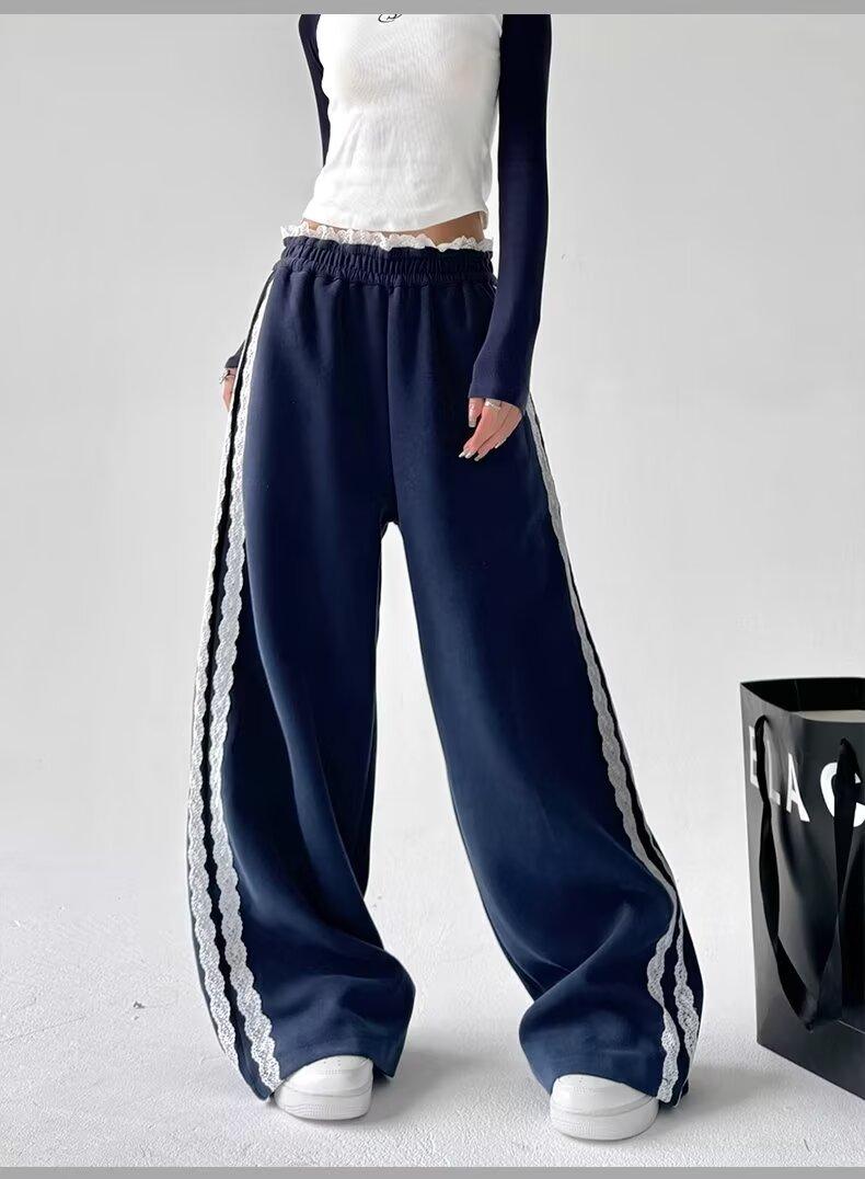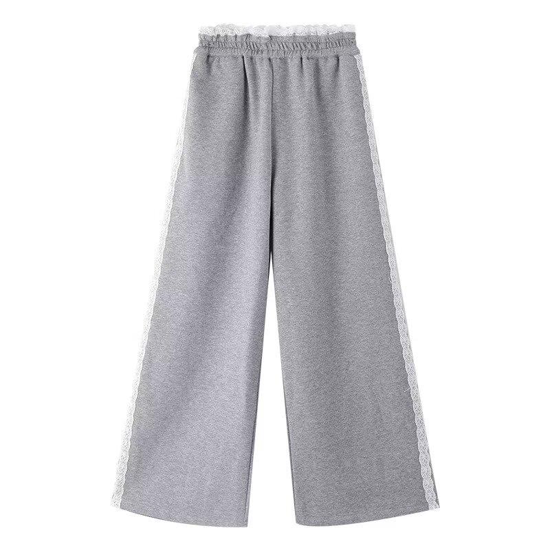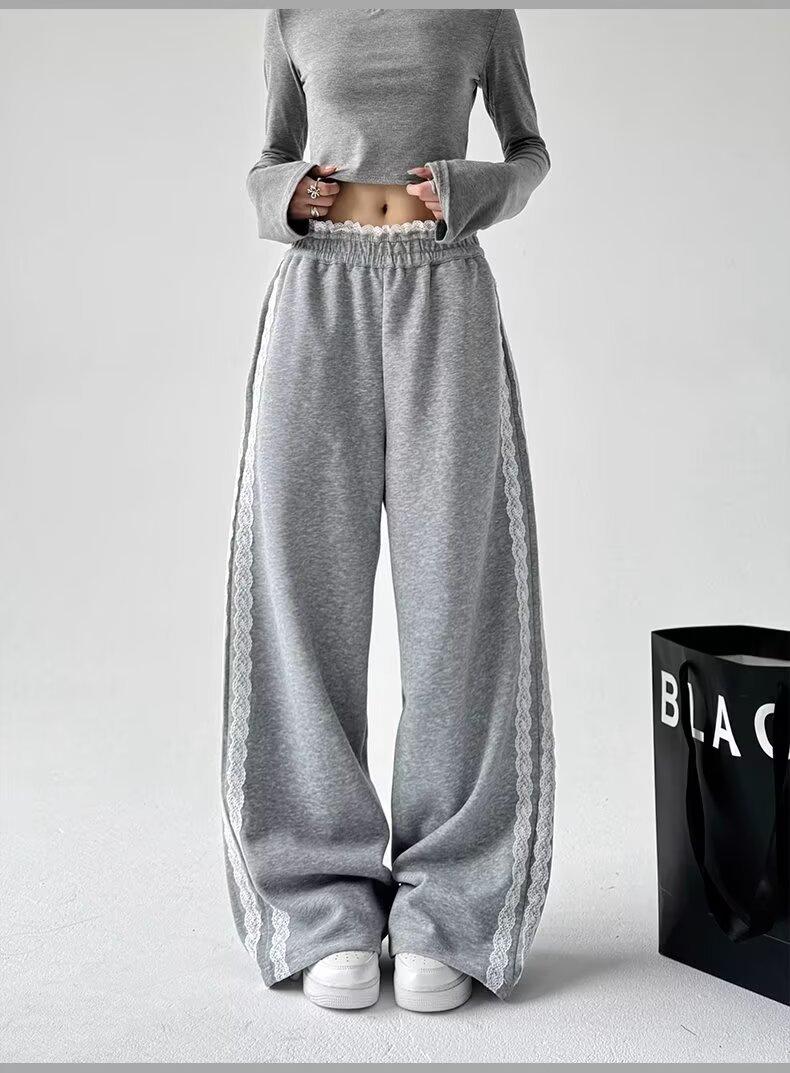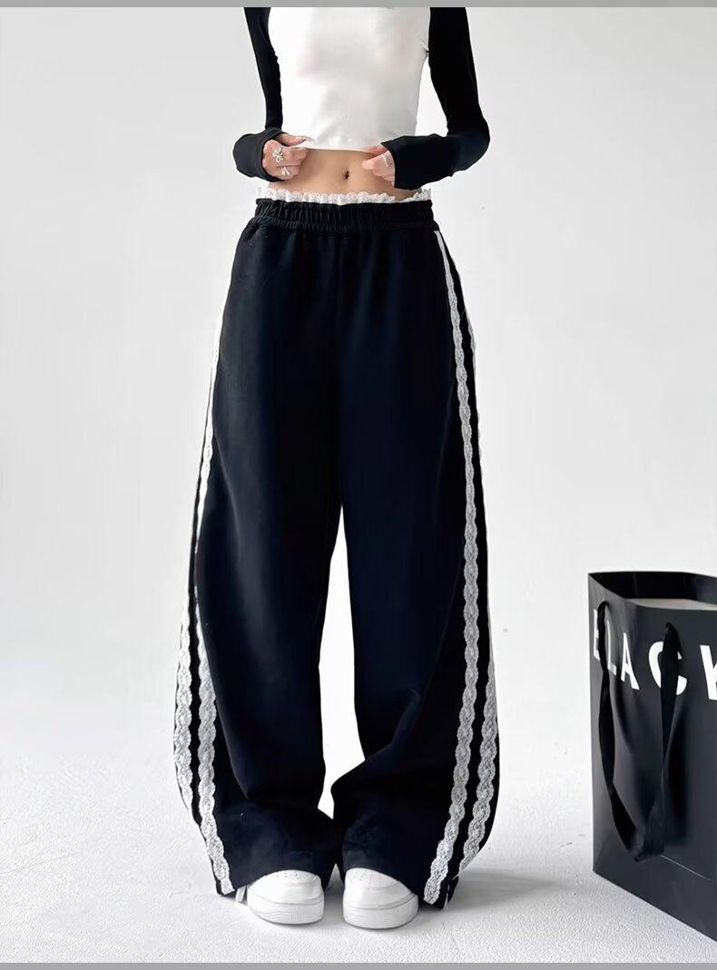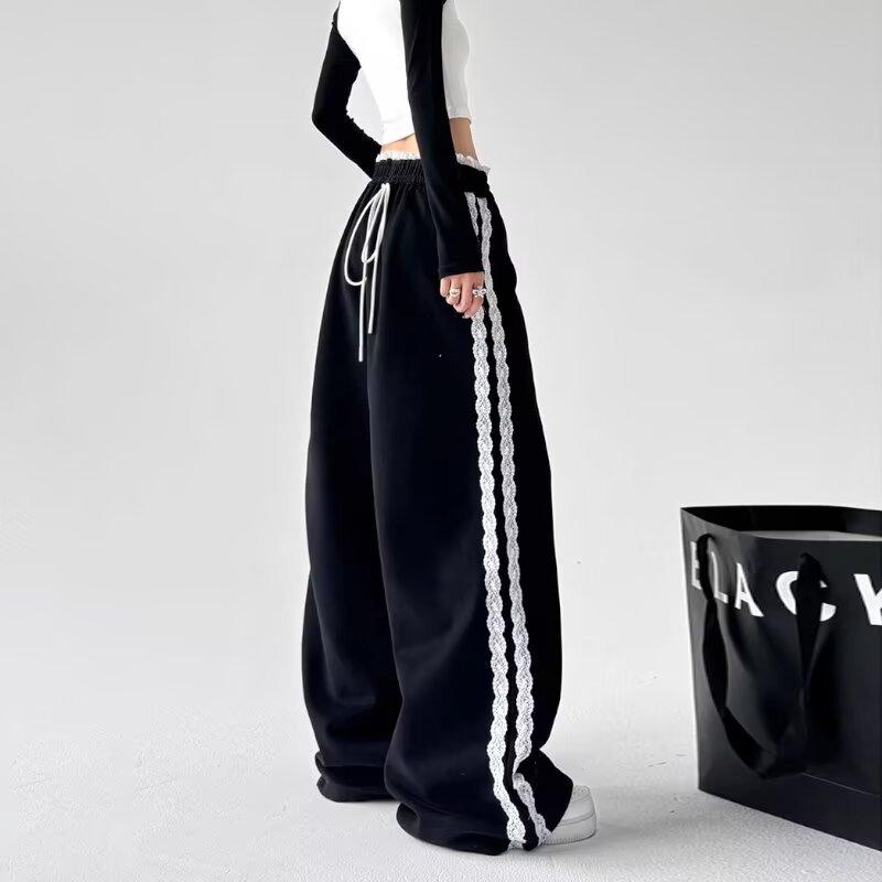Pantalones deportivos de cintura alta con costuras de encaje, ajustados y pierna ancha, para mujer, otoño e invierno 2024