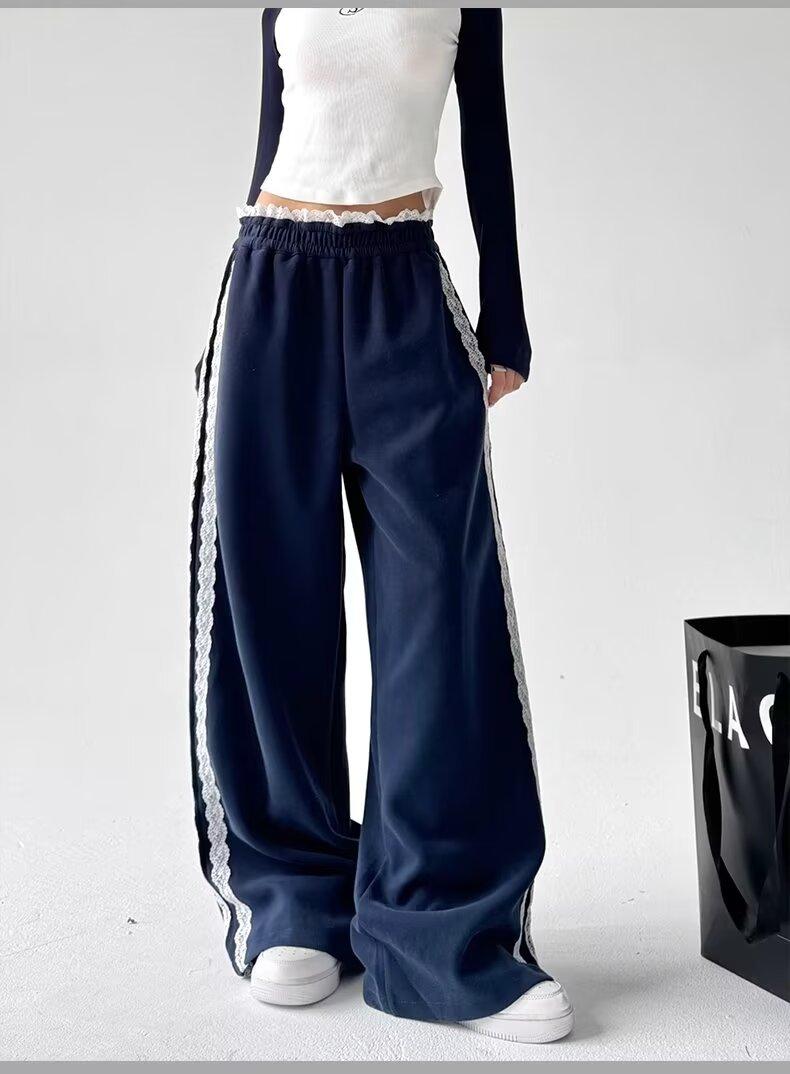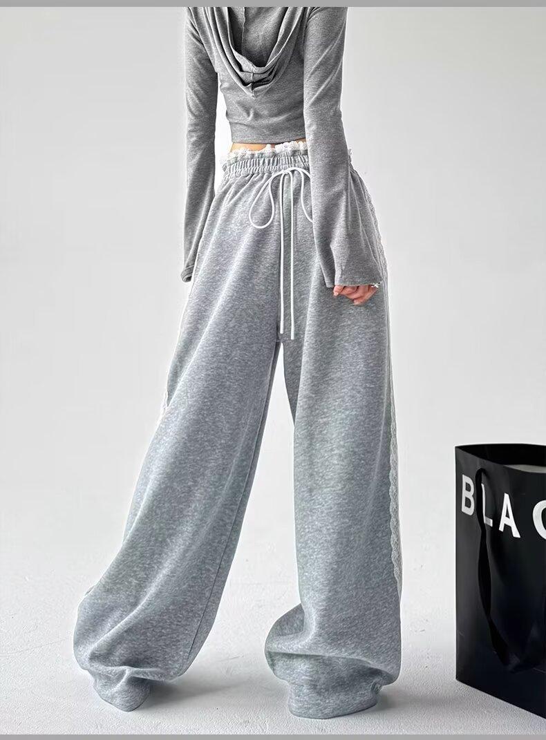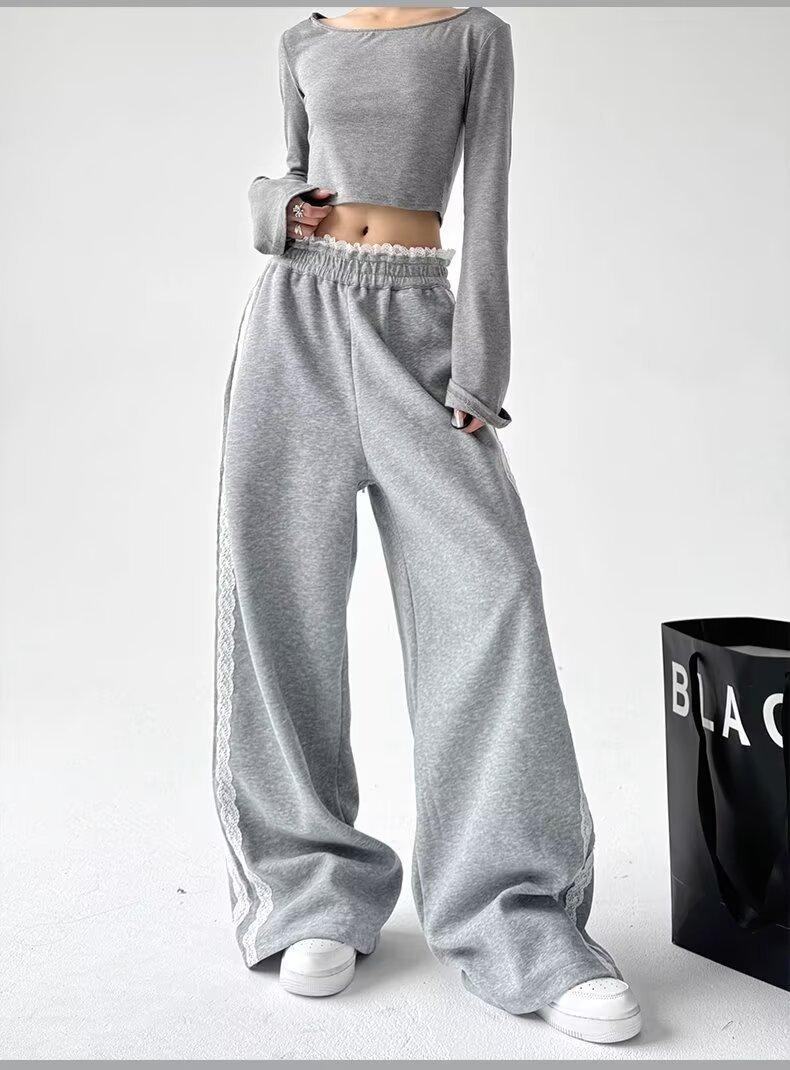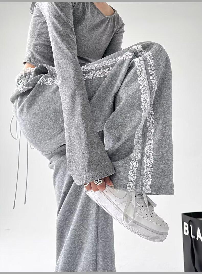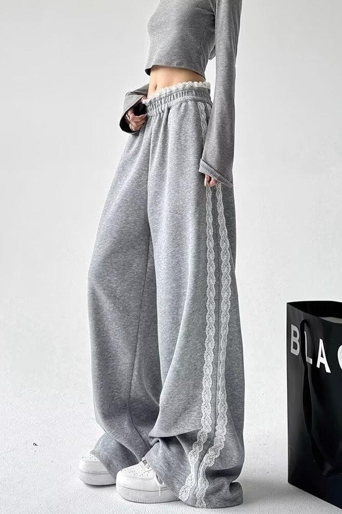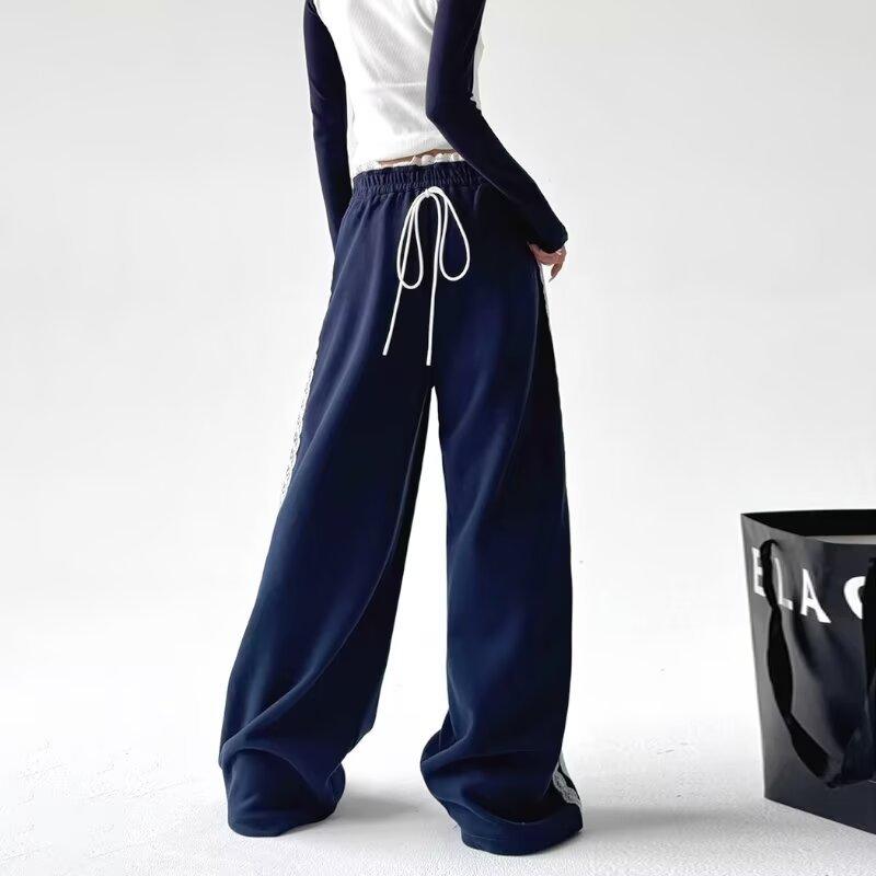 Pantalones deportivos de cintura alta con costuras de encaje, ajustados y pierna ancha, para mujer, otoño e invierno 2024