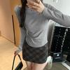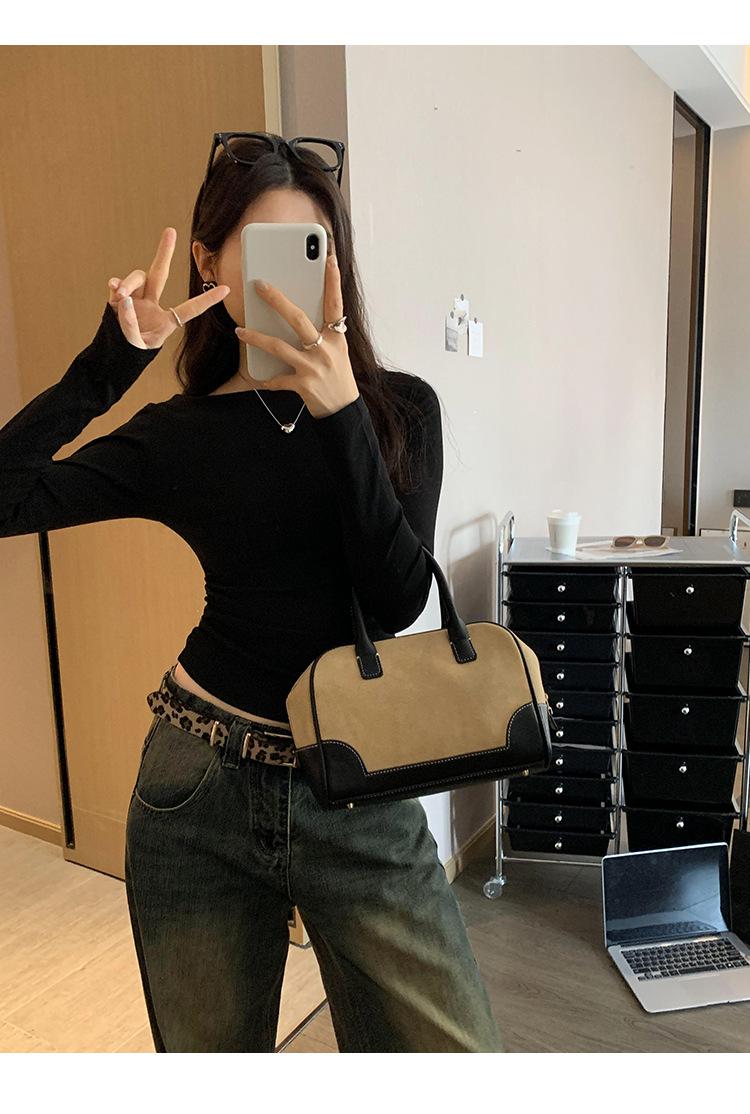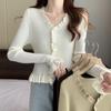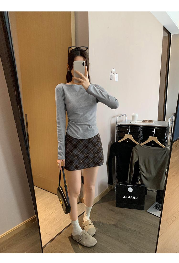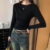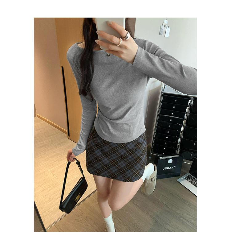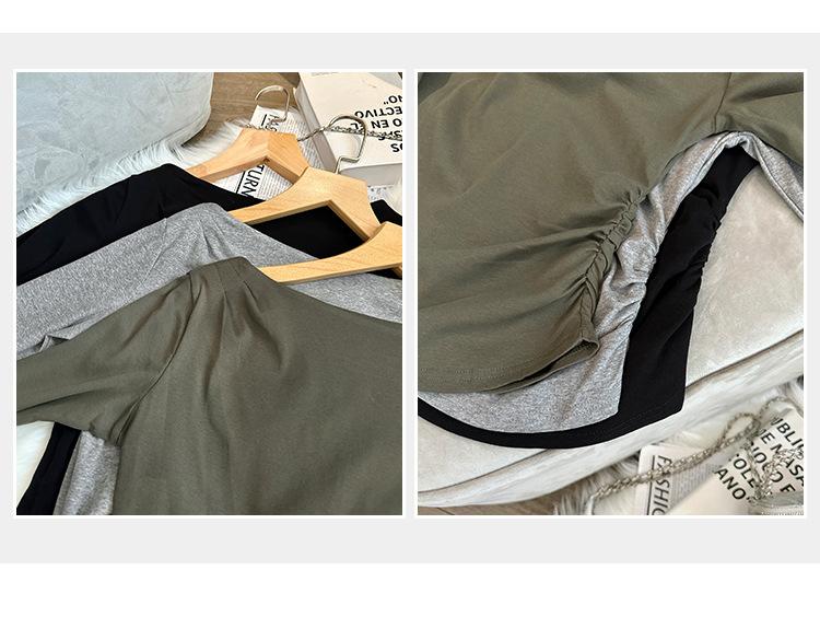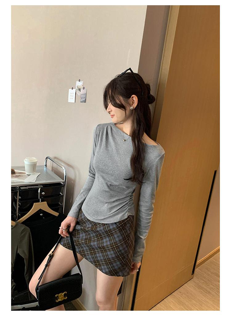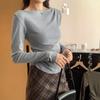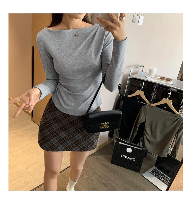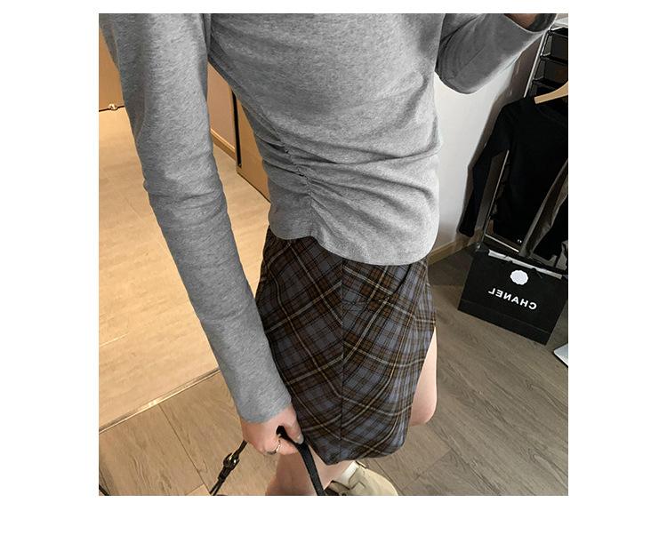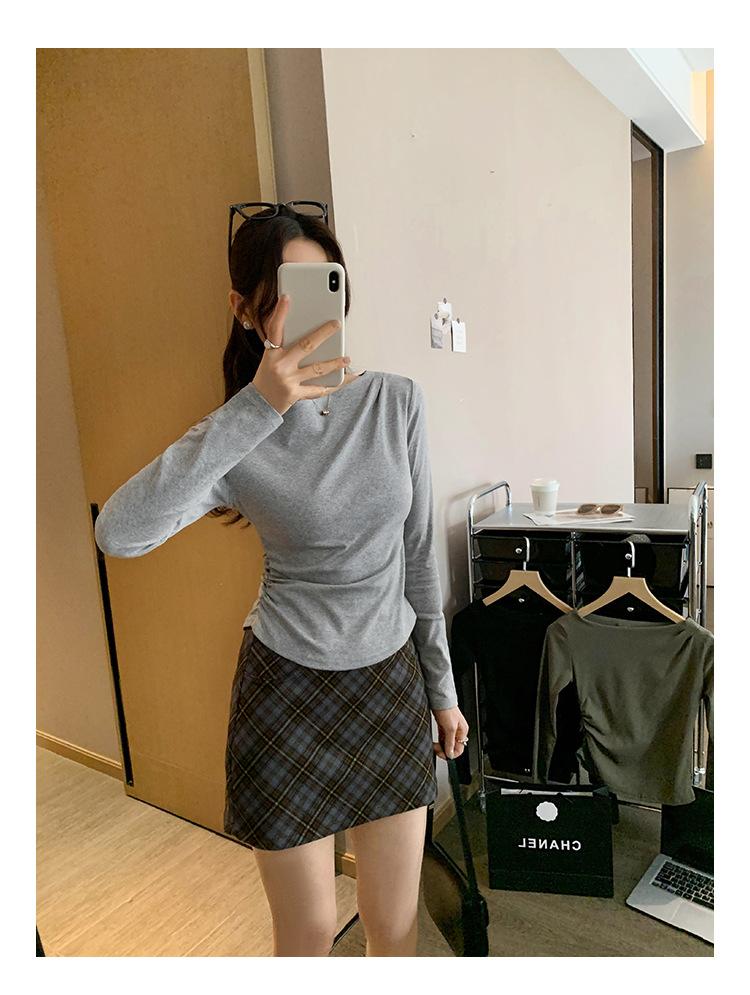 Imagen real de una hermosa y única camiseta de manga larga plisada con cintura ceñida para mujer, estilo Pure Desire, primavera 2025.