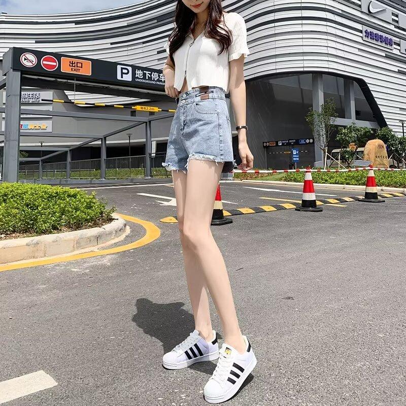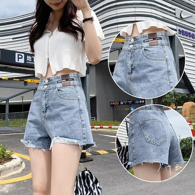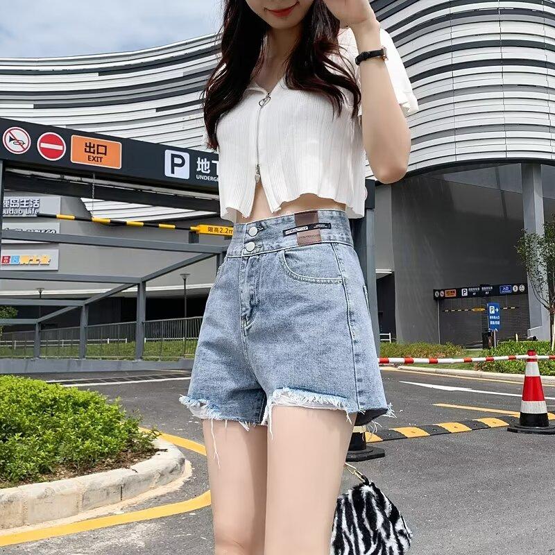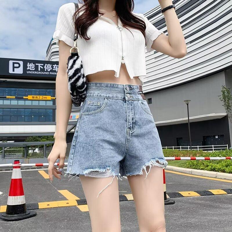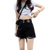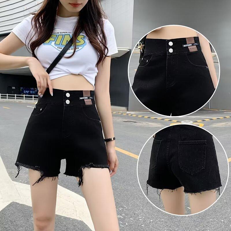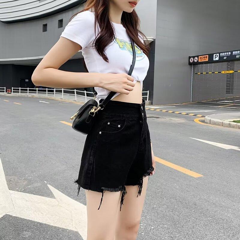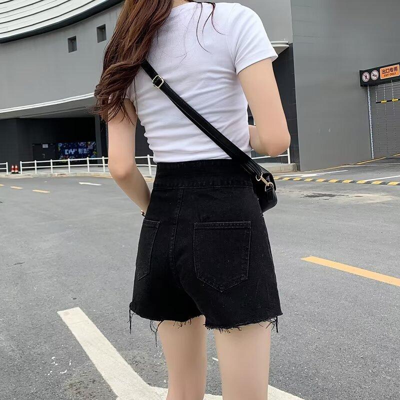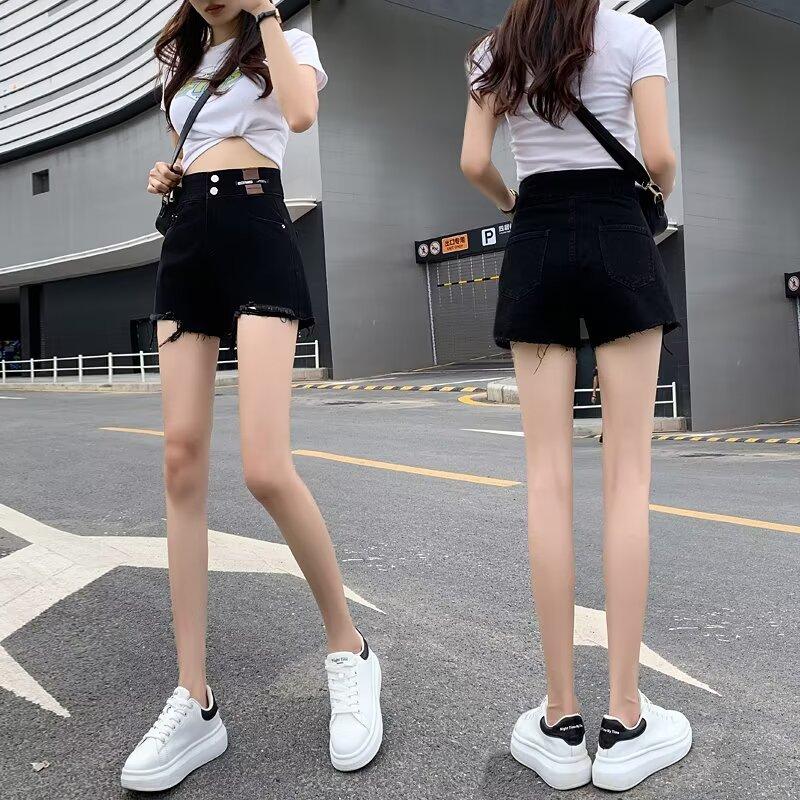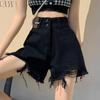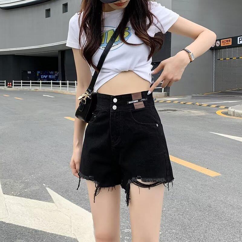 Shorts de mezclilla negros de pierna ancha en forma de A para mujer Verano 2024 Nuevo estilo Adelgazantes Rotos Ultracortos Hot Pants