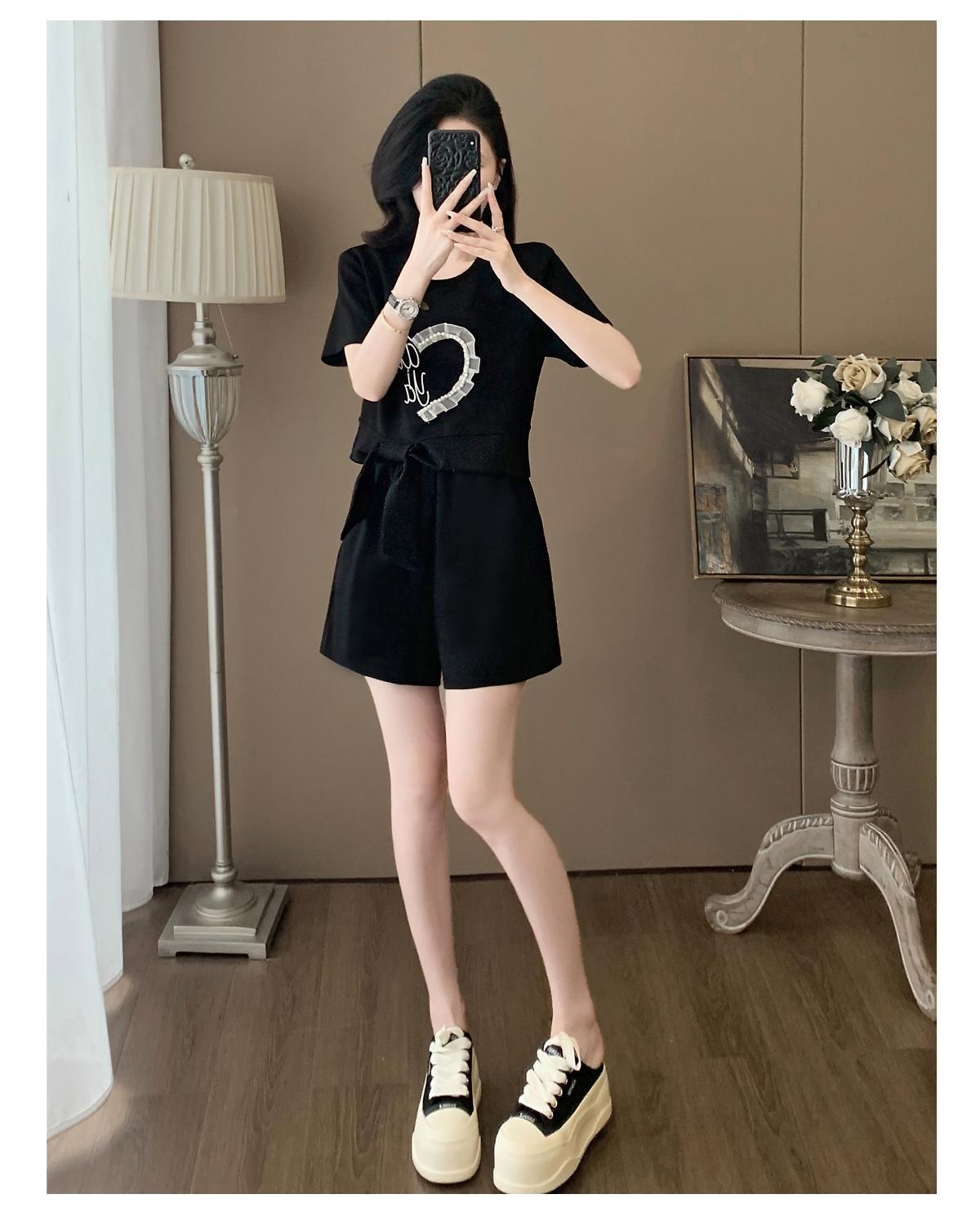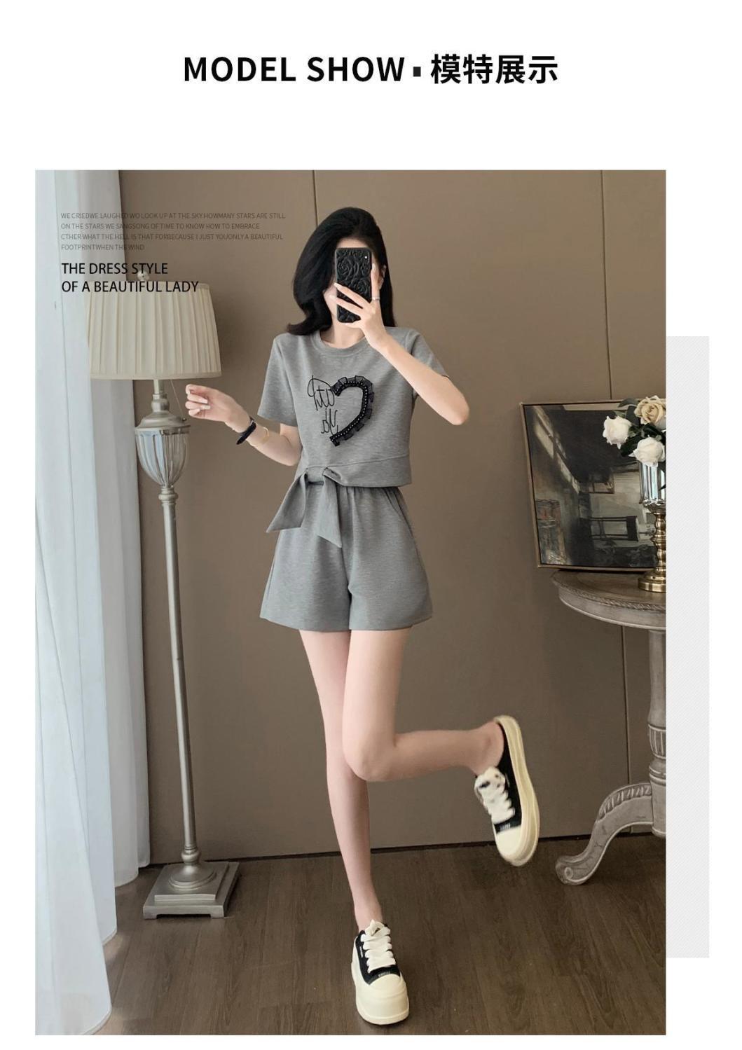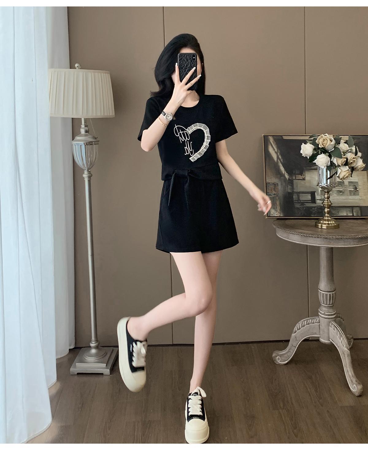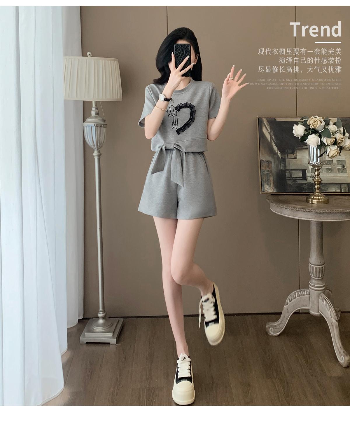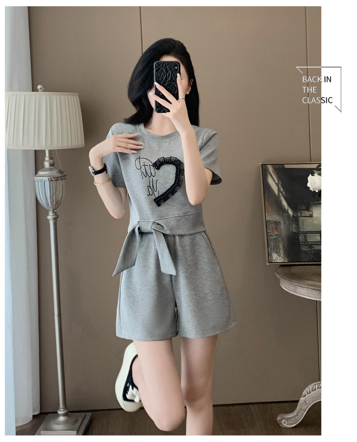 Traje Deportivo Casual de Verano para Mujer 2025 Nuevo Estilo Pequeño Moderno Reductor de Edad Shorts de Manga Corta Traje para Correr Conjunto de Dos Piezas