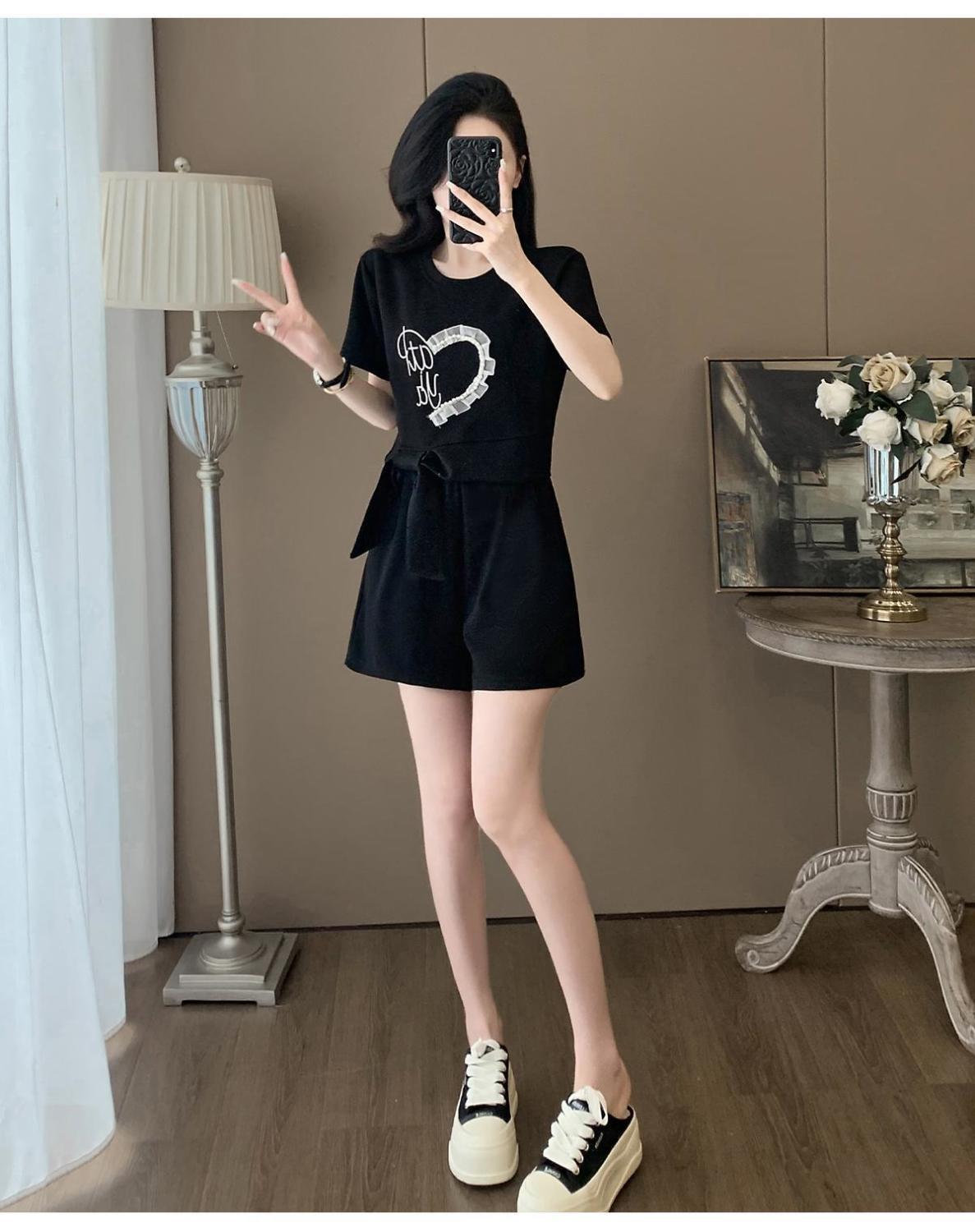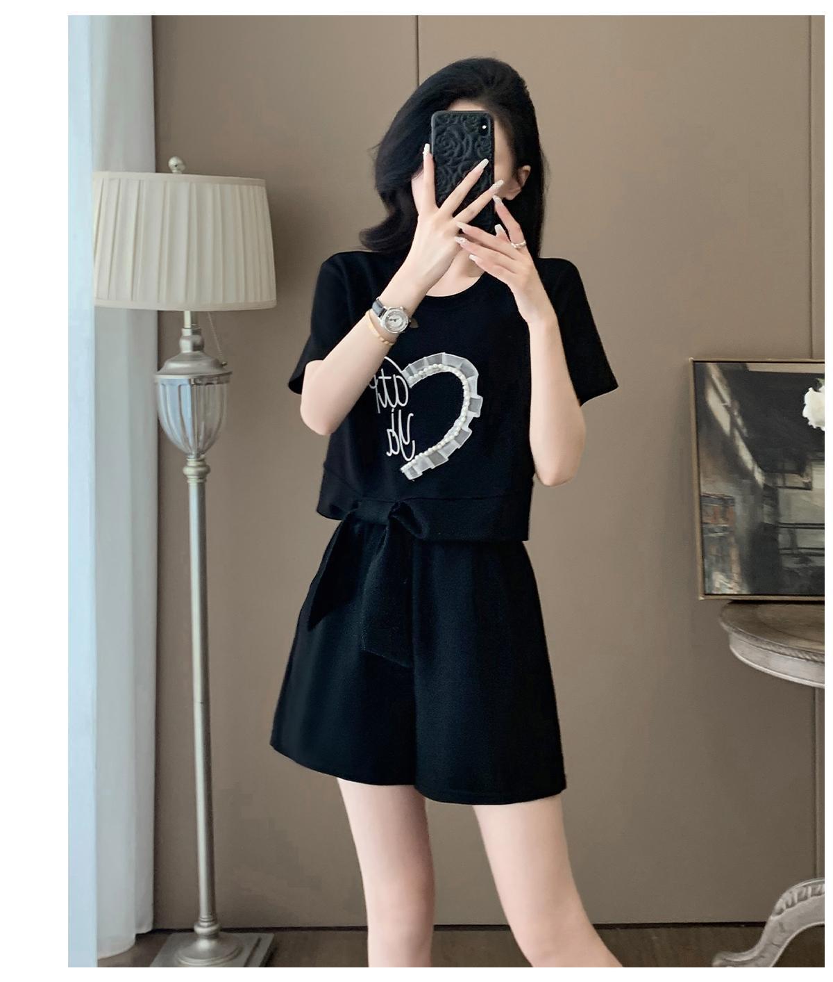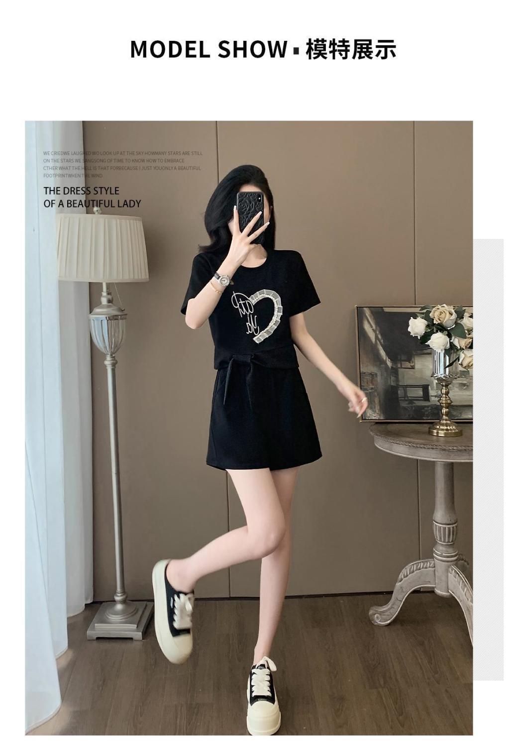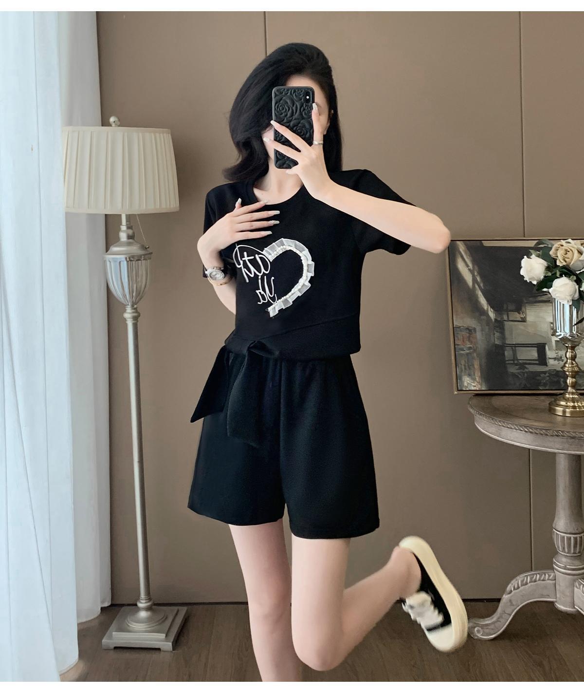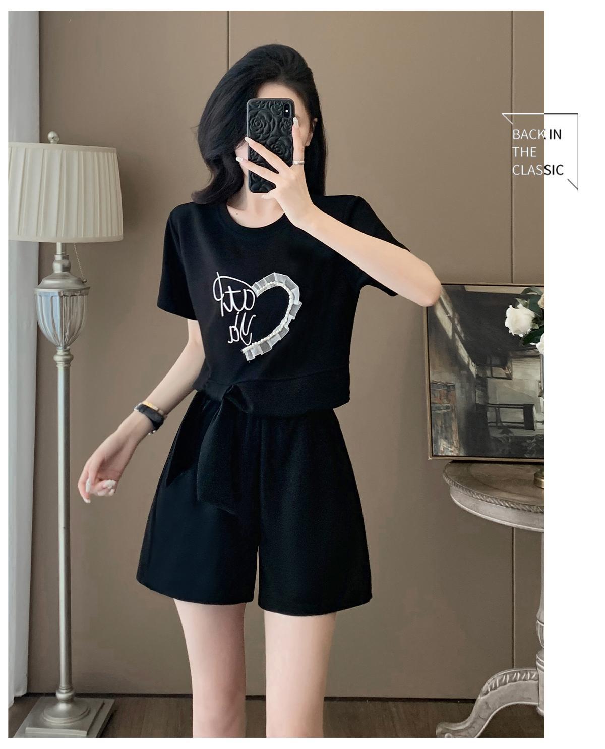 Traje Deportivo Casual de Verano para Mujer 2025 Nuevo Estilo Pequeño Moderno Reductor de Edad Shorts de Manga Corta Traje para Correr Conjunto de Dos Piezas