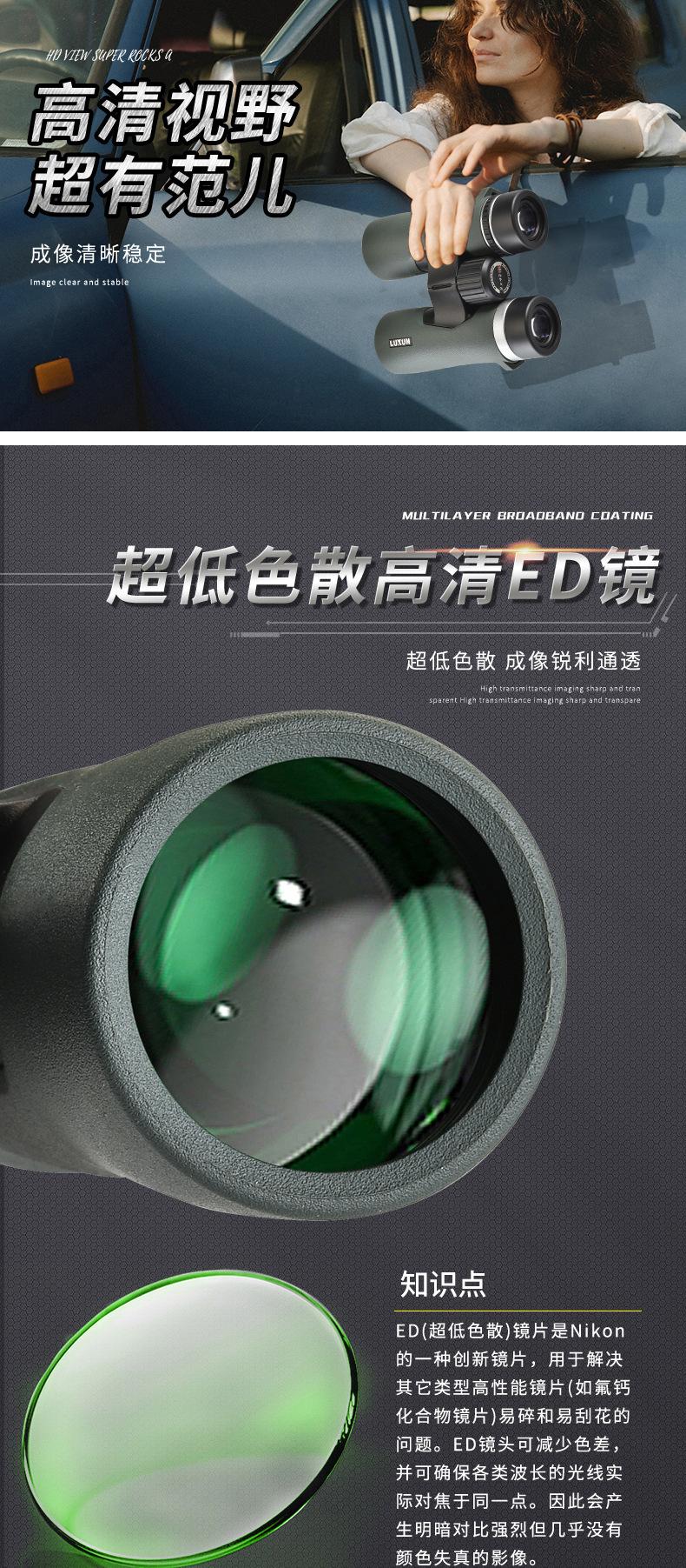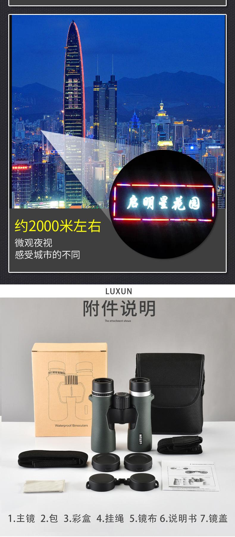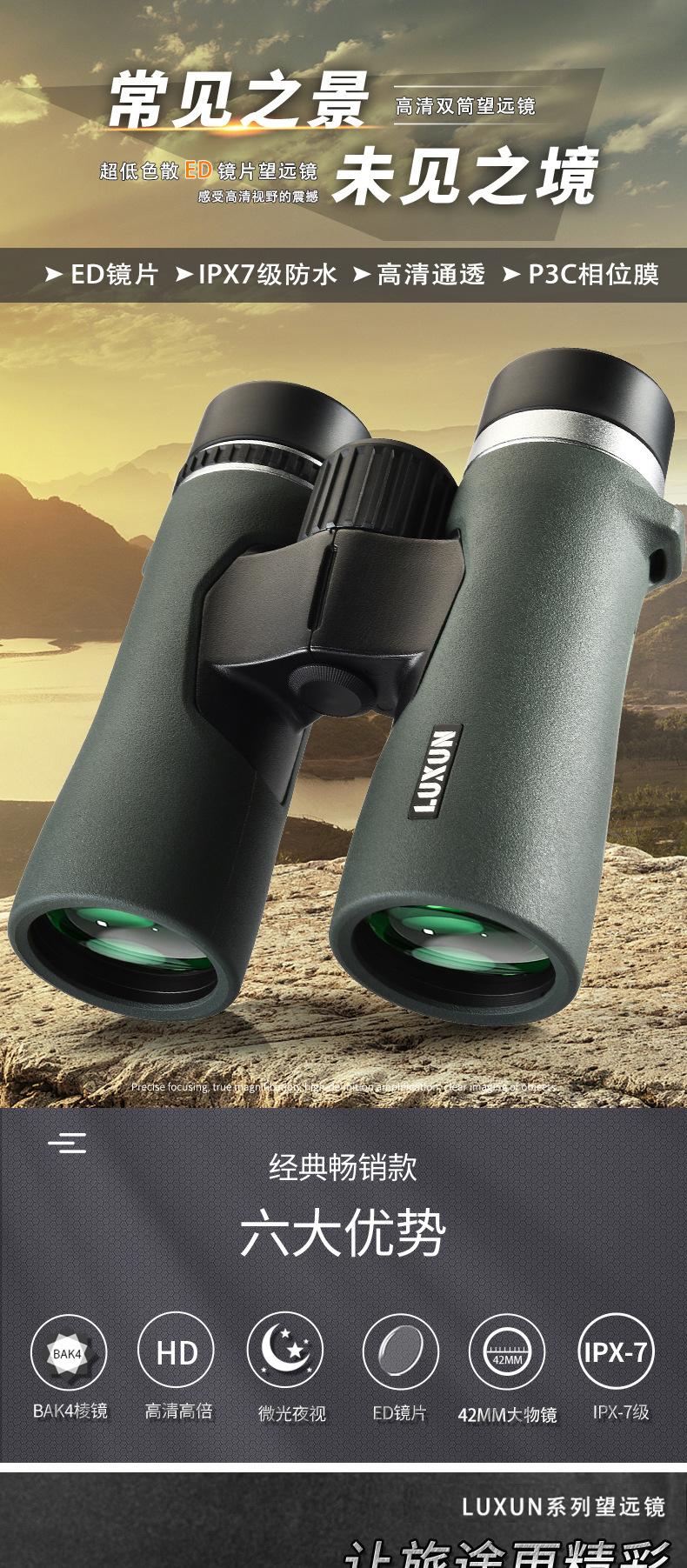 Binoculares Ed Nuevos Transfronterizos de Alta Potencia Alta Definición Visión Nocturna con Poca Luz Rellenos de Nitrógeno Impermeables Ipx8 Marco Metálico de Ocular Grande