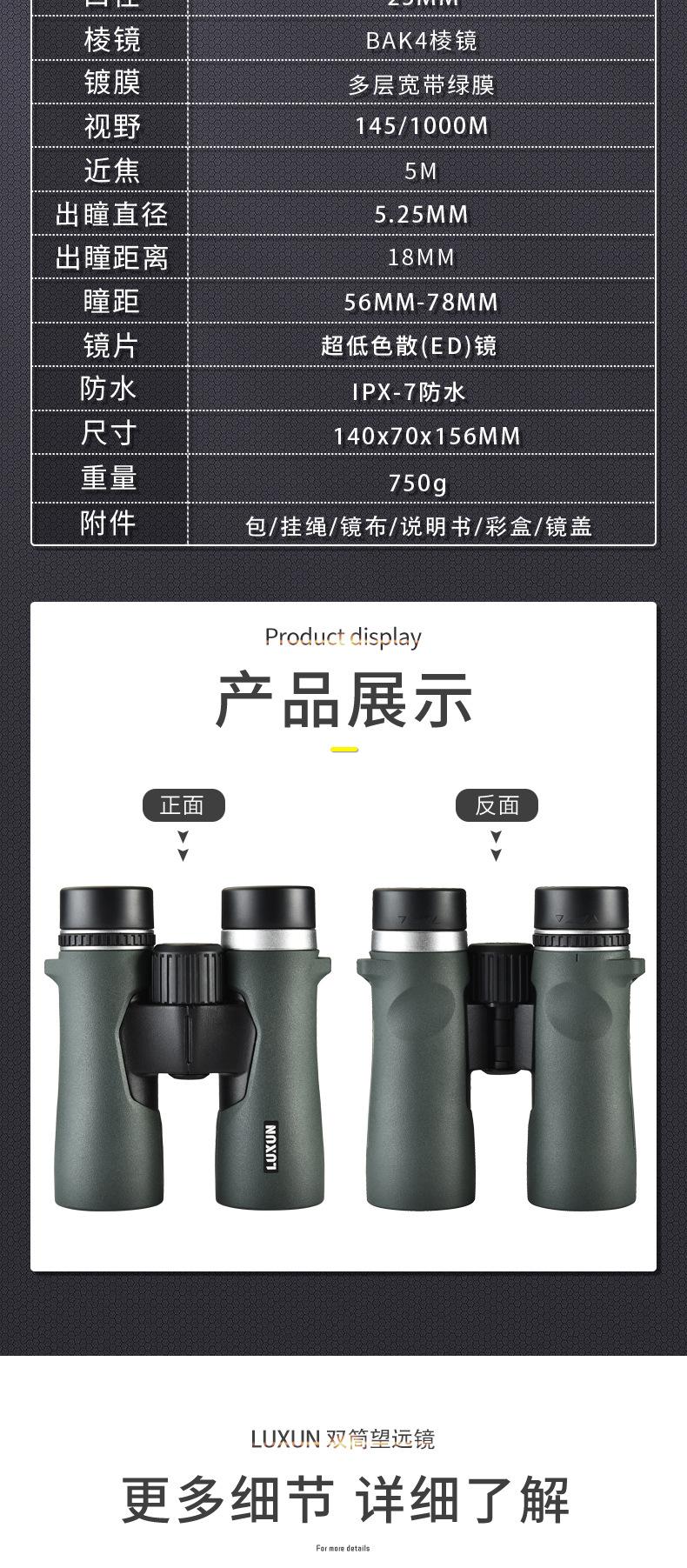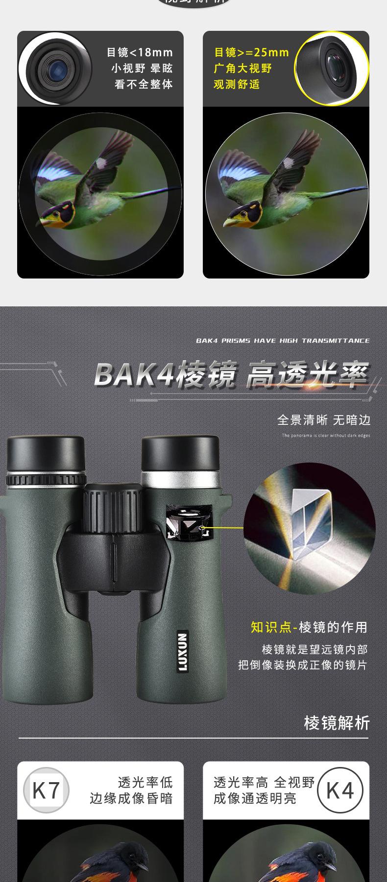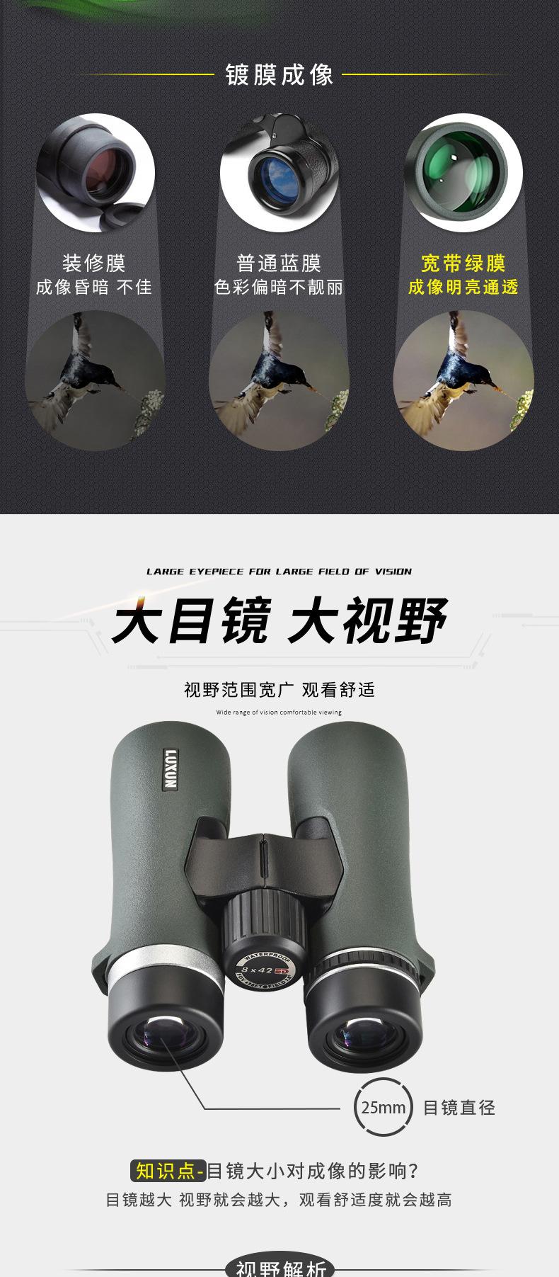 Binoculares Ed Nuevos Transfronterizos de Alta Potencia Alta Definición Visión Nocturna con Poca Luz Rellenos de Nitrógeno Impermeables Ipx8 Marco Metálico de Ocular Grande