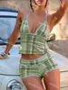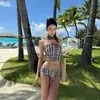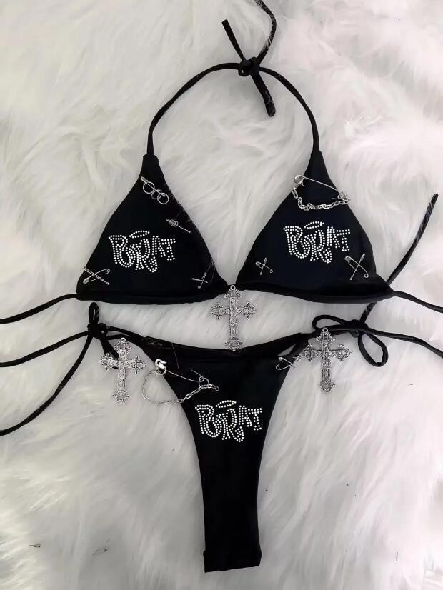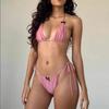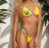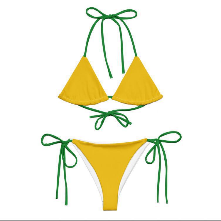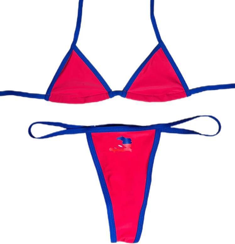 Traje de baño retro americano de chica sexy nuevo de color contrastante al por mayor bikini de dos piezas para vacaciones junto al mar estilo de tirantes dividido