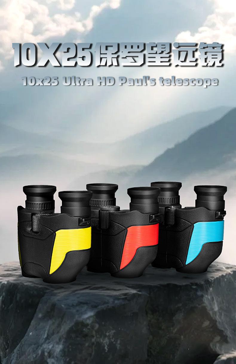 Binoculares Paul 10x25 más vendidos transfronterizos para exteriores de alta definición y alta potencia, mini telescopio portátil colorido