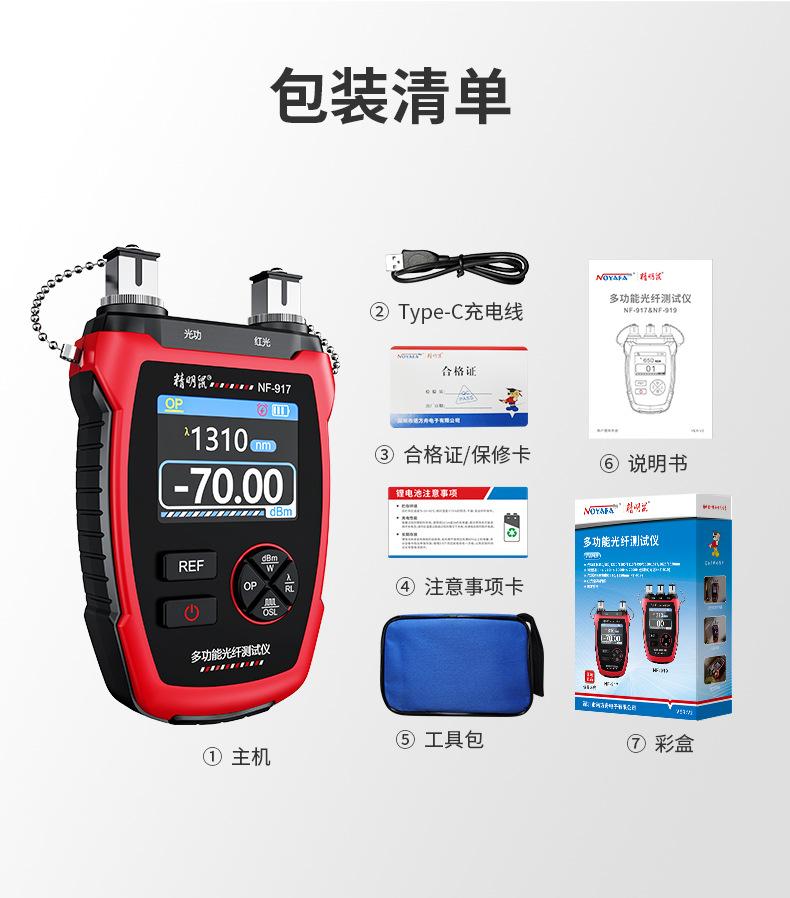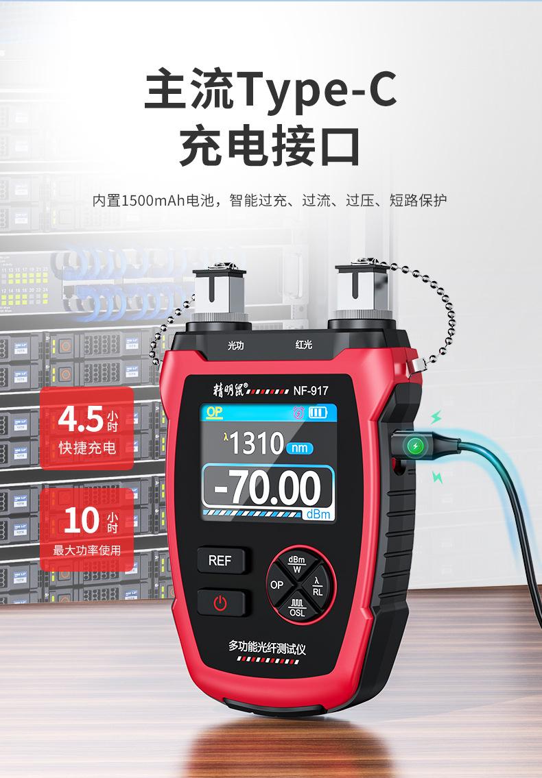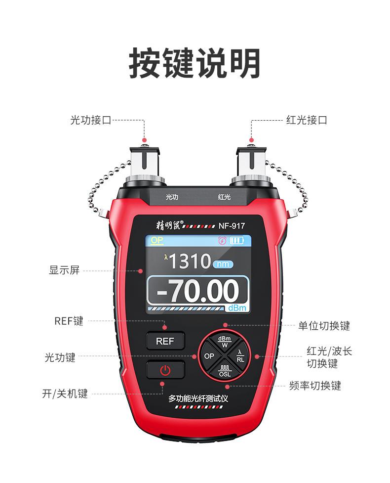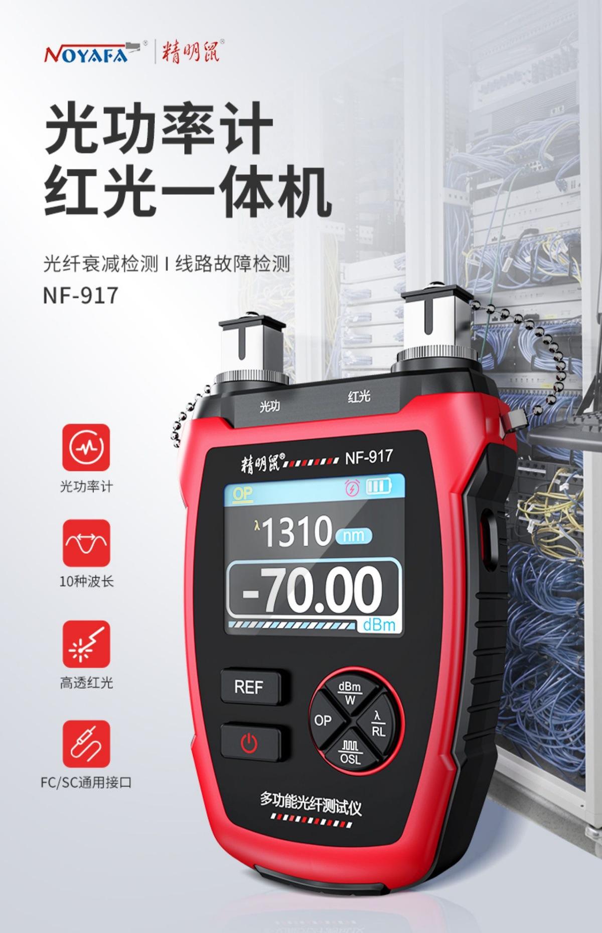 Medidor de Potencia Óptica Smart Mouse Nf-917 10 Longitudes de Onda Luz Roja Todo en Uno Detector de Cable de Red Probador de Red Alta Precisión