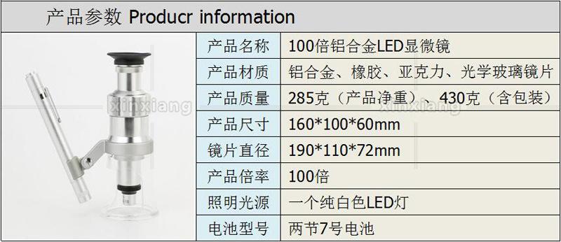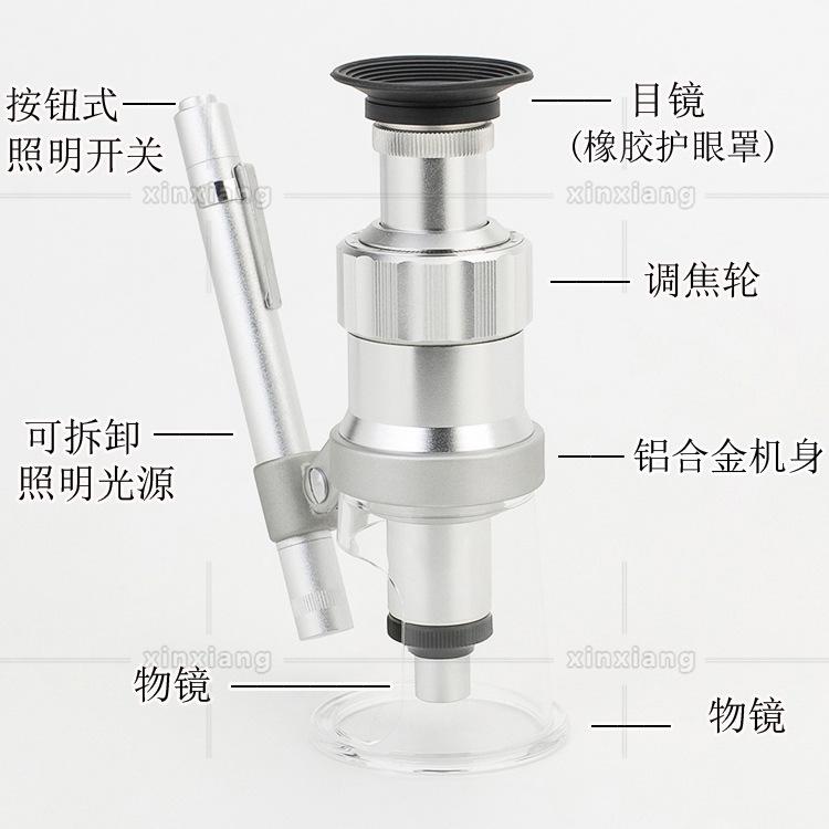 País de exportación comercio exterior de escritorio fuente de luz LED lupa de alta potencia con escala todo metal microscopio 2035-100 veces