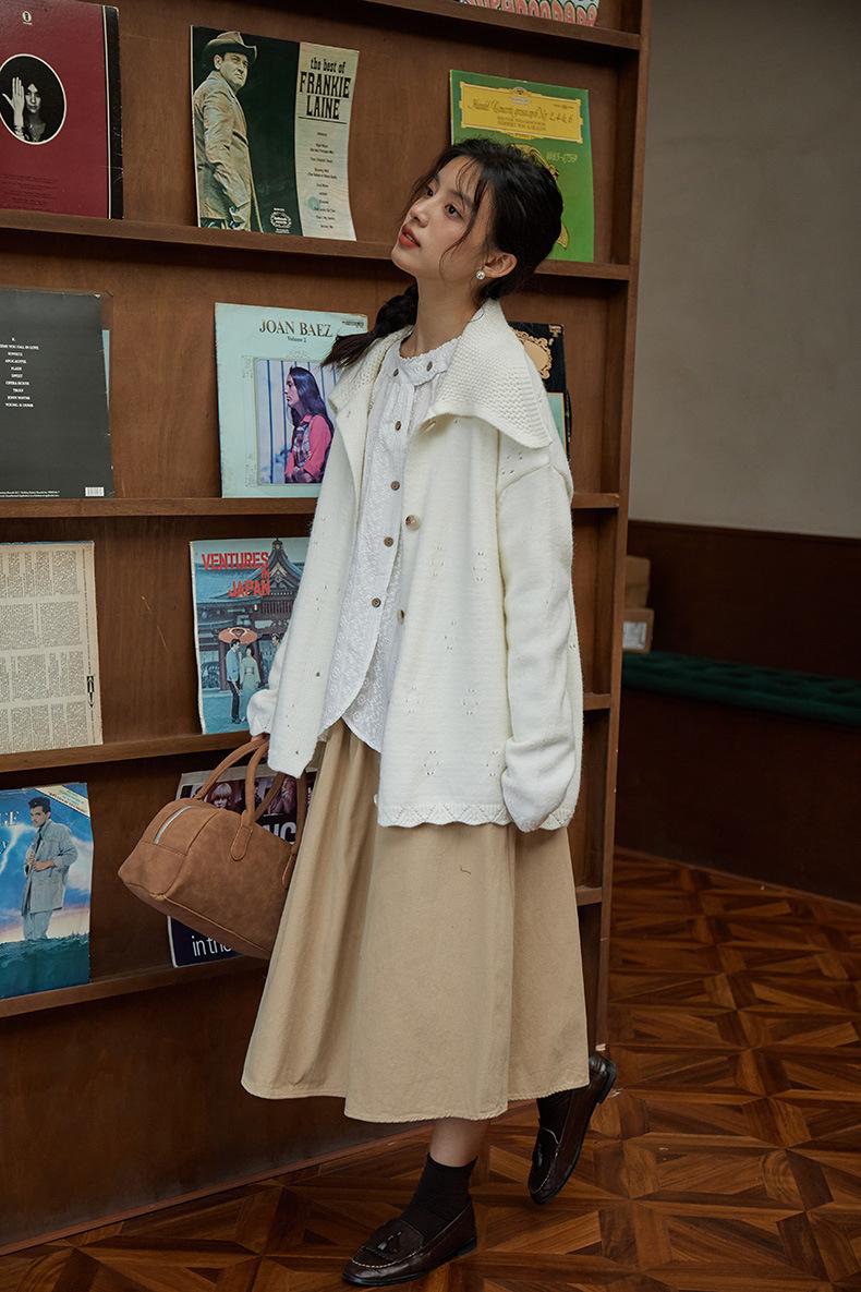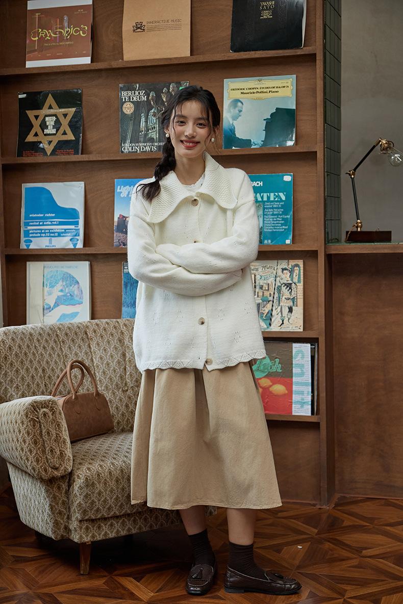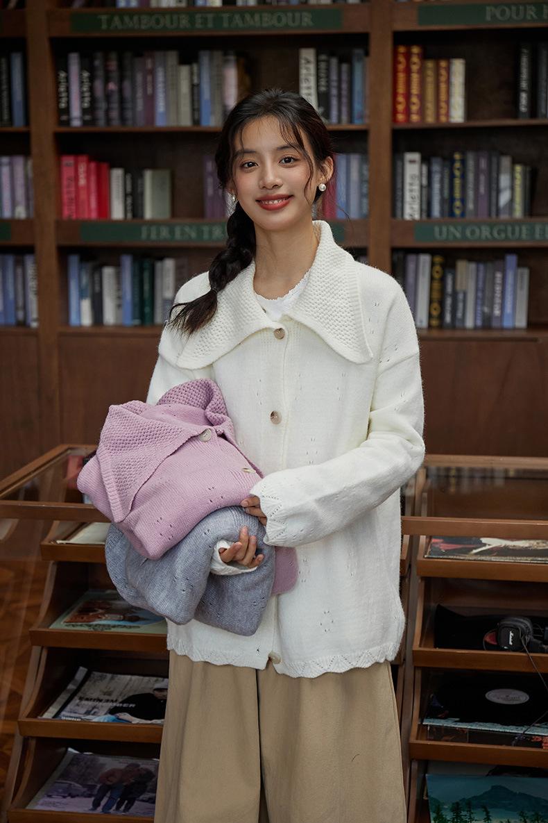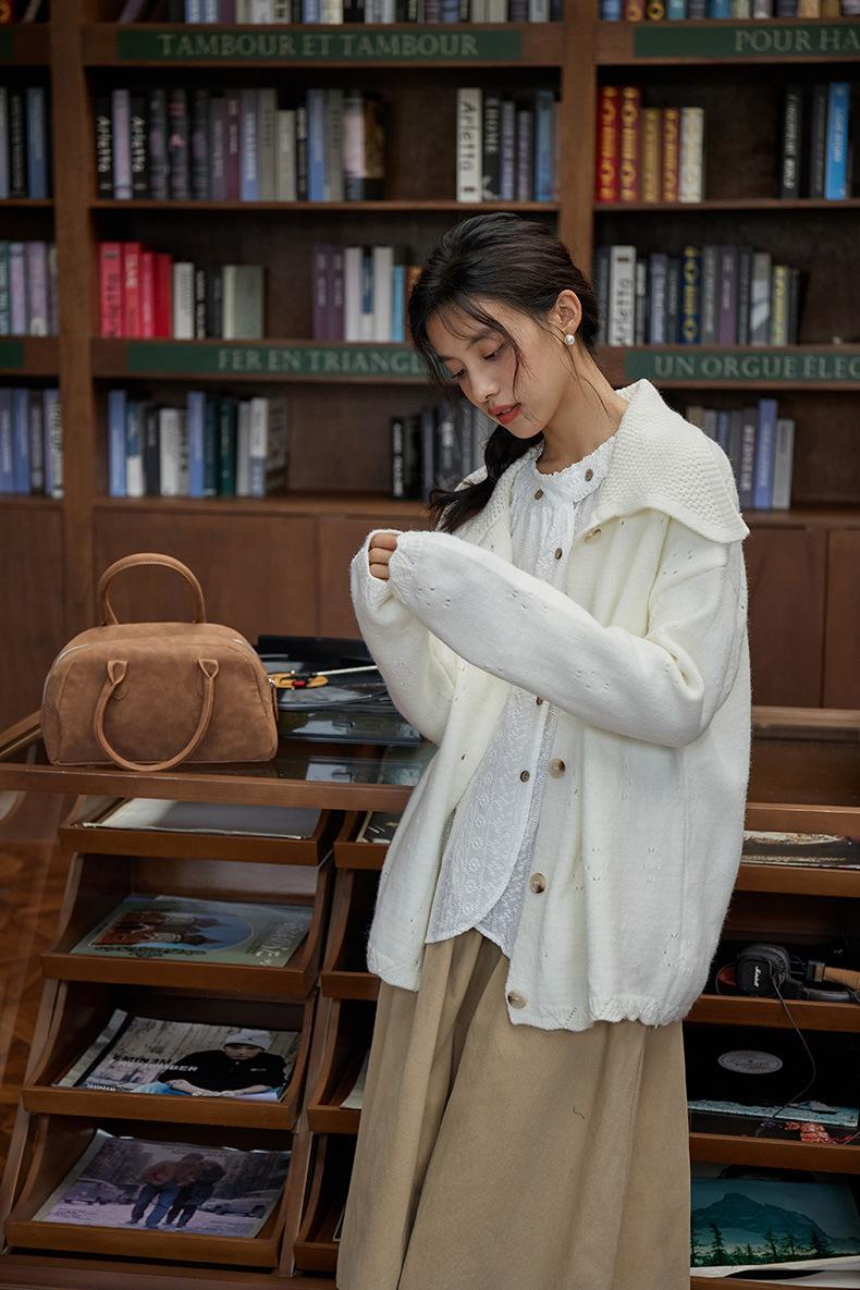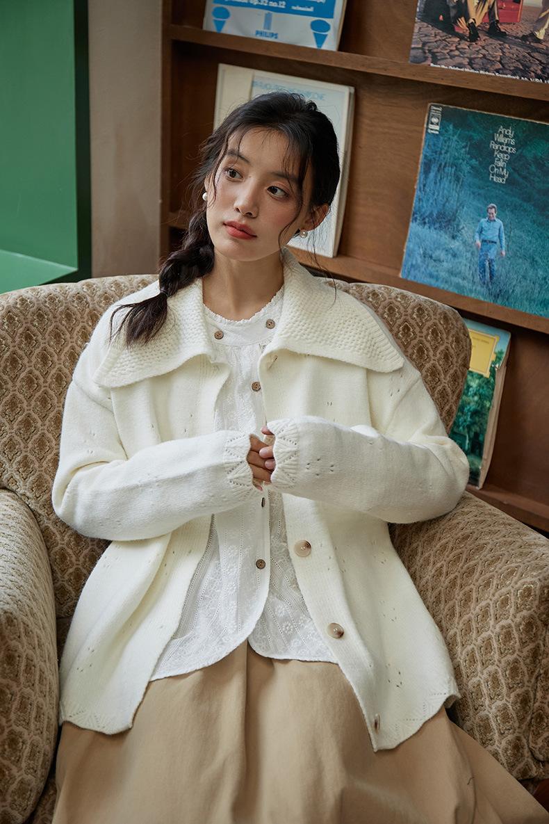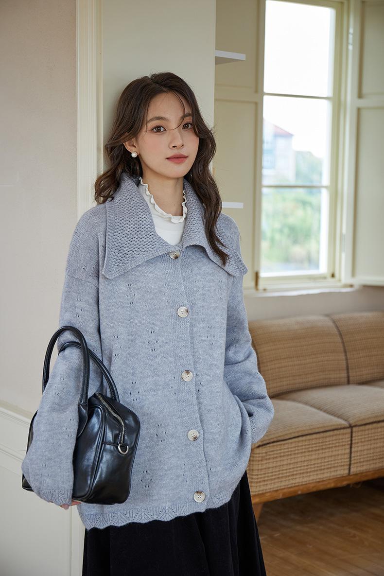 Nuevo Cárdigan de Punto Estilo Japonés Holgado Estilo Perezoso con Diseño Calado Otoño Invierno 2024 Suéter para Mujer Suave y Ceroso