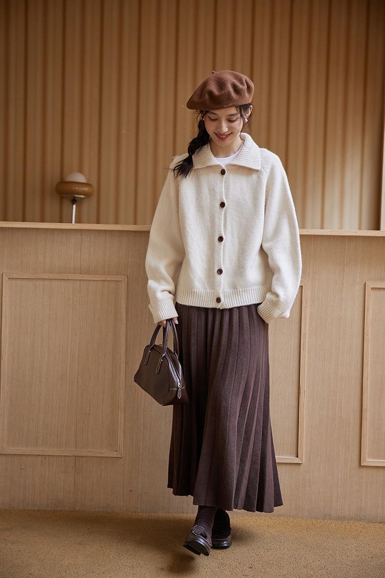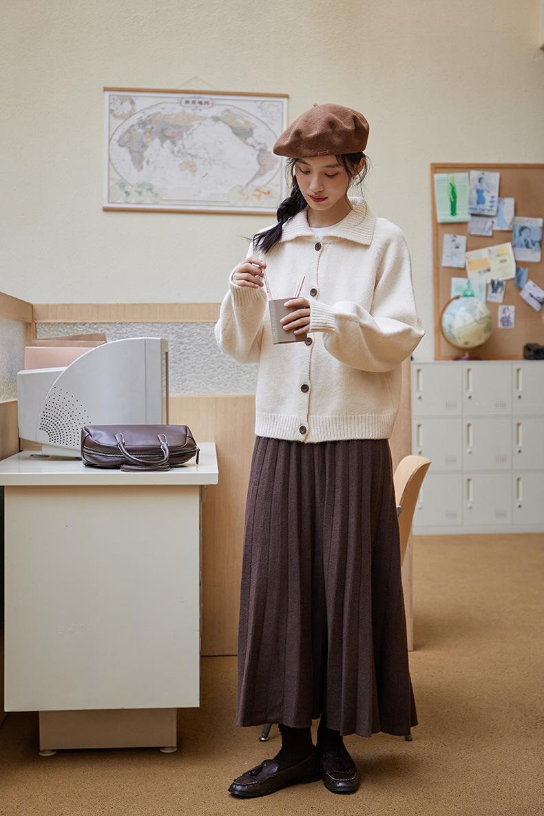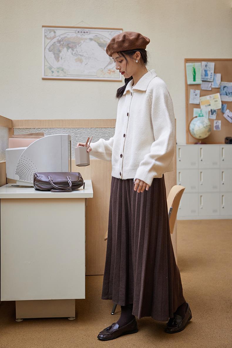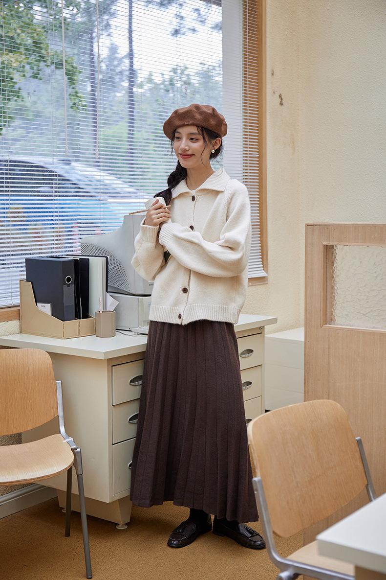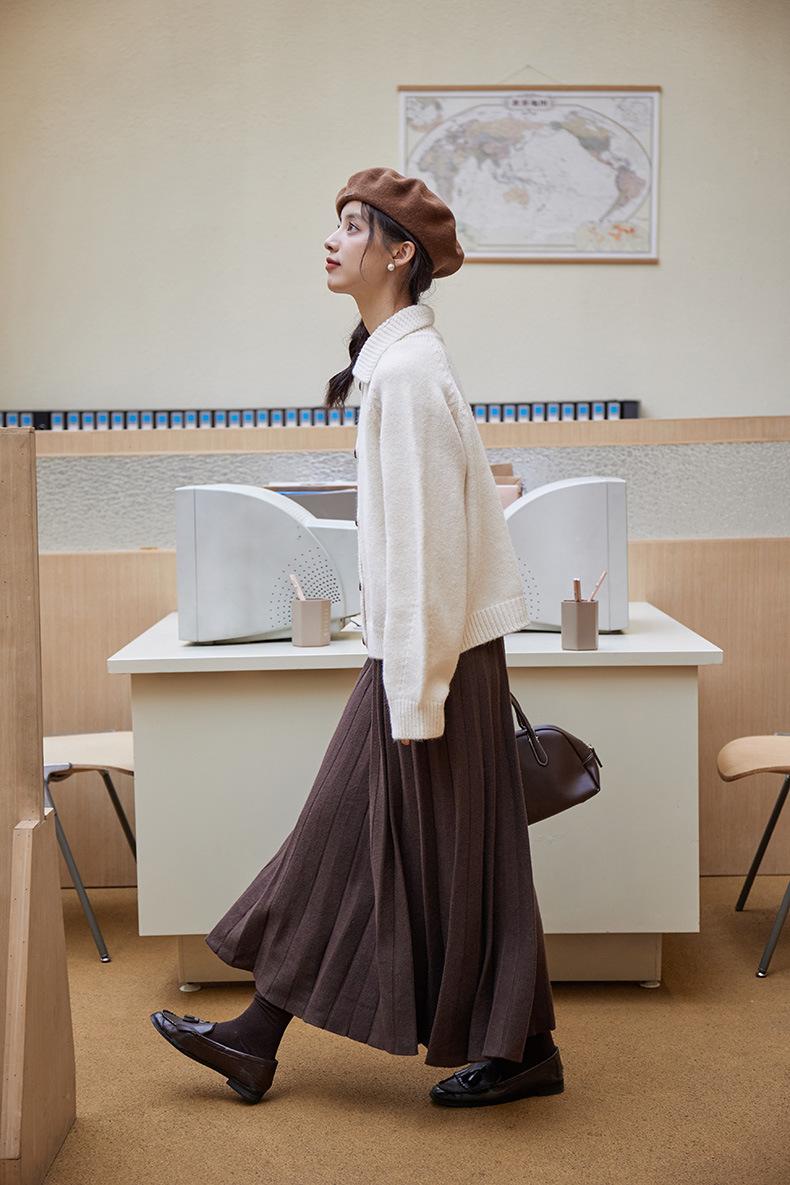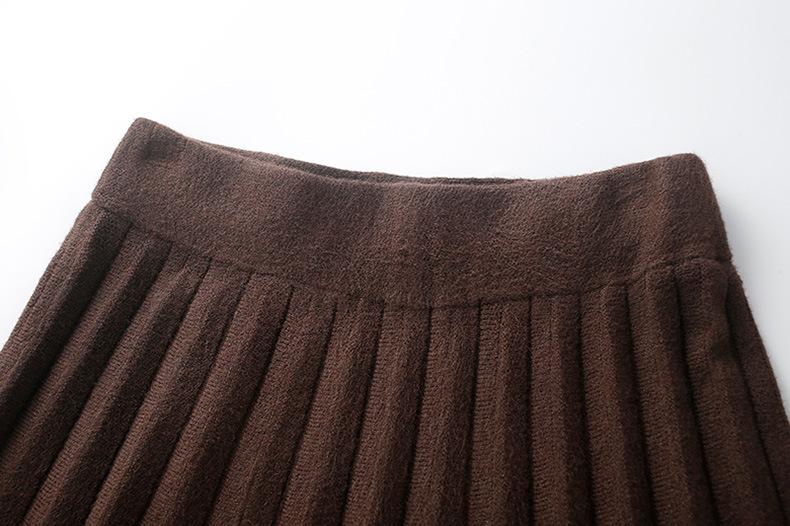 Falda de Punto Plisada para Mujer 2024 Otoño e Invierno Nuevo Estilo Francés Retro Cubre Caderas Adelgazante Largo Midi Cintura Alta falda marrón