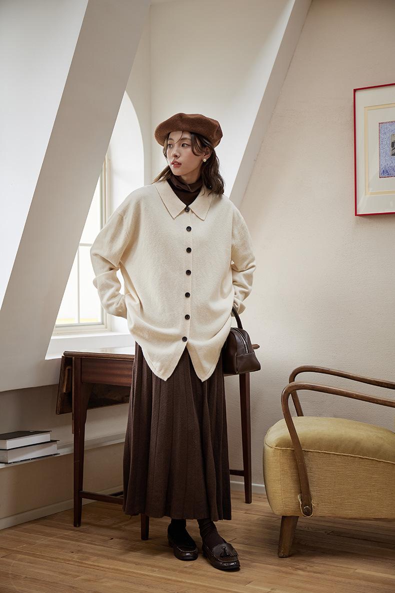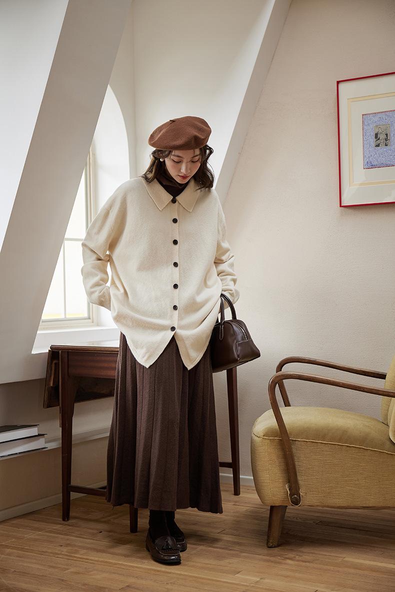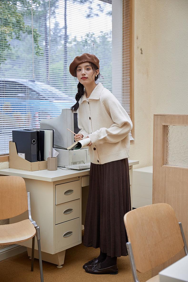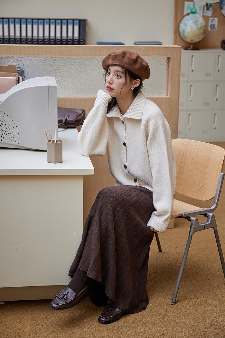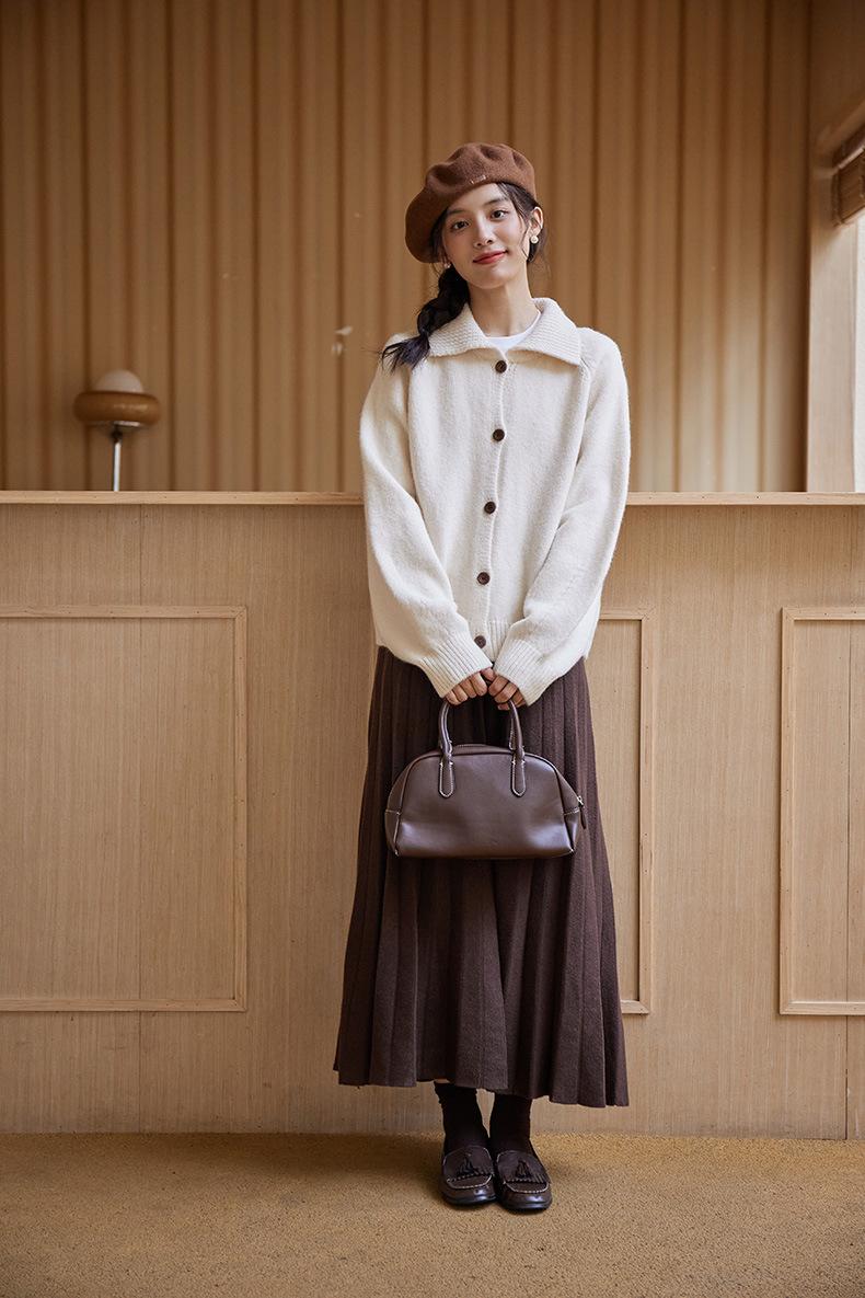 Falda de Punto Plisada para Mujer 2024 Otoño e Invierno Nuevo Estilo Francés Retro Cubre Caderas Adelgazante Largo Midi Cintura Alta falda marrón