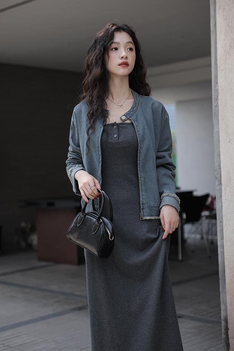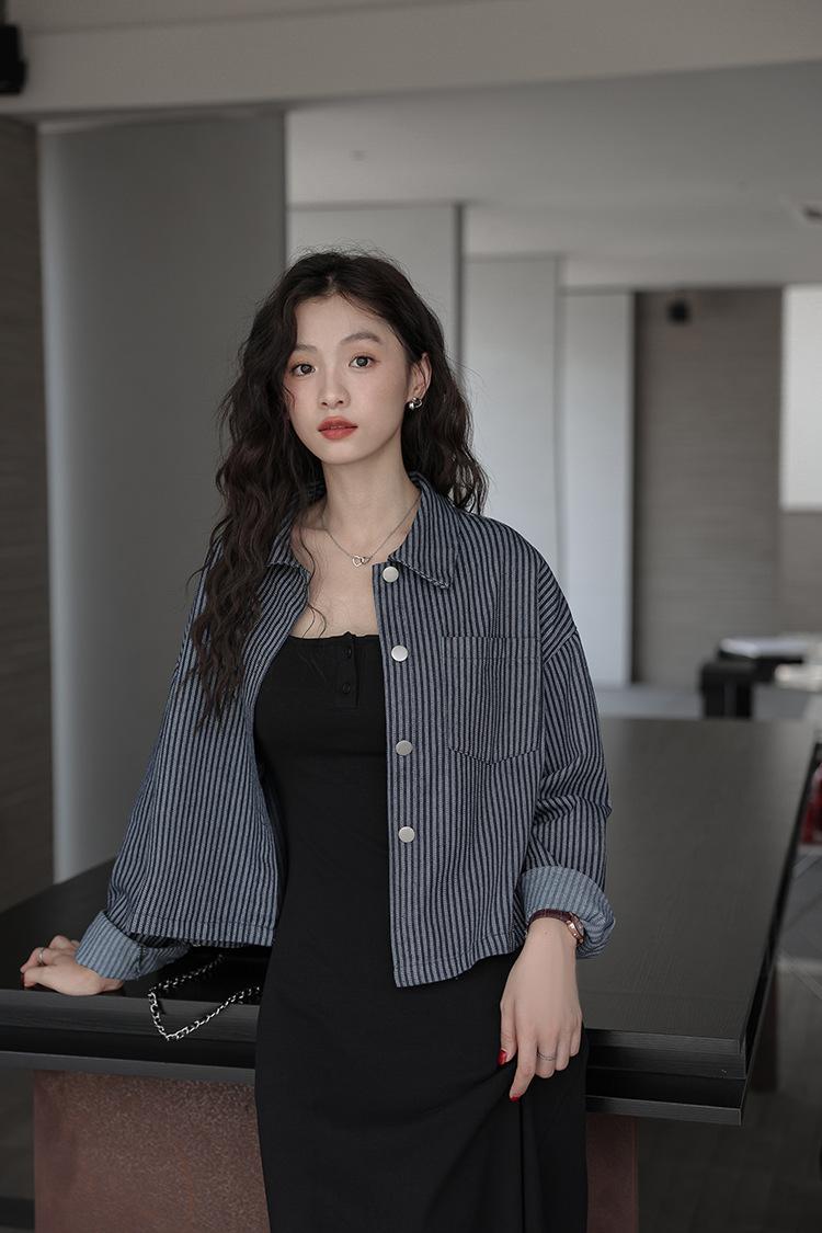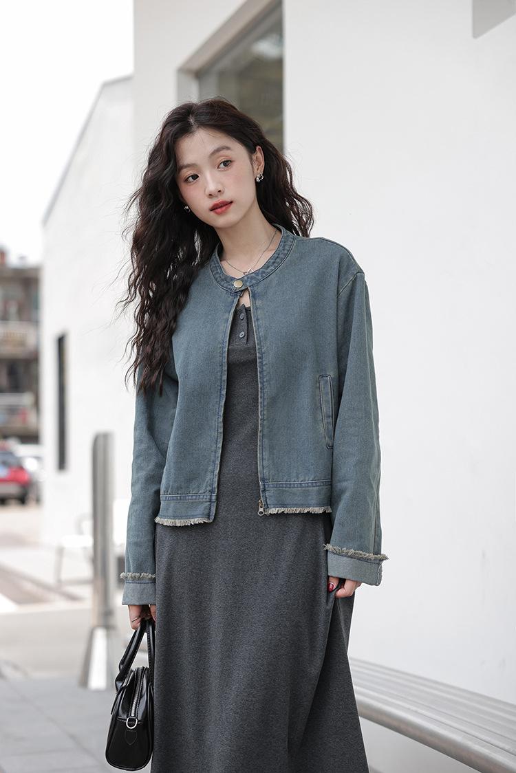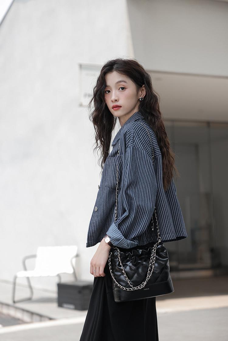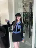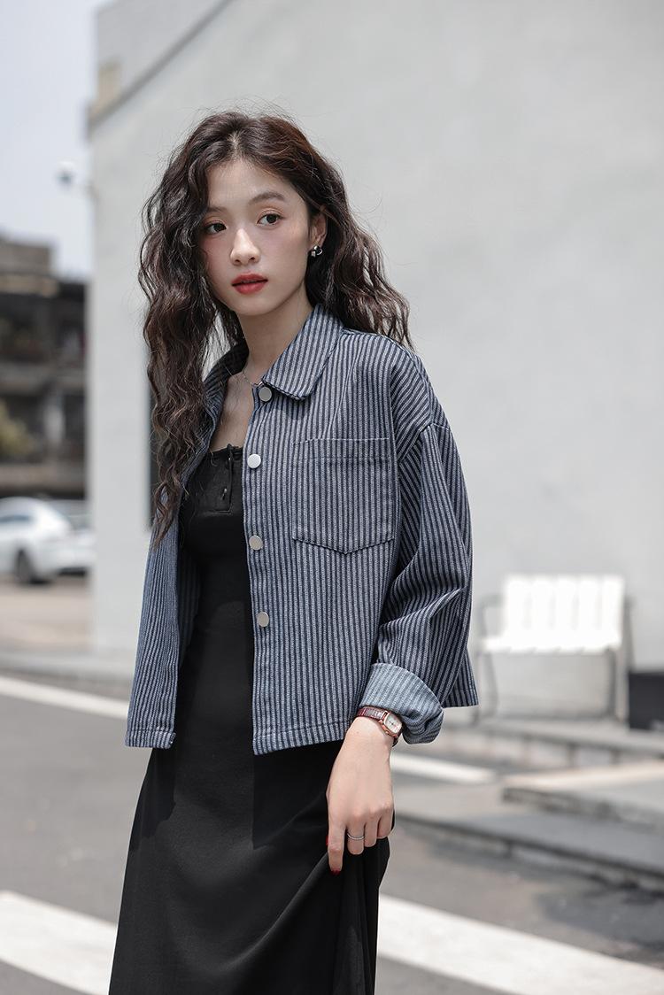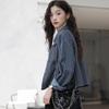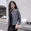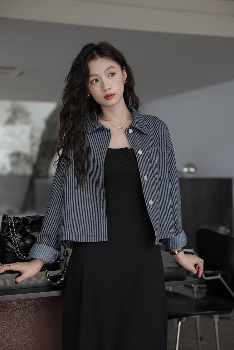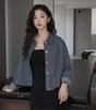 2024 otoño e invierno nuevo estilo coreano retro azul a rayas cuello POLO Joker delgado abrigo corto de mezclilla moda femenina