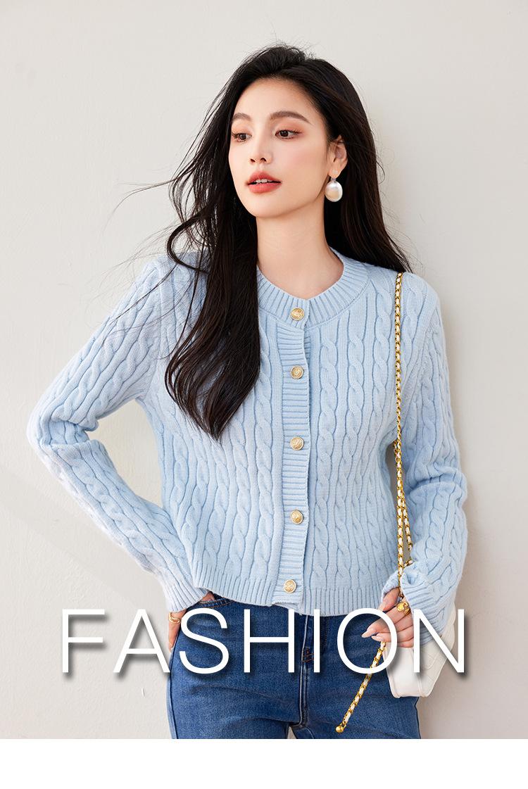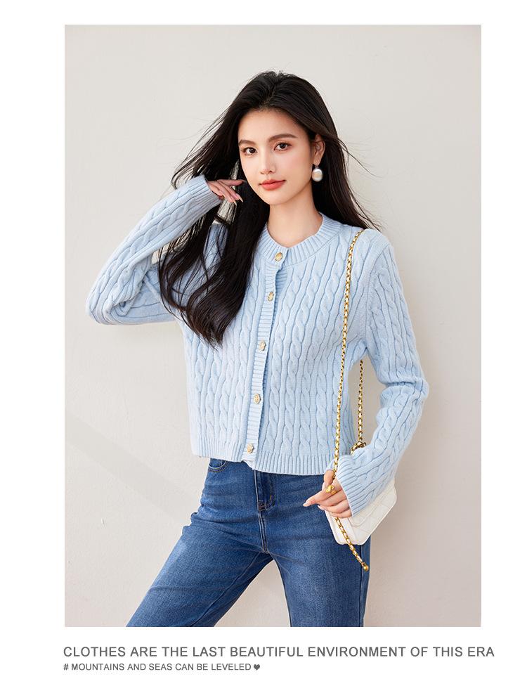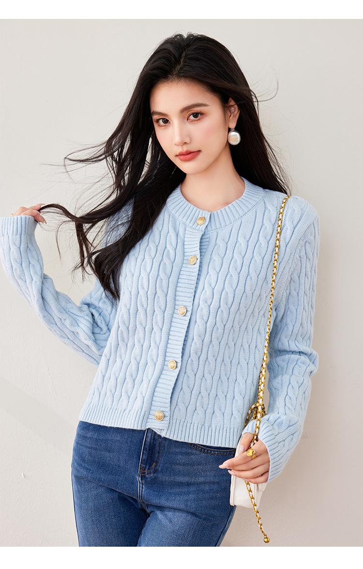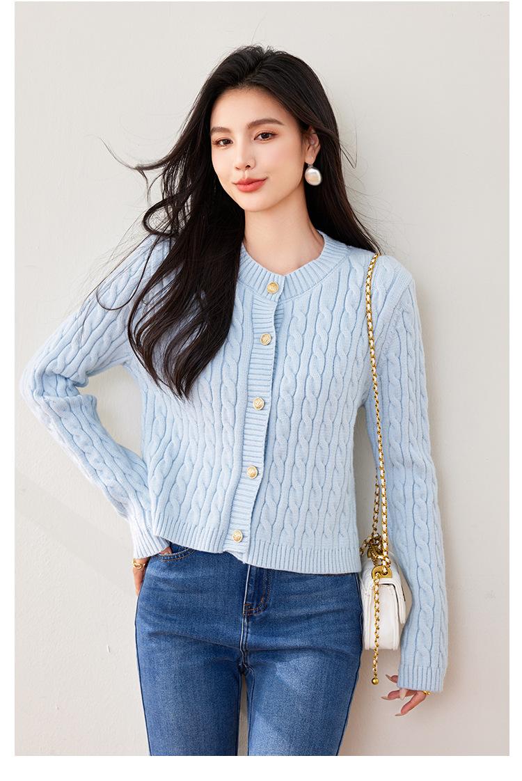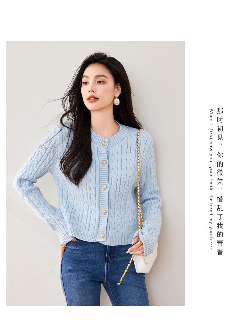 Compra Suéter Azul Leche Estilo Suave para Mujer Otoño e Invierno 2024 Nuevo Estilo Francés Chanel Trenzado Cuello Redondo Cárdigan Chaqueta Tejida al por mayor en Joom.pro