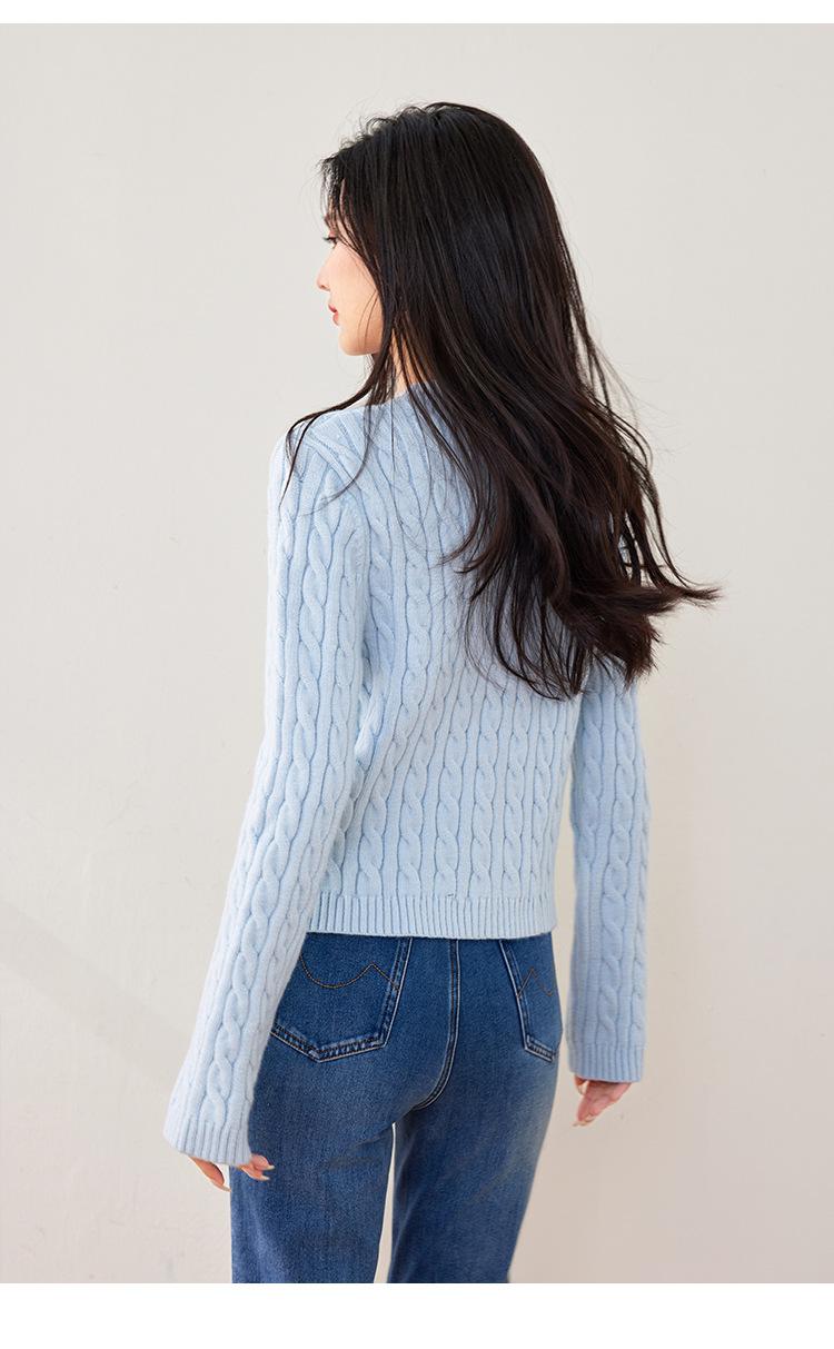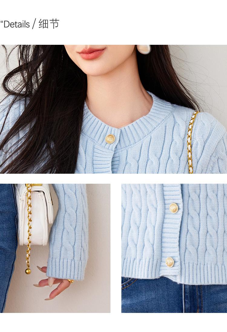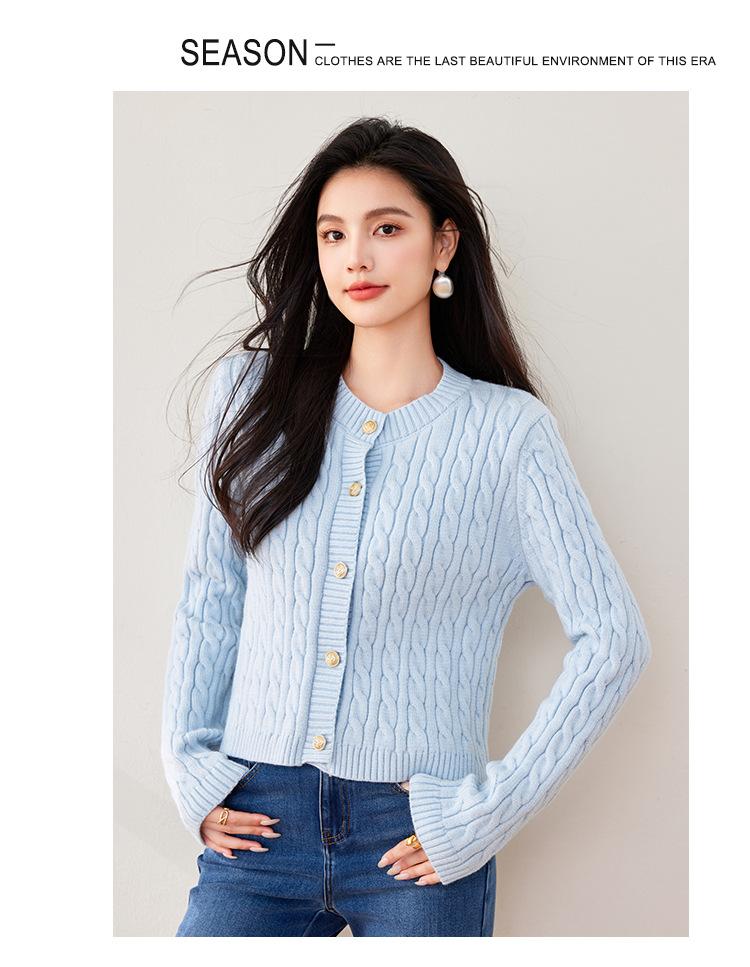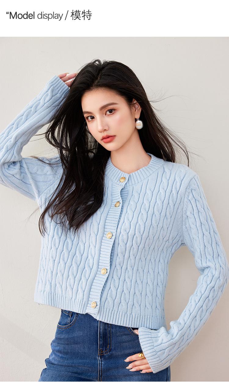 Compra Suéter Azul Leche Estilo Suave para Mujer Otoño e Invierno 2024 Nuevo Estilo Francés Chanel Trenzado Cuello Redondo Cárdigan Chaqueta Tejida al por mayor en Joom.pro