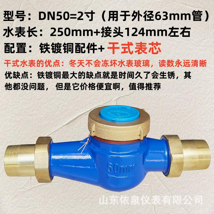 Medidor de Agua Roscado Dn50 Medidor de Agua Seco Roscado de 2 pulgadas Dedicado para Tubo 63 Medidor de Agua Horizontal Calibre 50