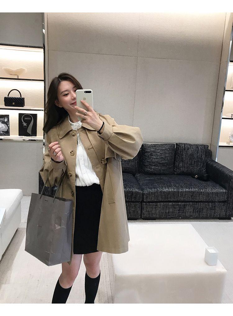 Rompevientos largo para mujer primavera y otoño 2024 nuevo versión coreana abrigo de temperamento caqui abrigo pequeño popular para mujer marea