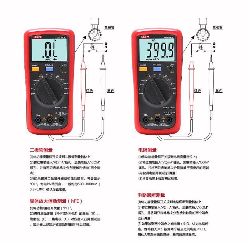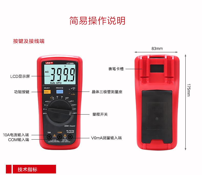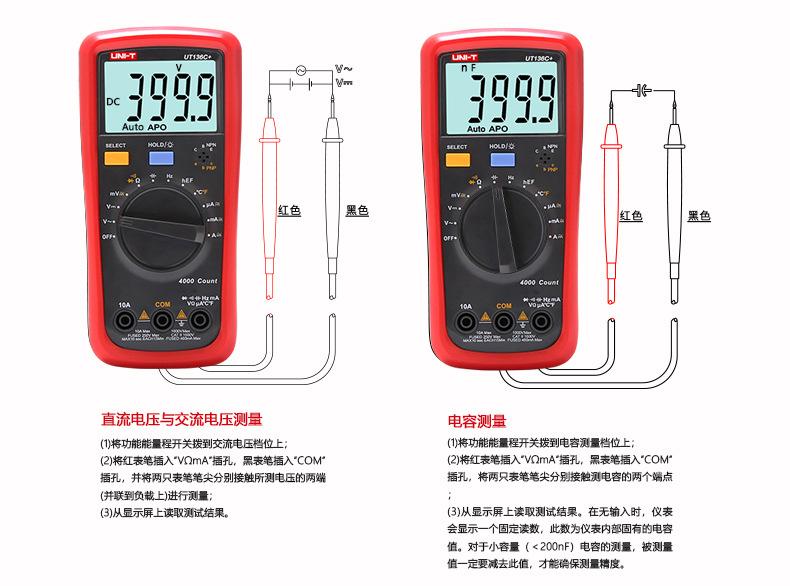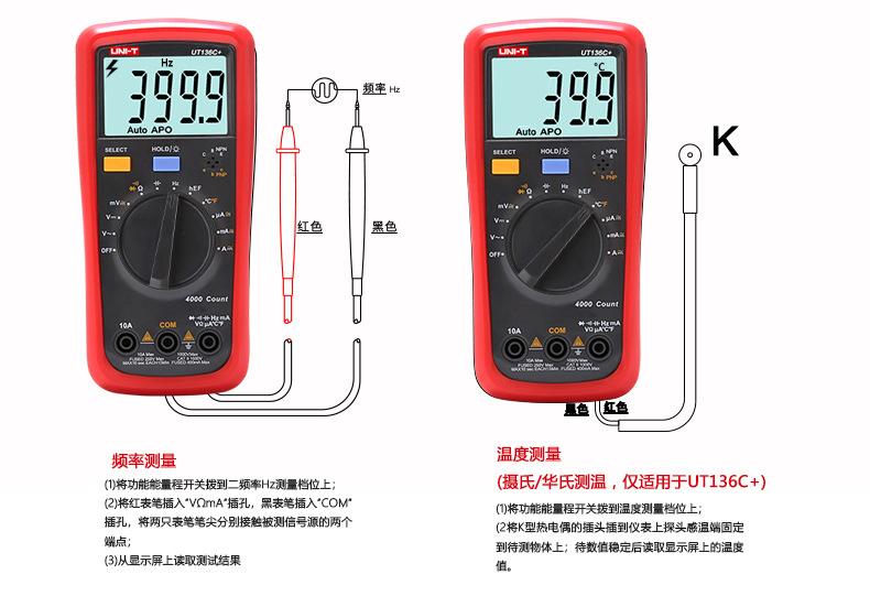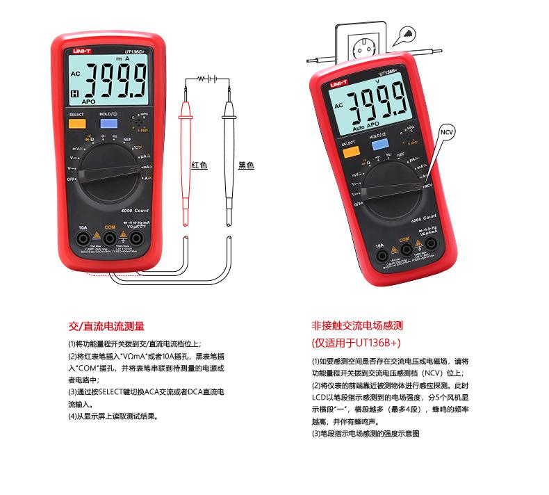 Ut136b+ [induction voltage-automatic range], Ut136c+ [temperature measurement-automatic range], Ut39a+【manual ...