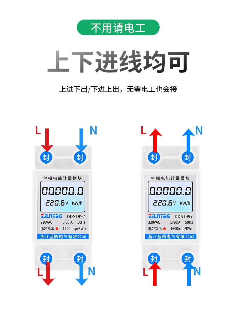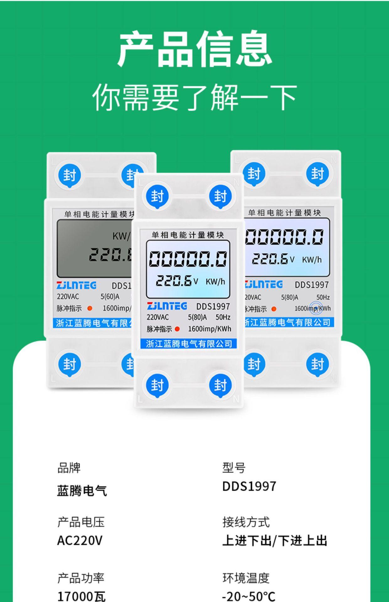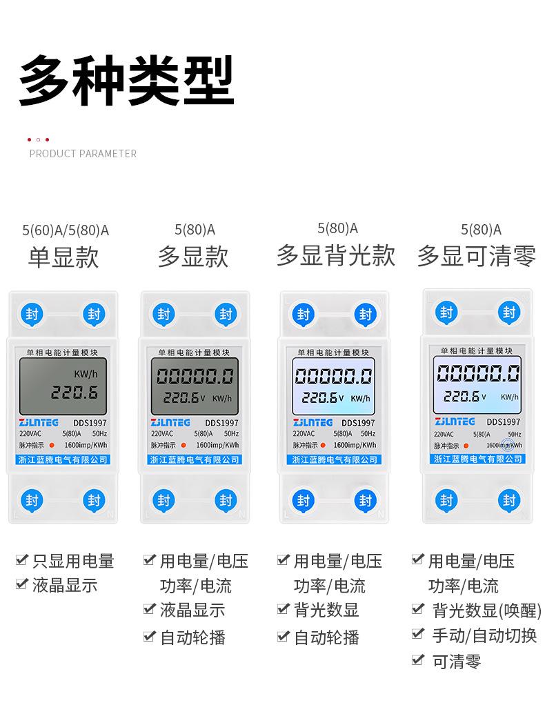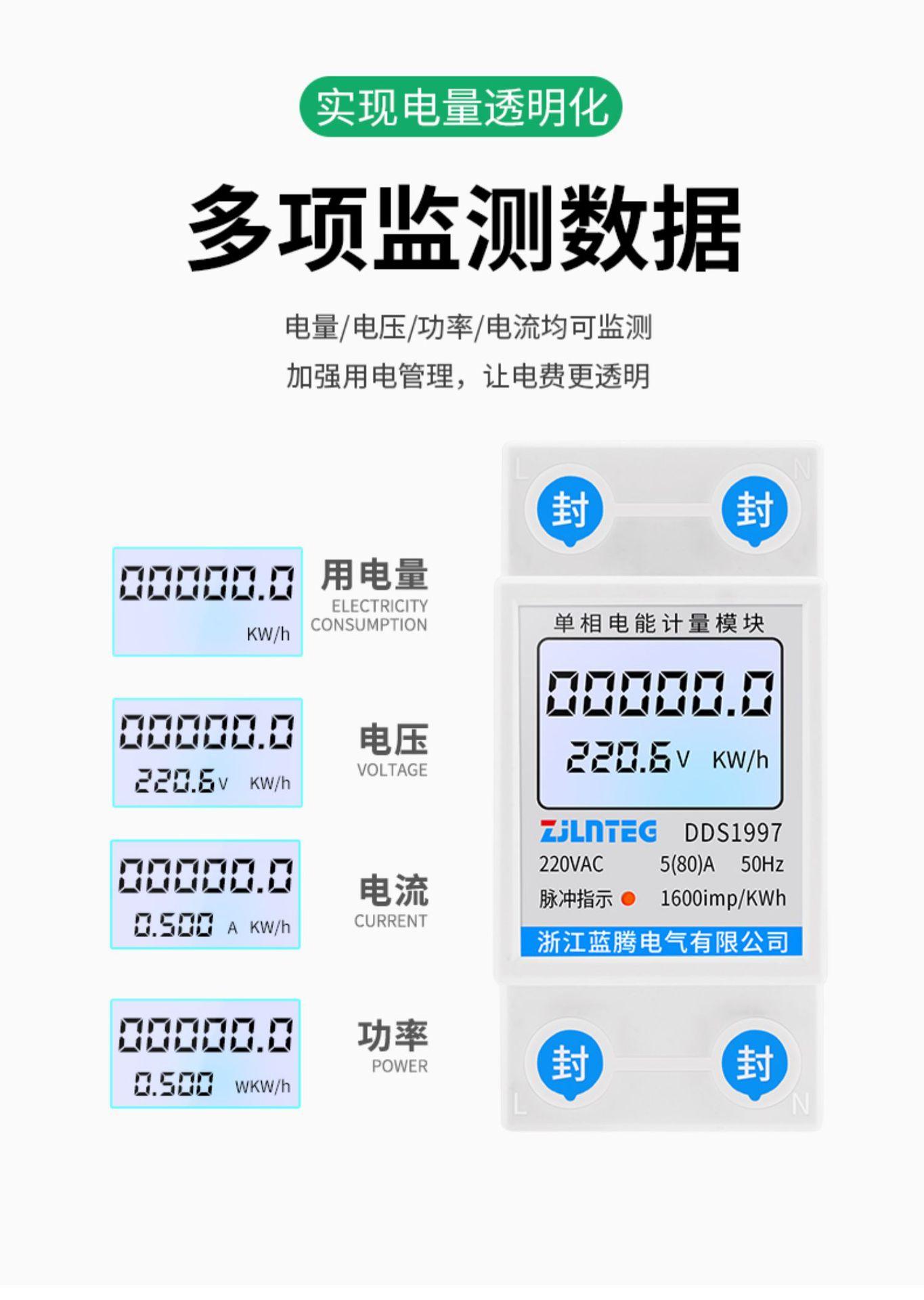 Medidor Eléctrico Inteligente Doméstico Medidor Eléctrico Digital de Alta Precisión Medidor Eléctrico Monofásico para Casa de Renta Medidor de Energía Eléctrica Tipo Riel 220V