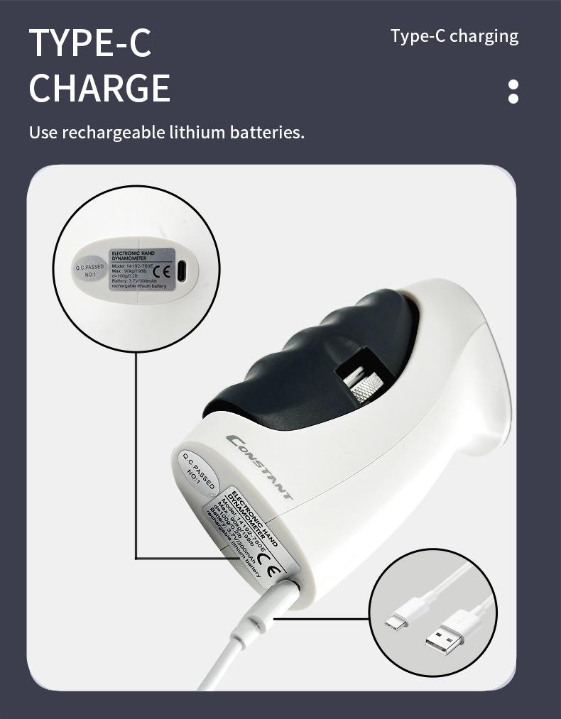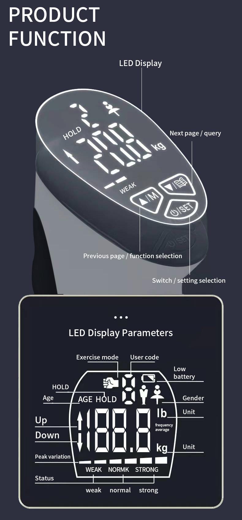 Medidor Digital de Fuerza de Agarre de Mano Recargable, Puede Ejercitar y Restaurar la Fuerza de la Mano, Pantalla LED Medidor Digital Inteligente de Fuerza de Agarre
