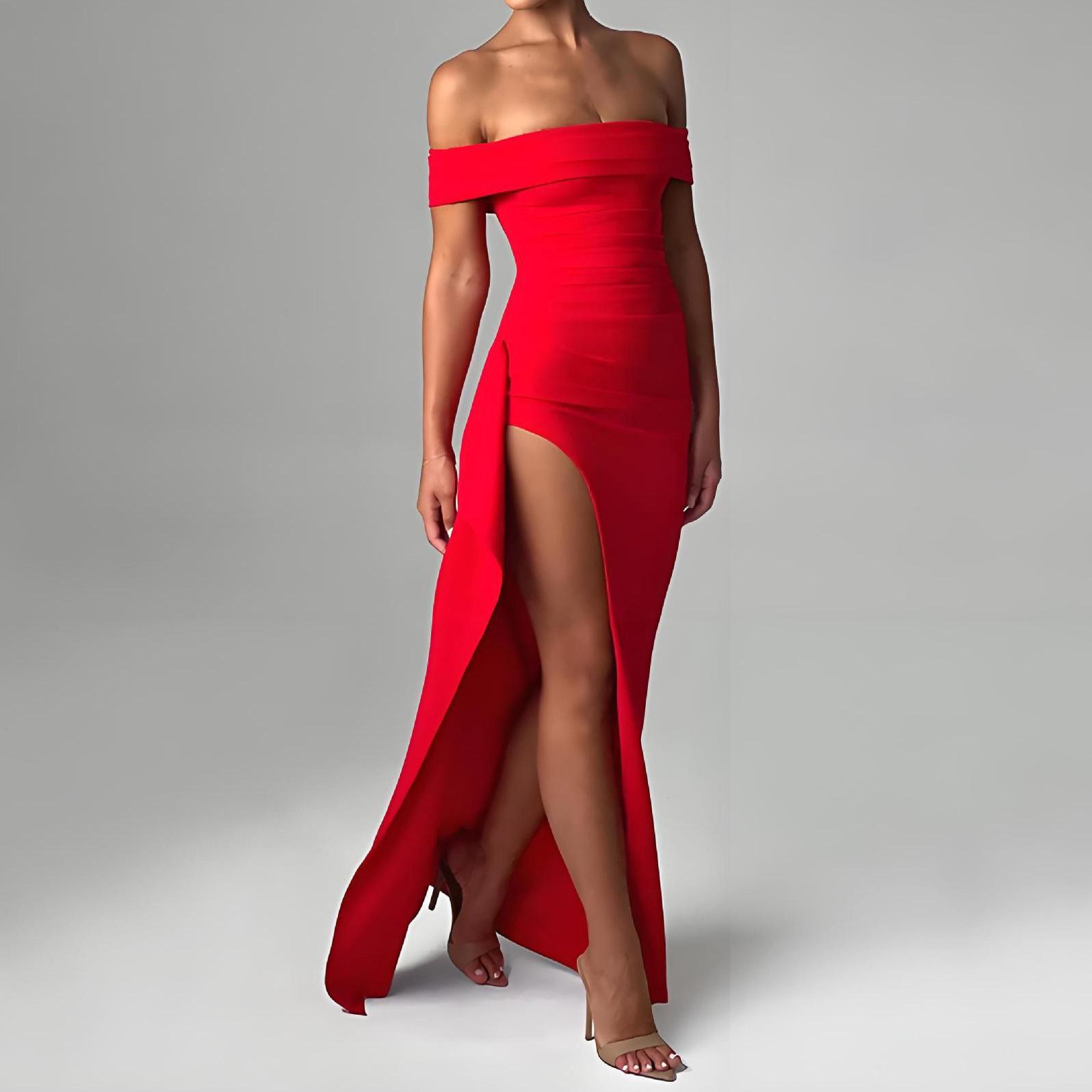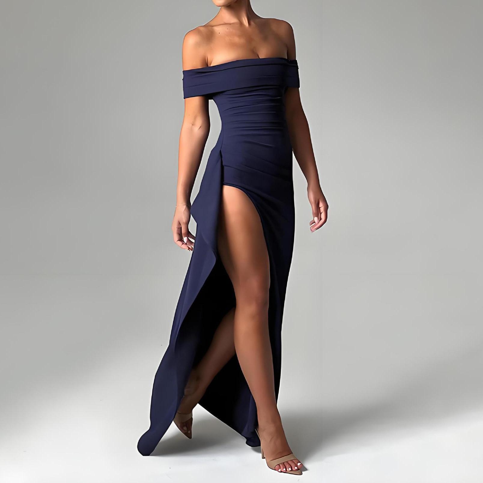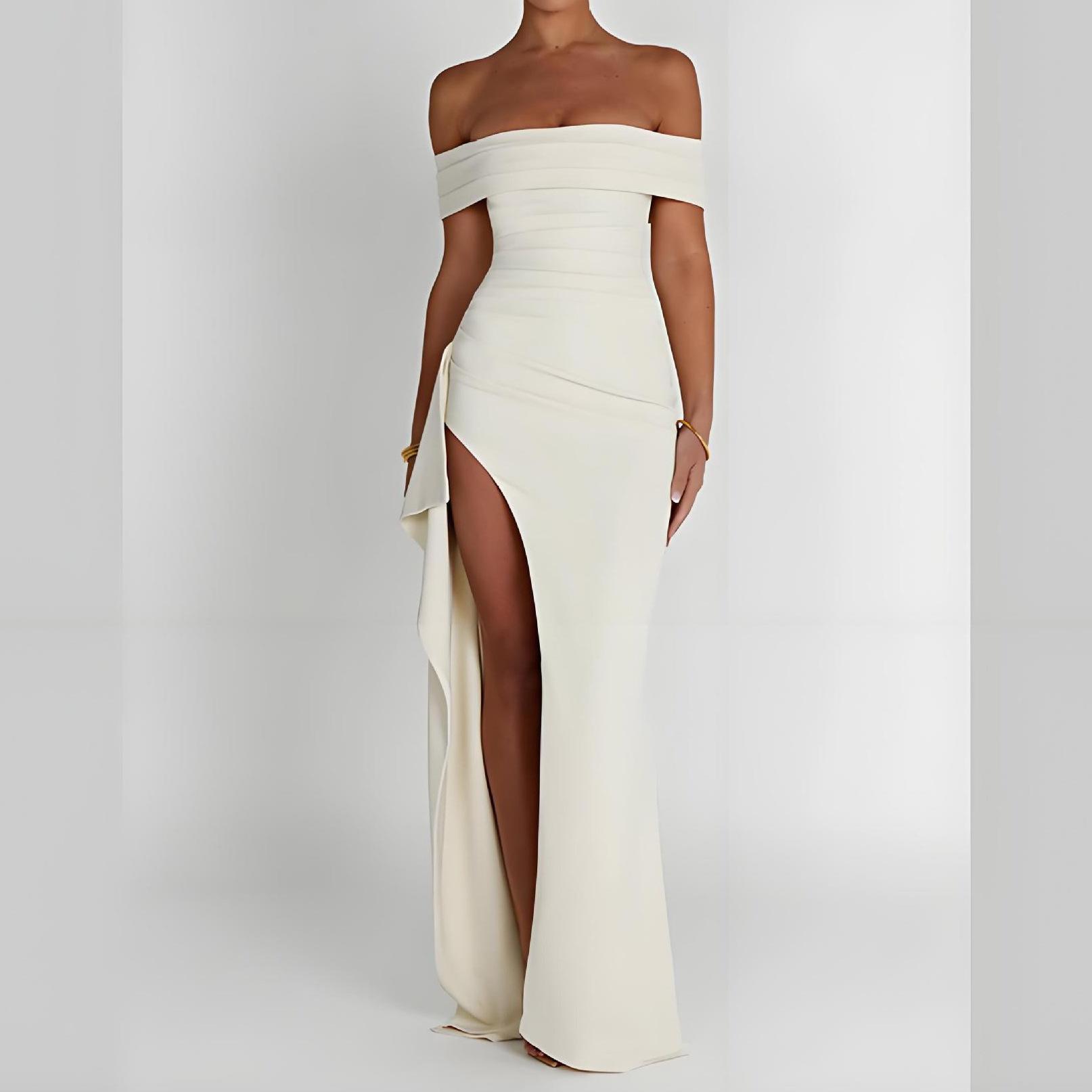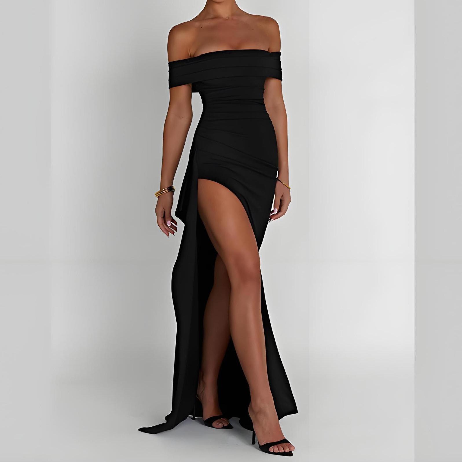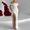 En Stock Verano 2025 Europeo y Americano Transfronterizo Vestido Sexy Strapless Hombros Descubiertos Espalda Descubierta Abertura Vestido Largo al por Mayor