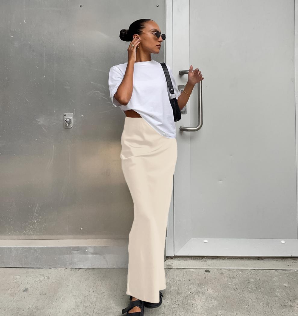 Falda de satén de seda para mujer, estilo europeo y americano, informal, con corte en la cadera, primavera y verano de 2024